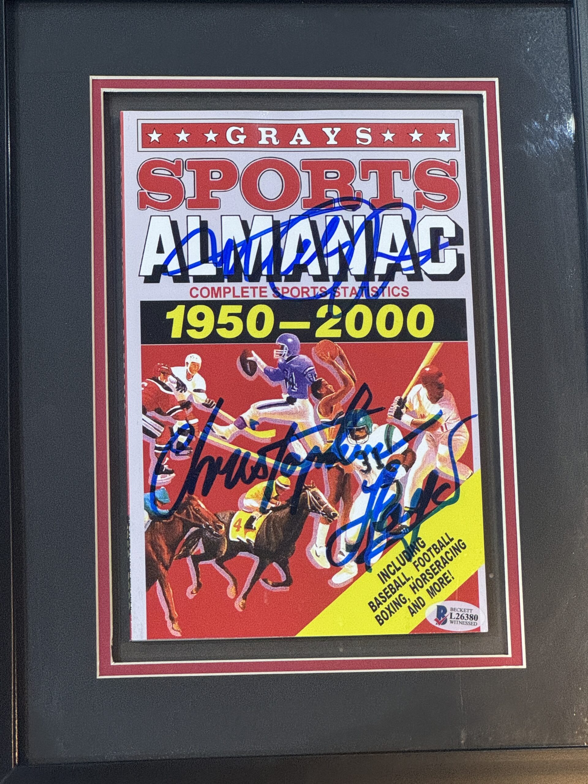 Almanaque enmarcado por los actores de la pelicula Back to the future Christopher Lloyd, Michael J Fox