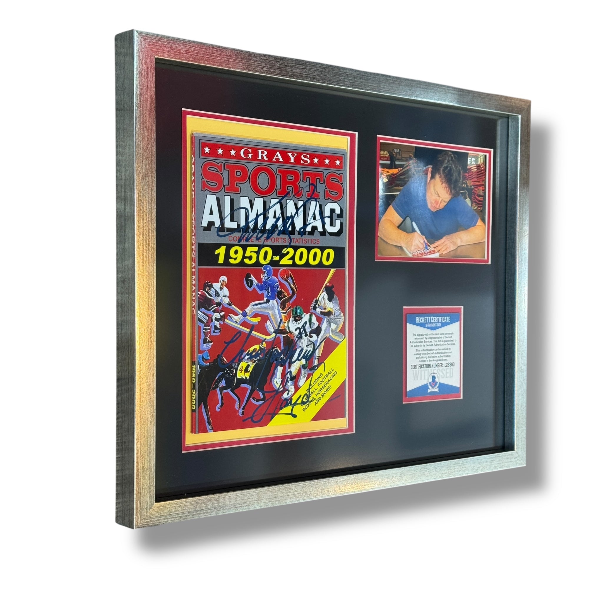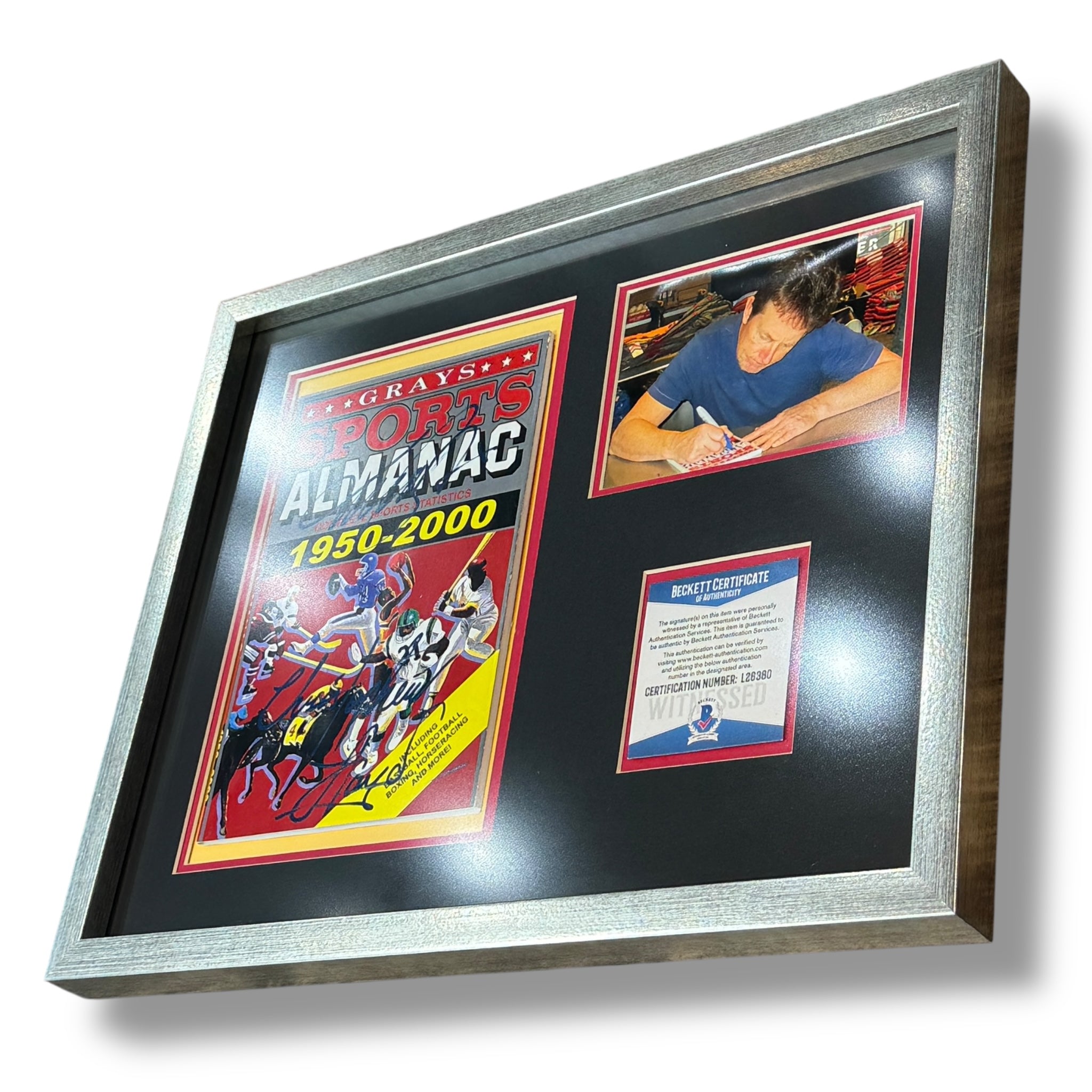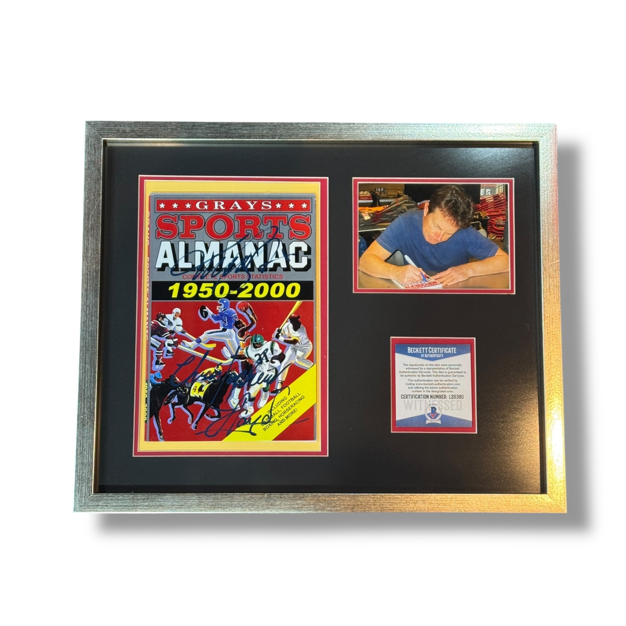 Almanaque enmarcado y autografiado por el actor Michael J Fox y Christopher Lloyd de la saga, Volver al Futuro.