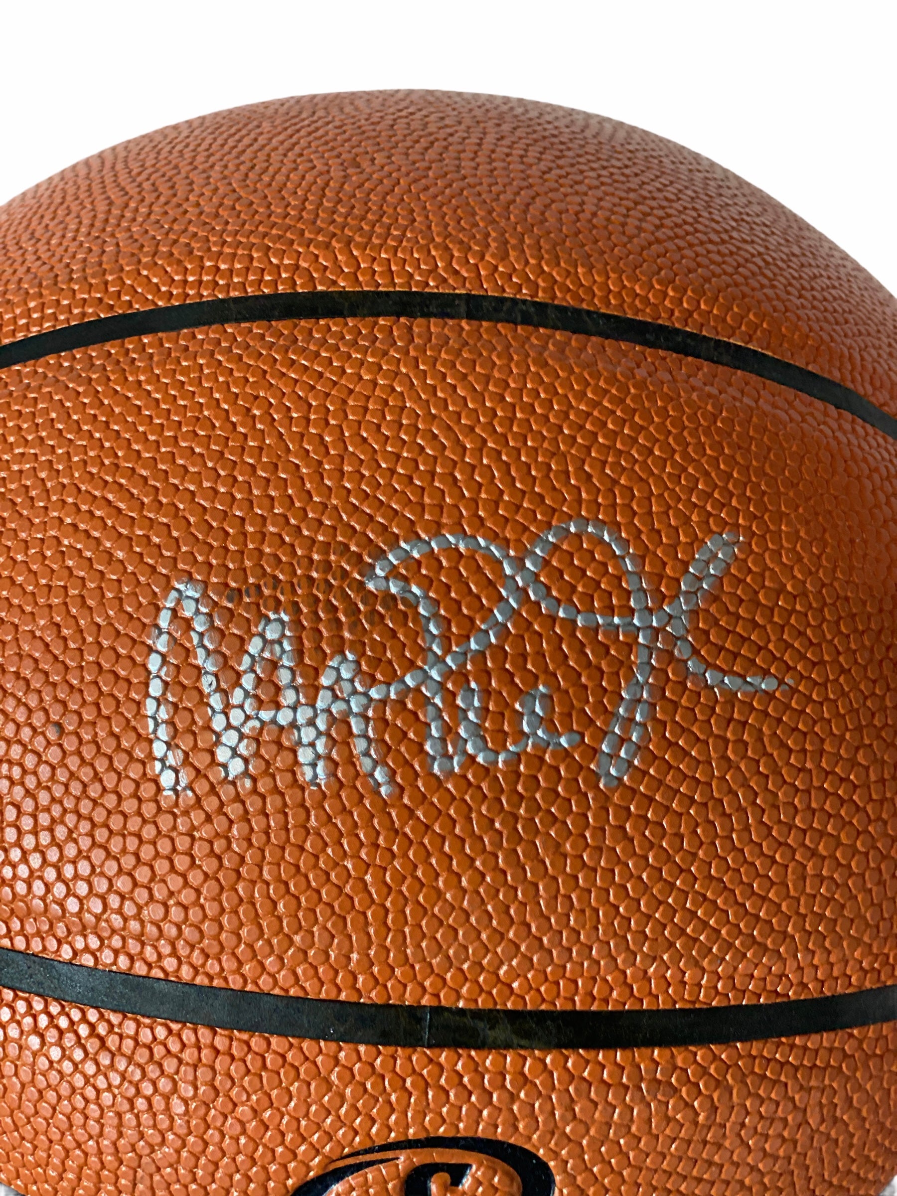 Balón de basketball autografiado por Magic Johnson, de los Lakers.