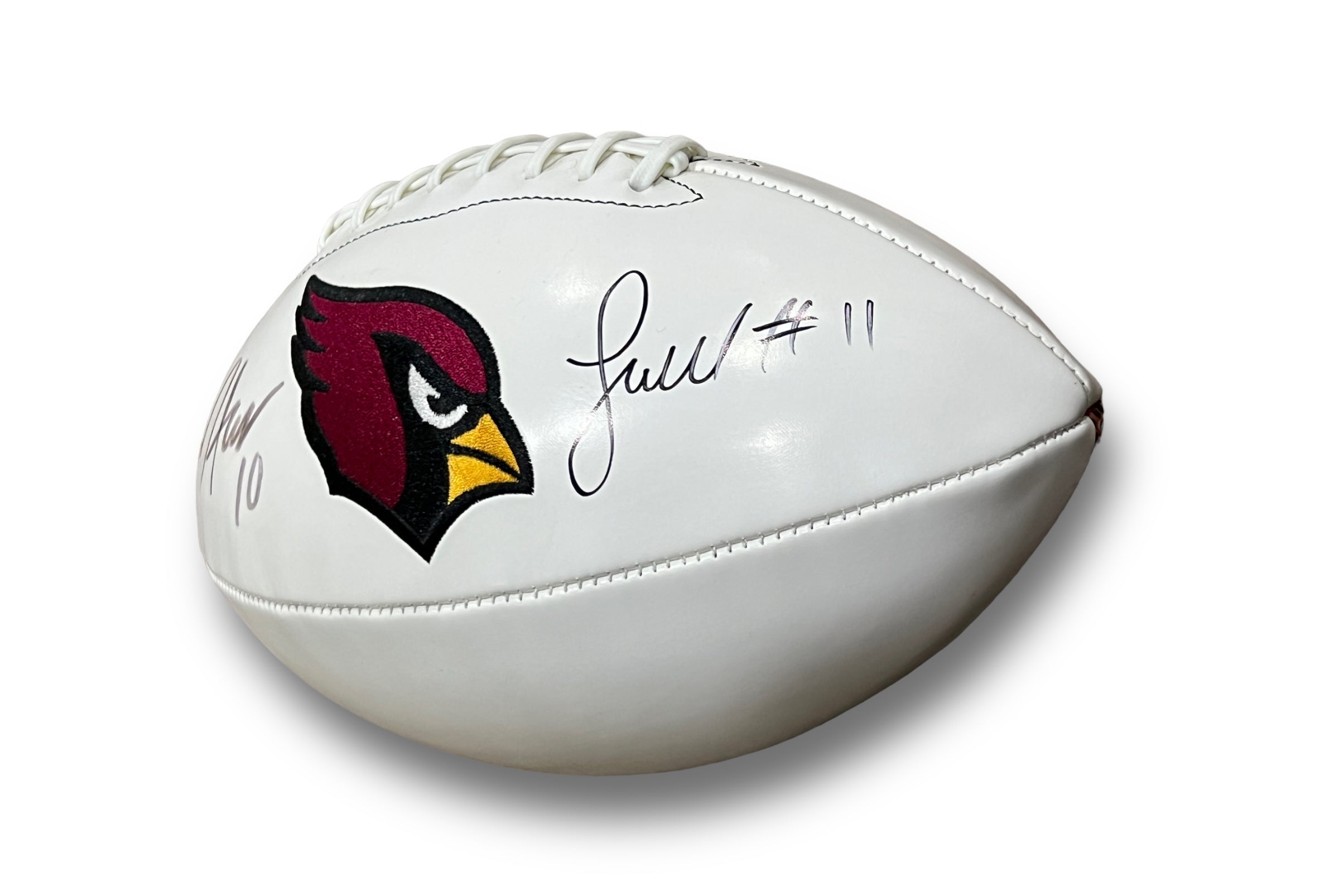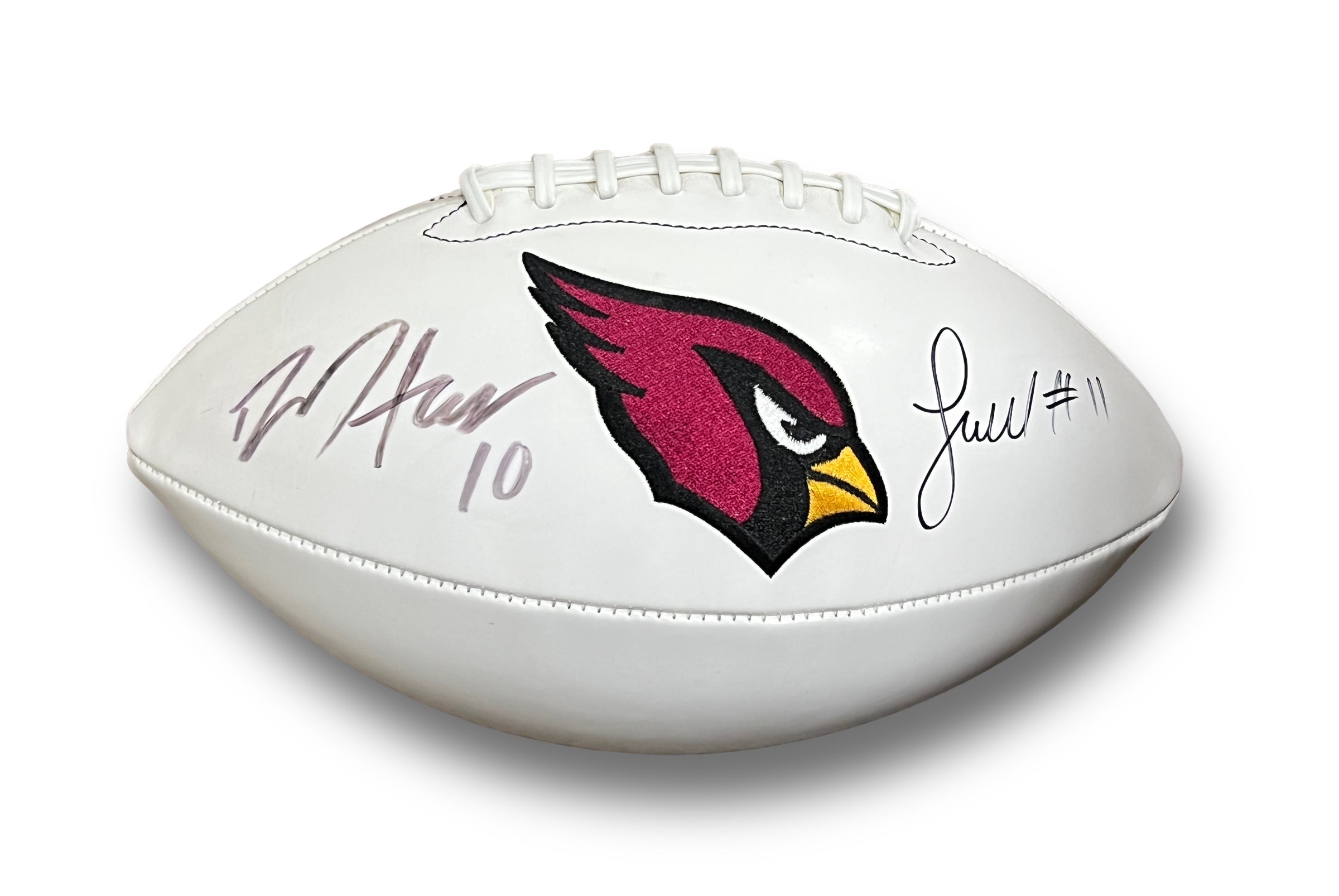 Balón panel autografiado por Larry Fitzgerald y Deandre Hopkins, de los Cardinals.
