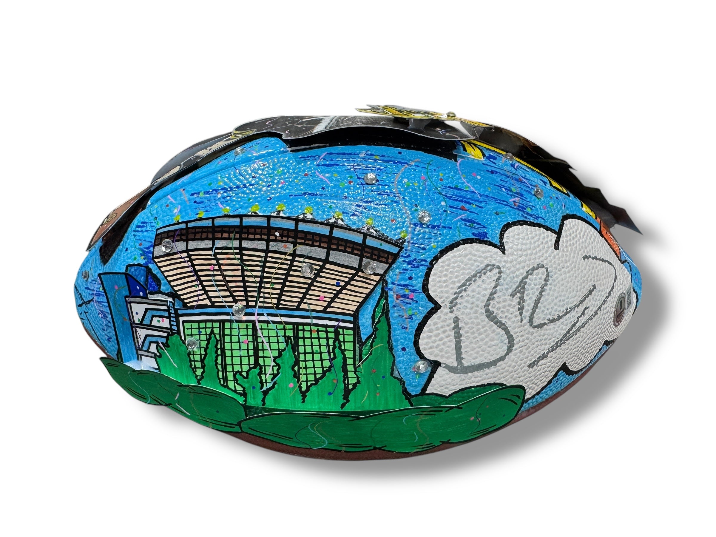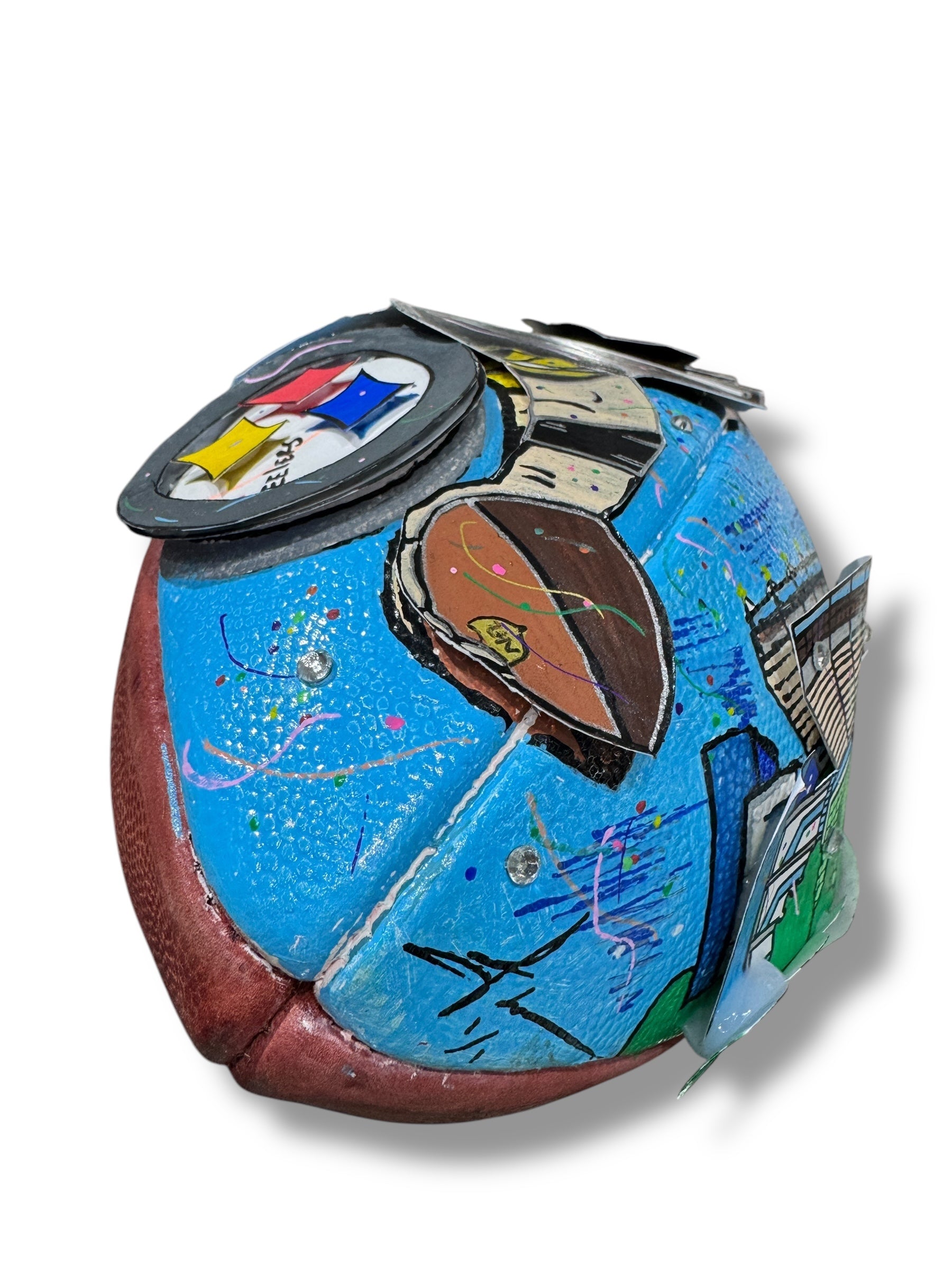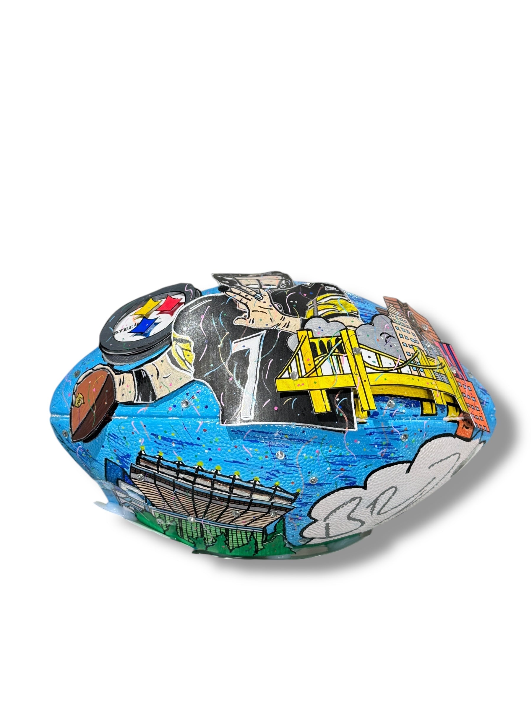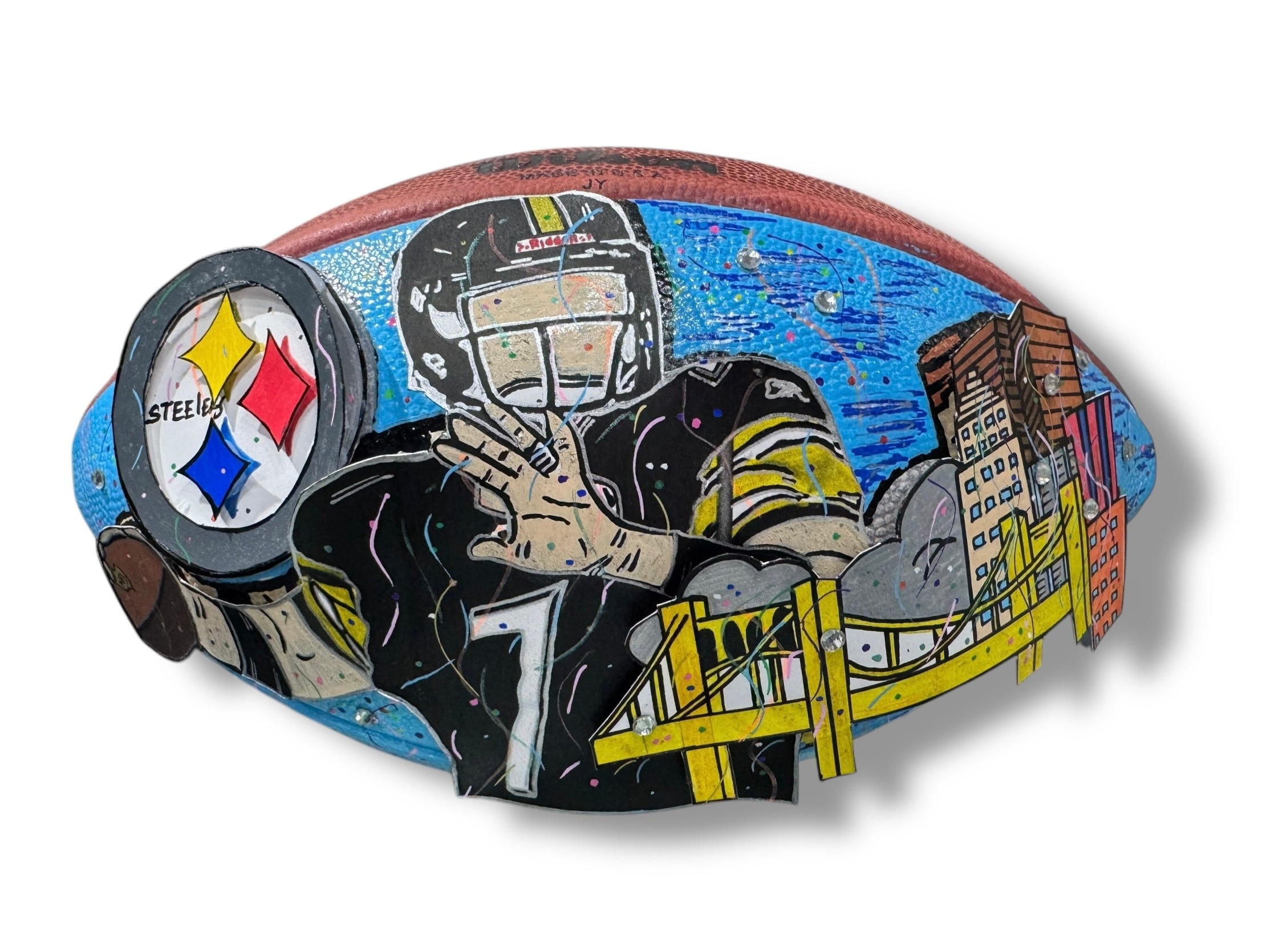 Balón Profesional autografiado por el jugador Ben Roethlisberger. Intervenido por uno de los artistas mas reconocidos a nivel mundial. Una pieza única en el mundo.