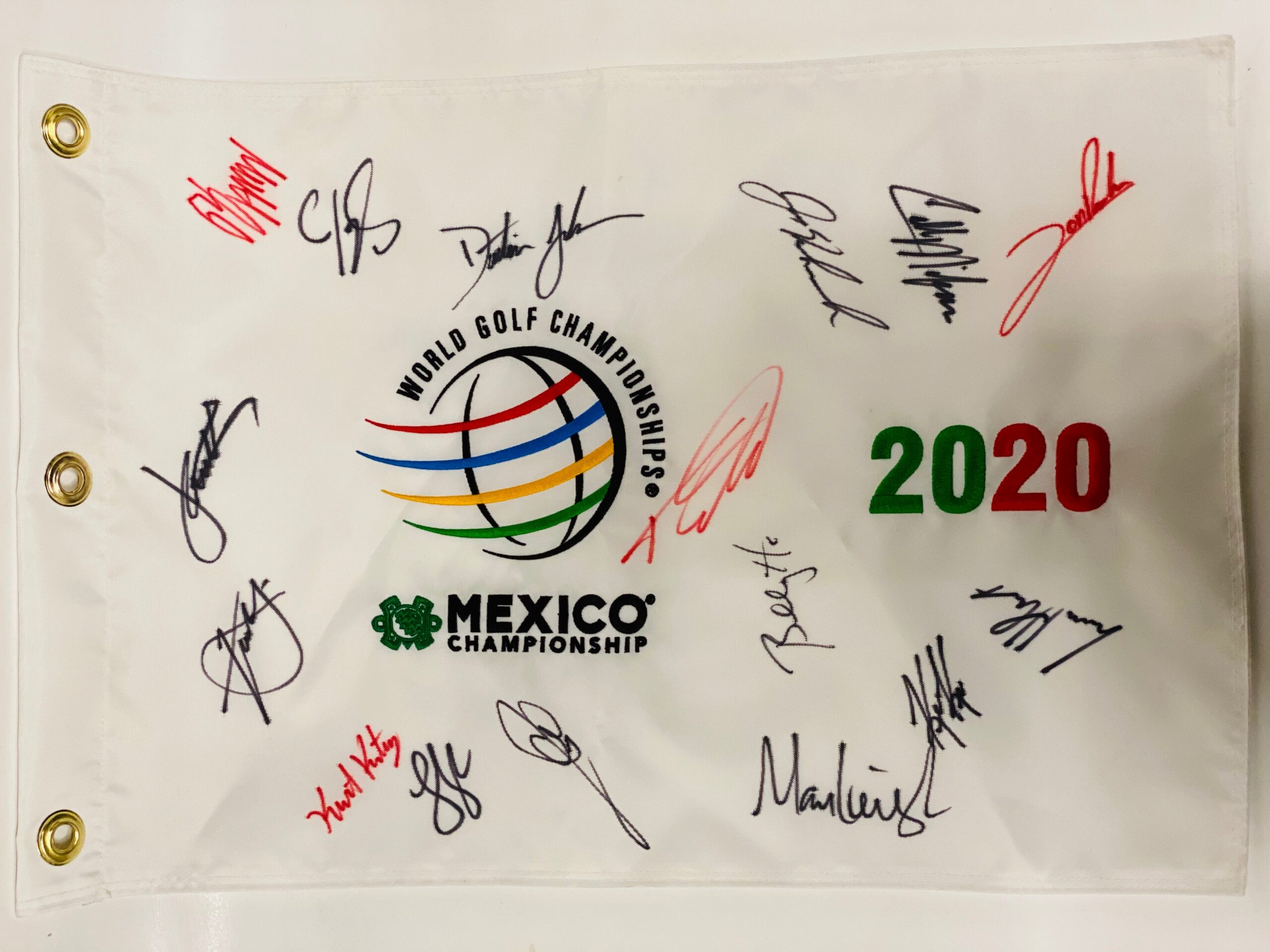 Banderín firmado por Charles Howell, Jordan Spieth, Tommy Fleetwood, Lucas Glover, Marc Leishman, Billy Horschel, Jason Kokrak, Lucas Herbert, Kurt Kitayama, Xander Schauffele, Matthew Fitzpatrick, Collin Morikawa, John Rahm, Dustin Johnson, Shane Lowry.