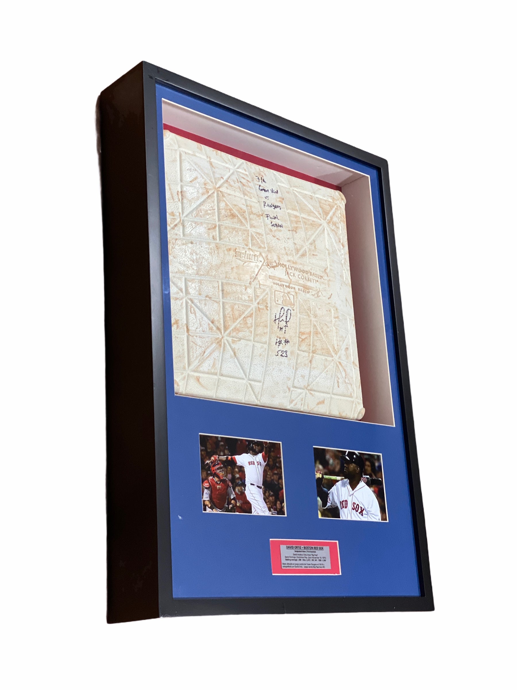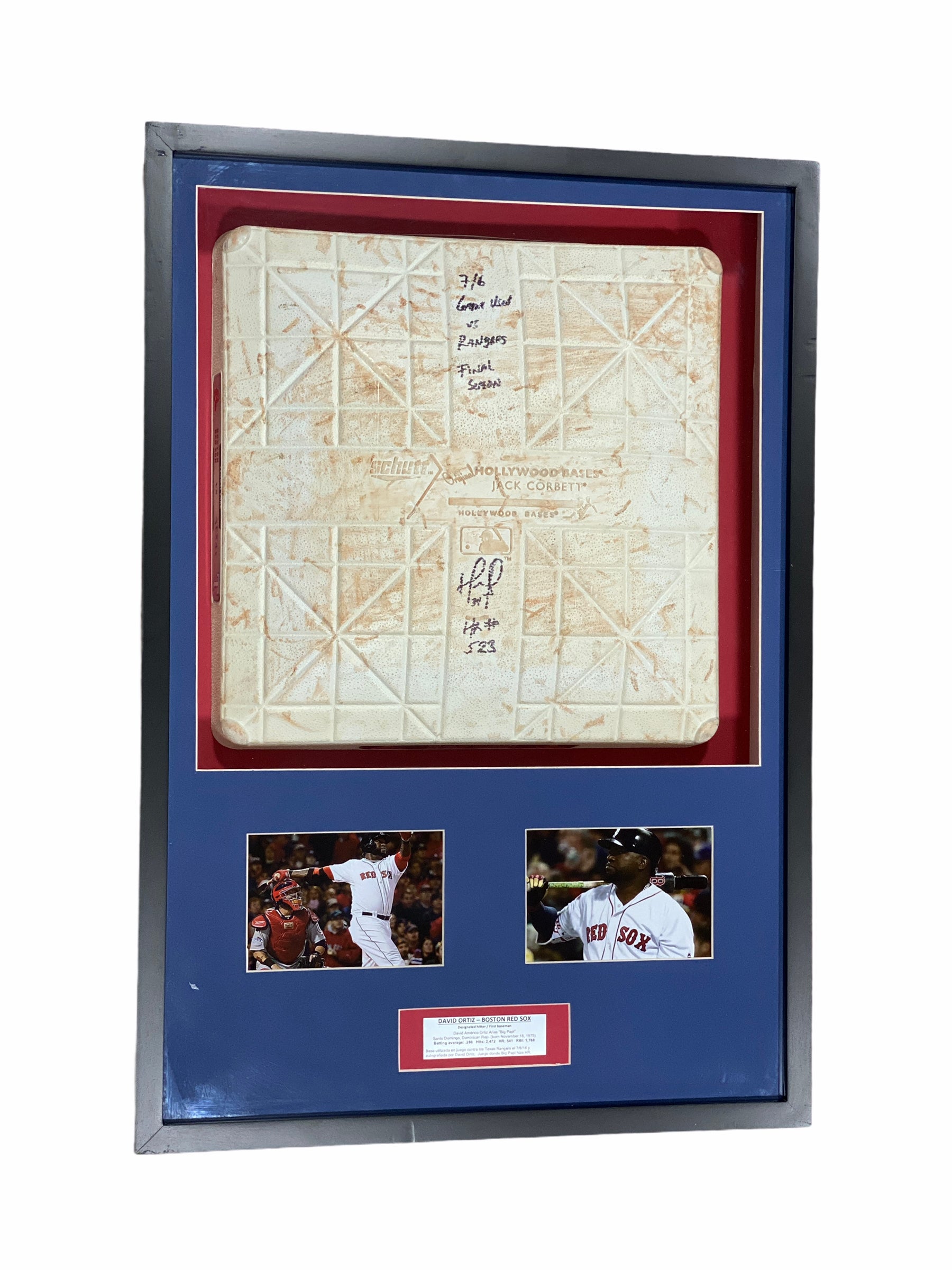 Primera base utilizada en juego y autografiada por David Ortíz “Big Papi”.