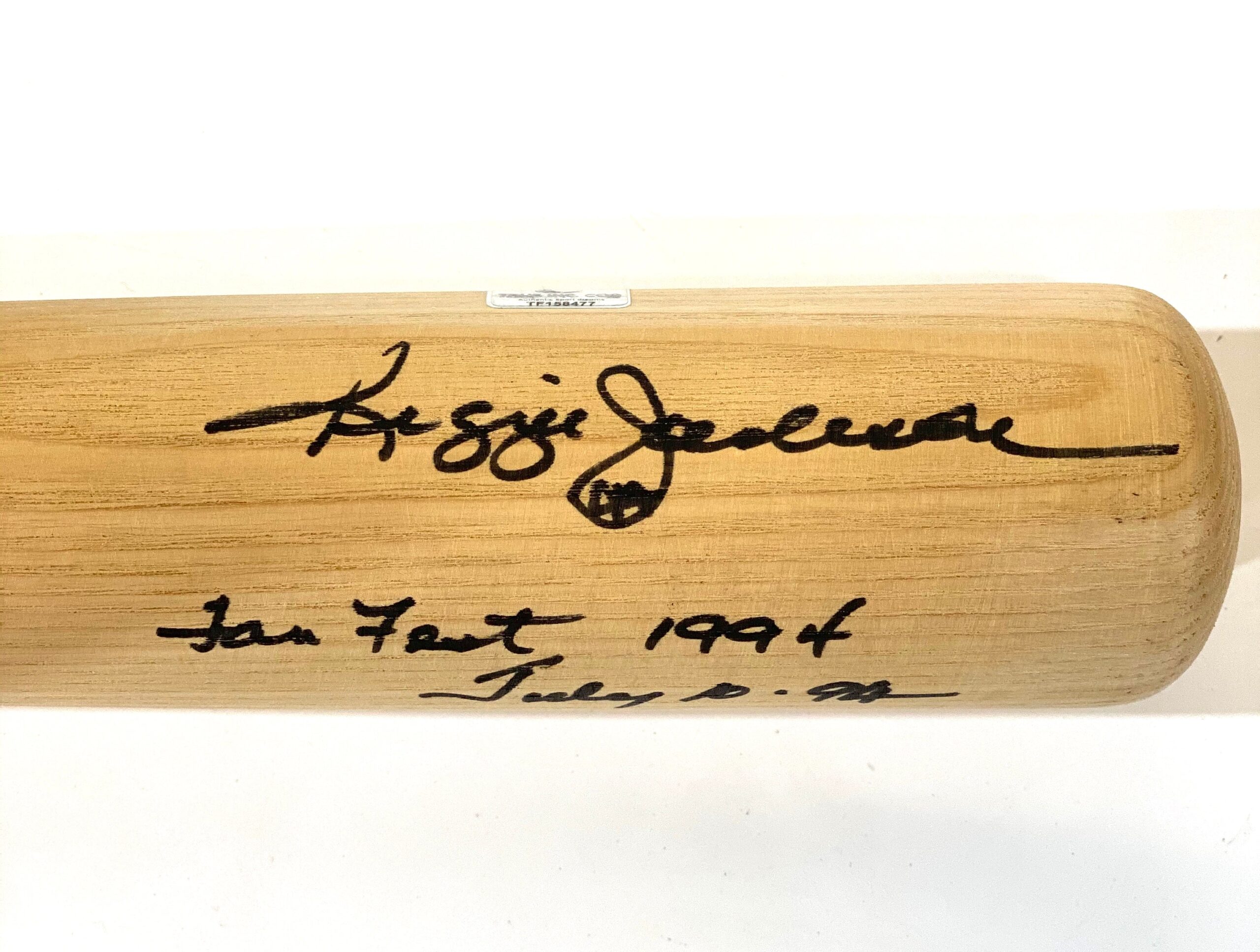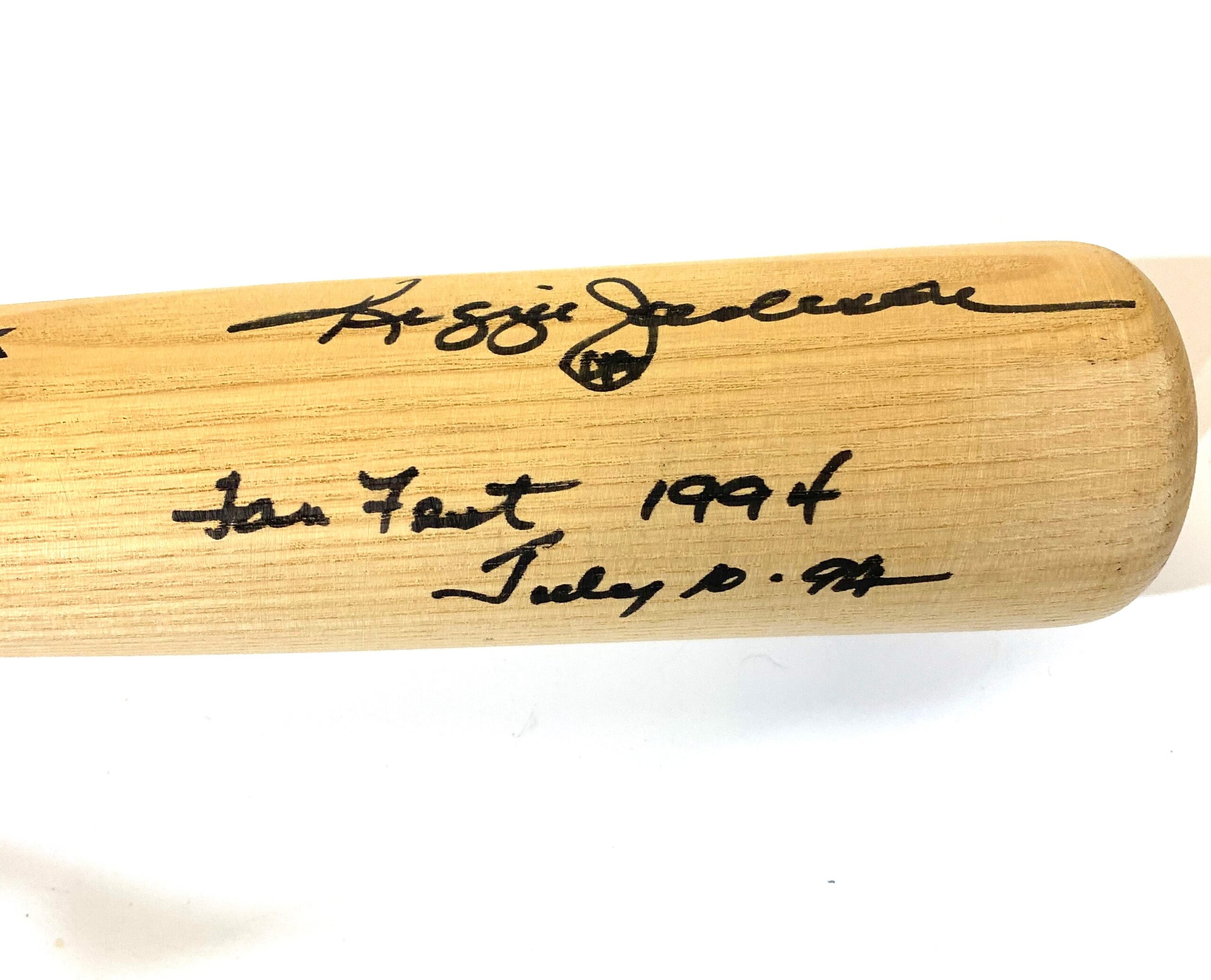 Bat autografiado por Reggie Jackson, de los Yankees.