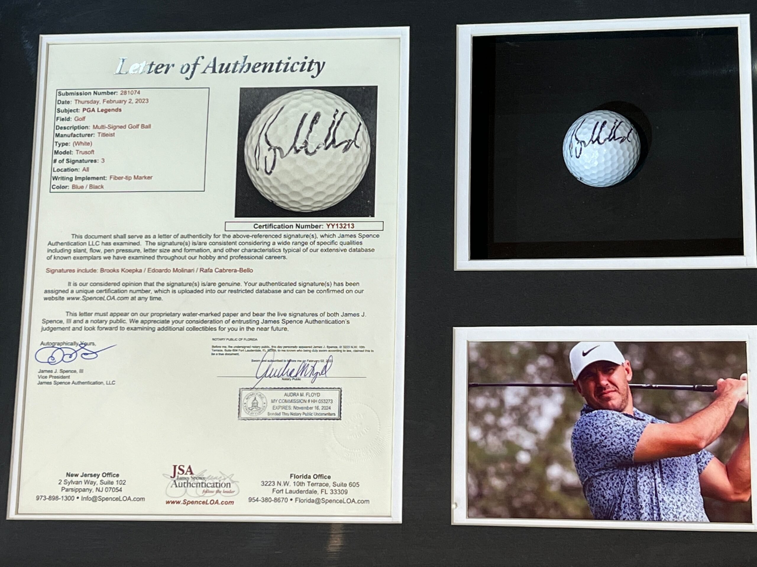 Bola de golf autografiada por los golfistas Francesco Molinari, Cabrera Bello, Brooks Koepka