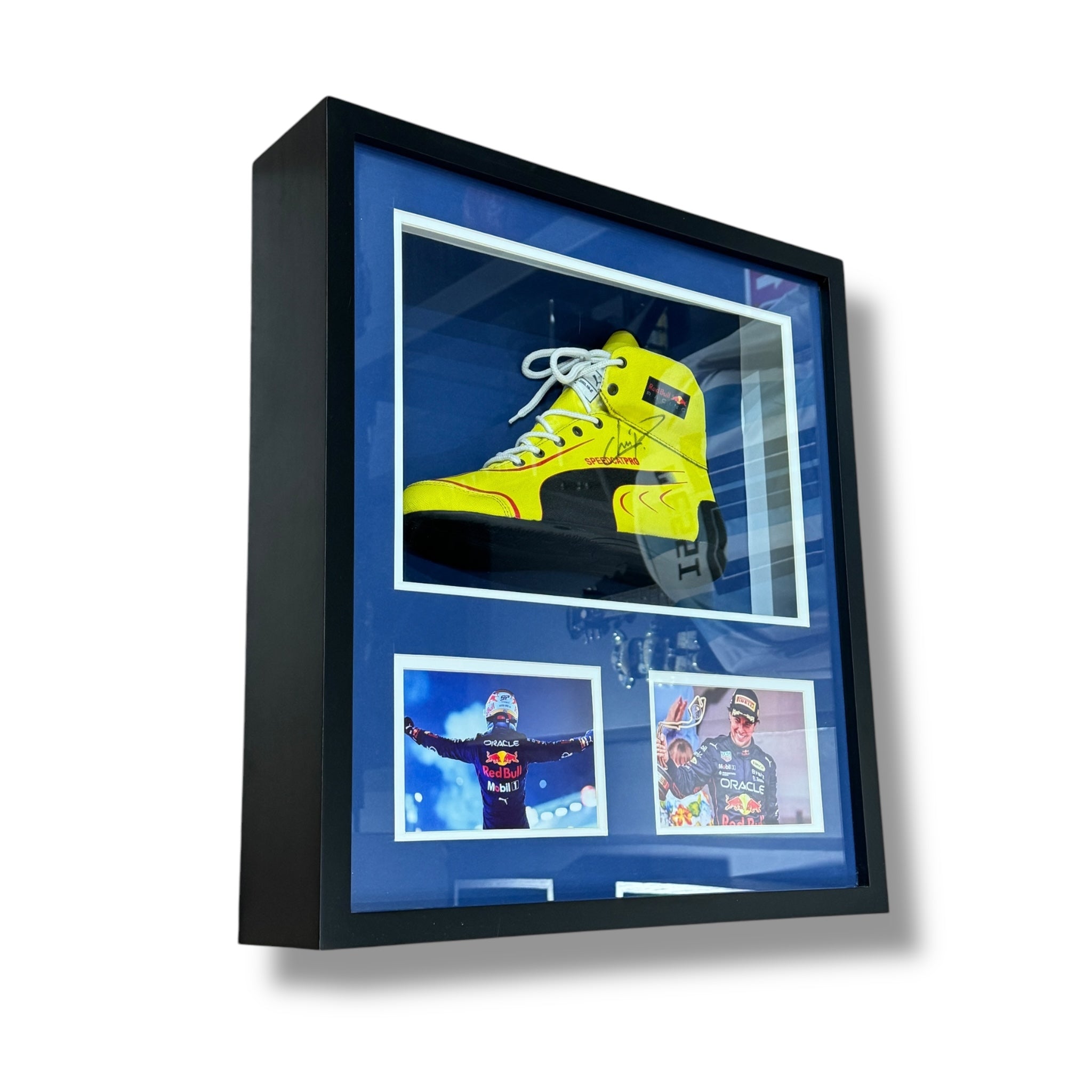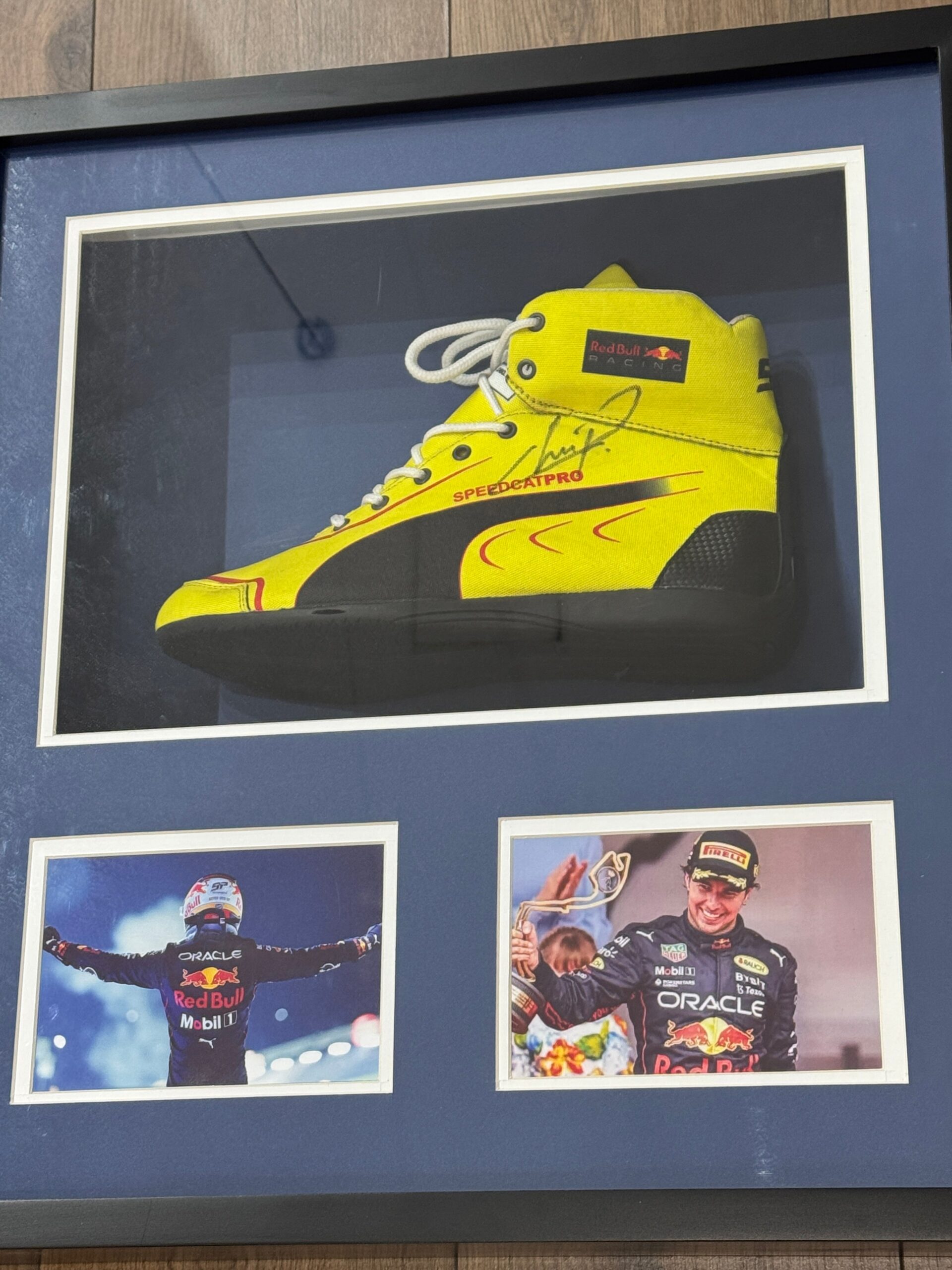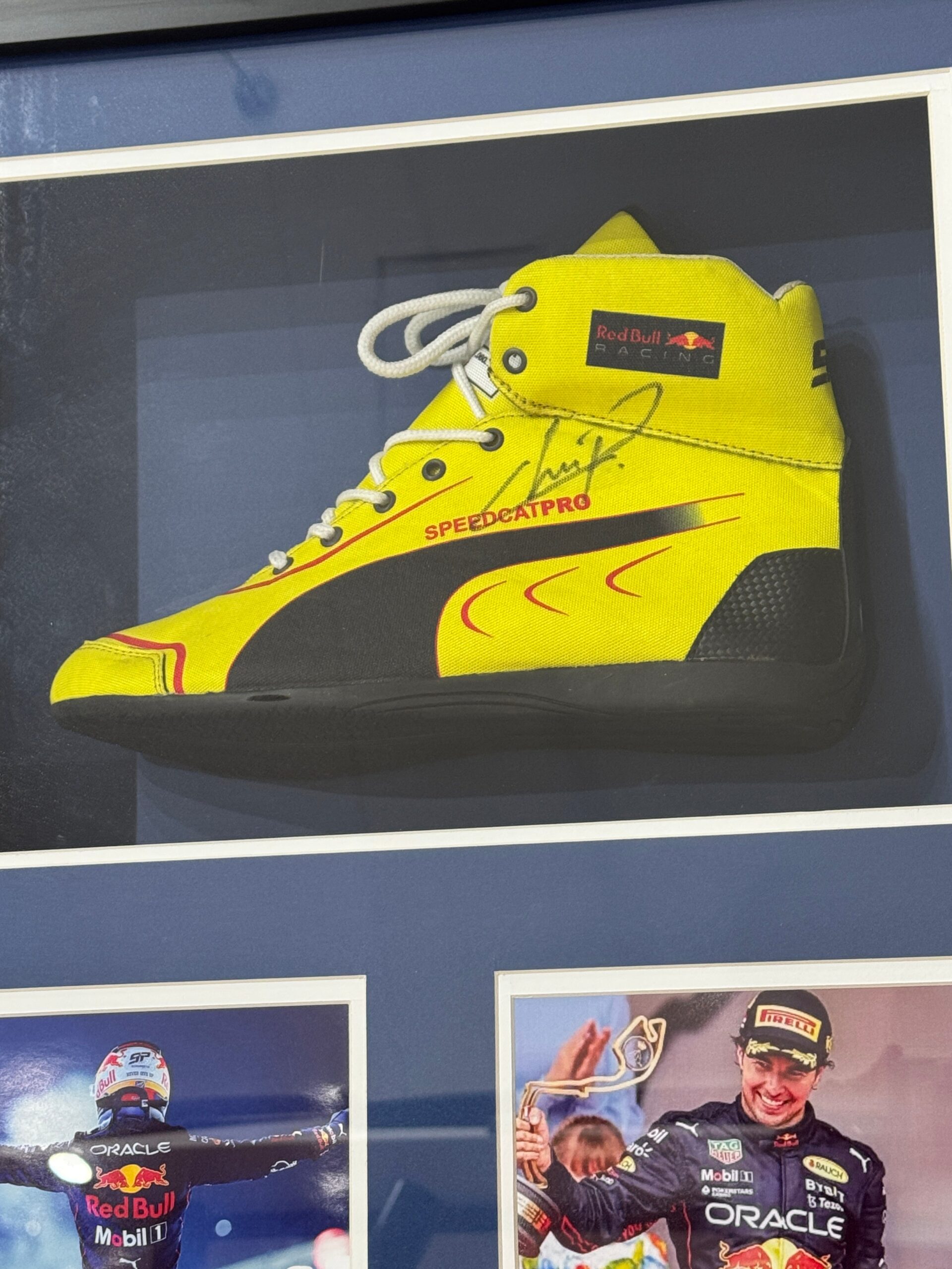 Bota autografiada por Sergio “Checo” Pérez.