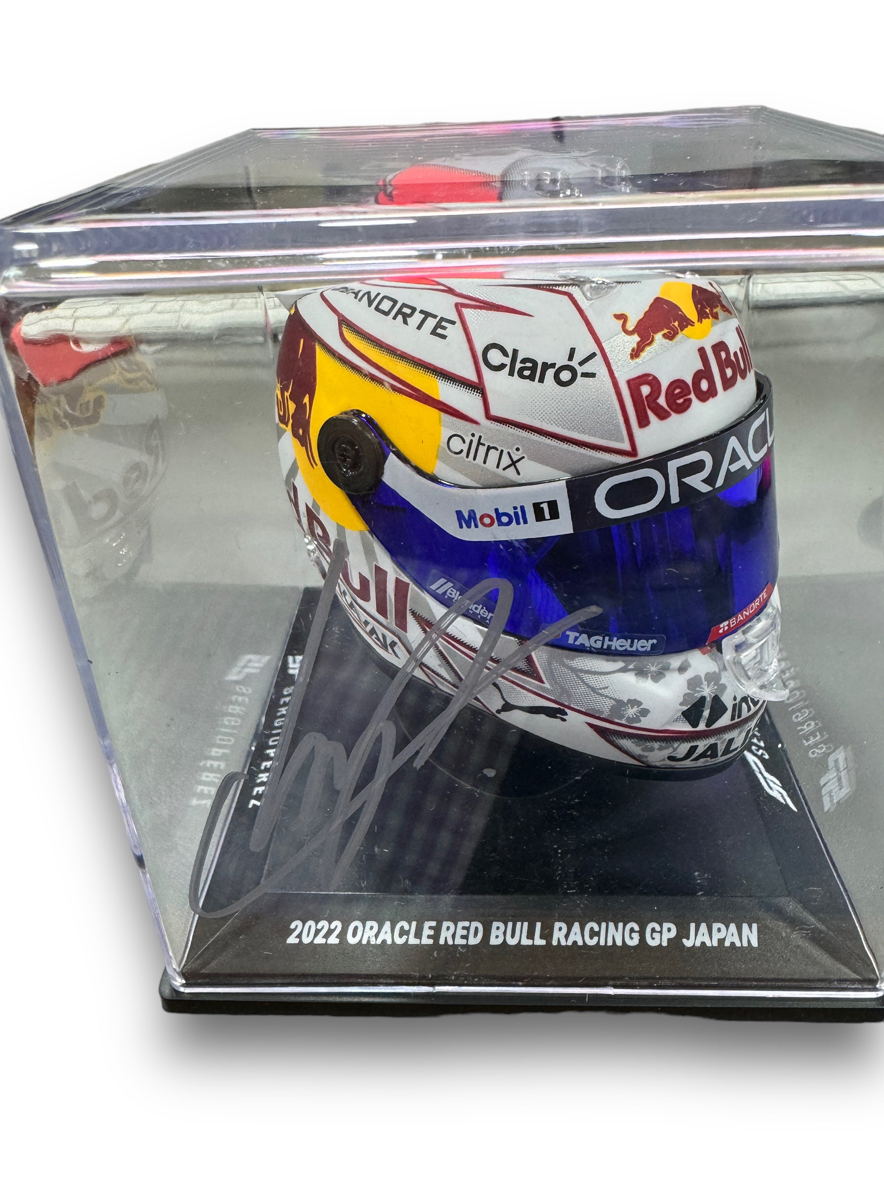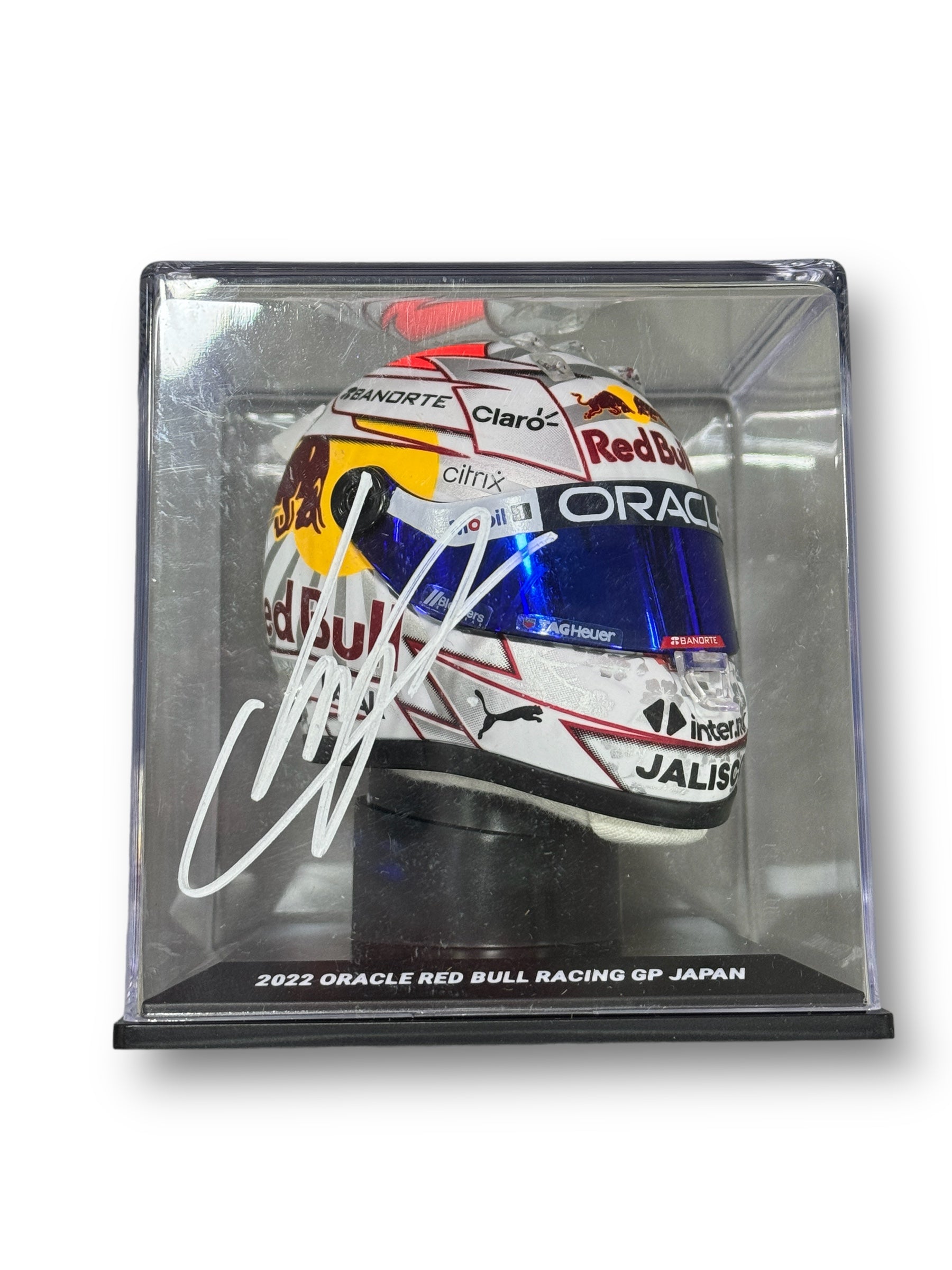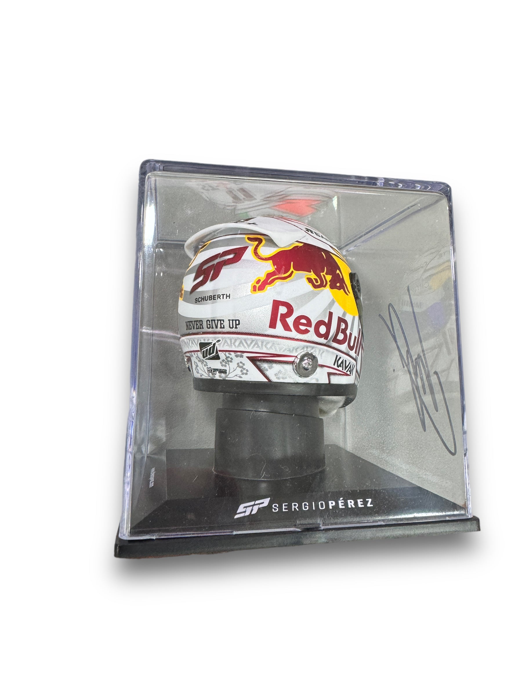 Casco escala 1:4 autografiado por el piloto de F1, Sergio Checo Pérez.