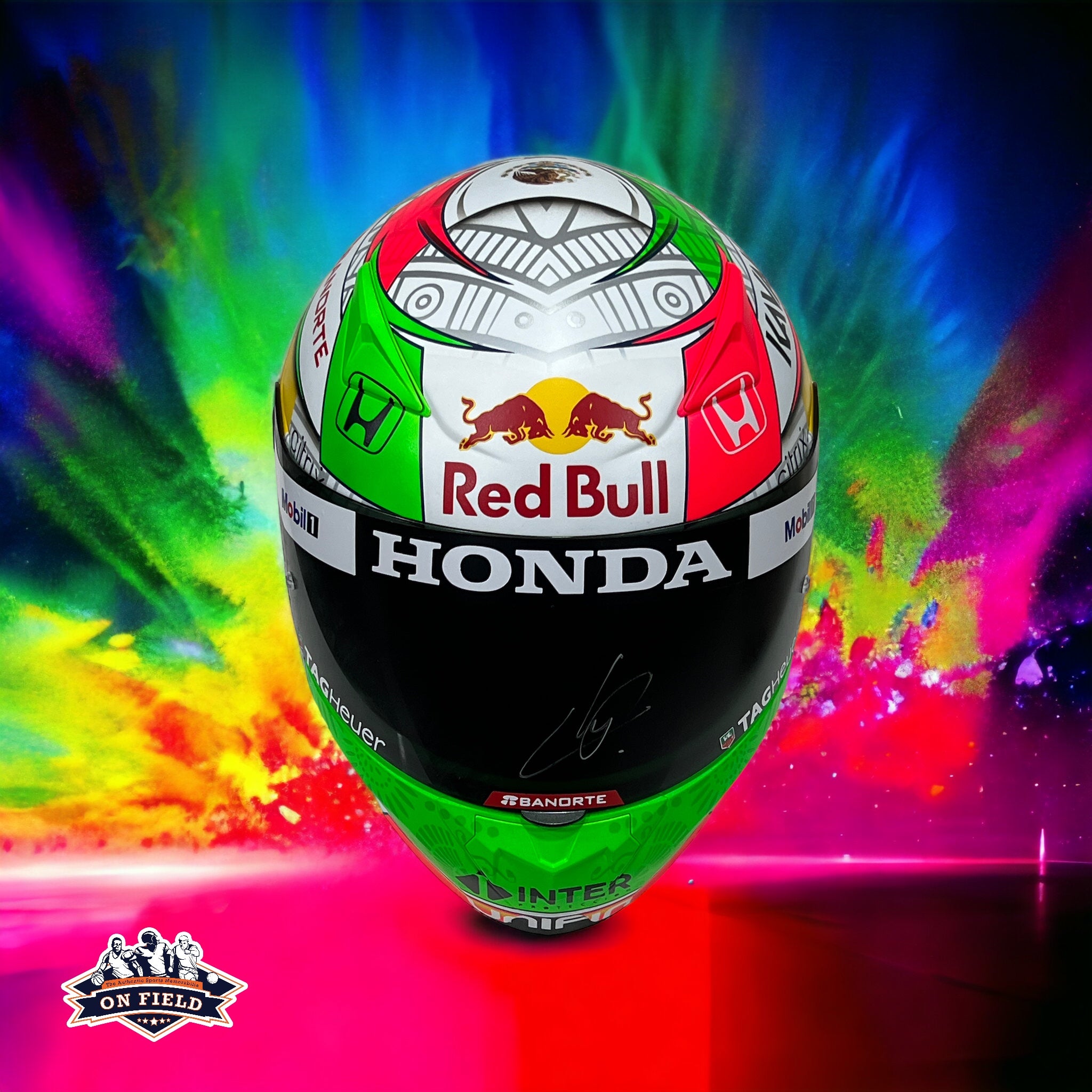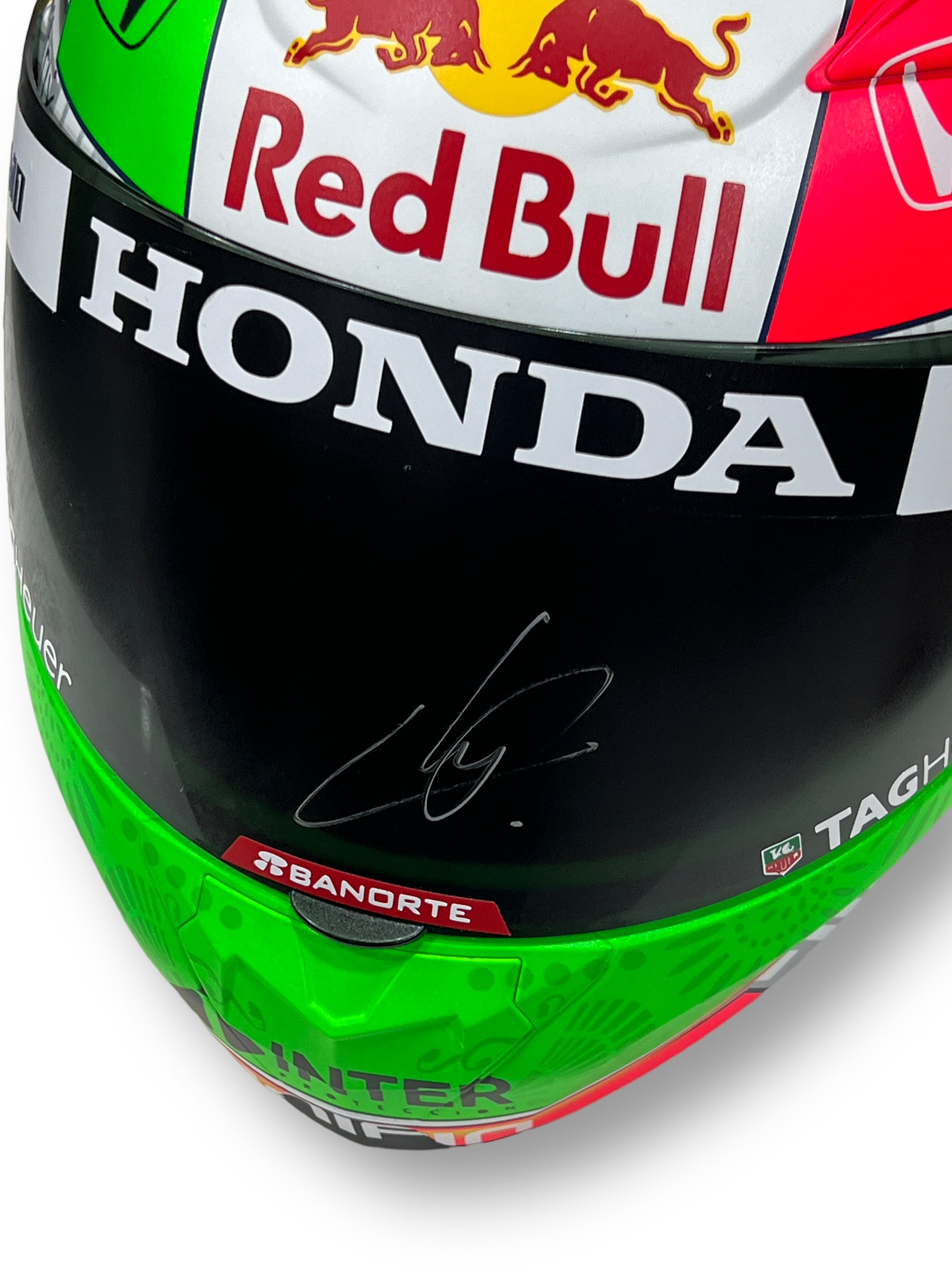 Casco Full réplica autografiado por el piloto Mexicano Sergio Checo Pérez