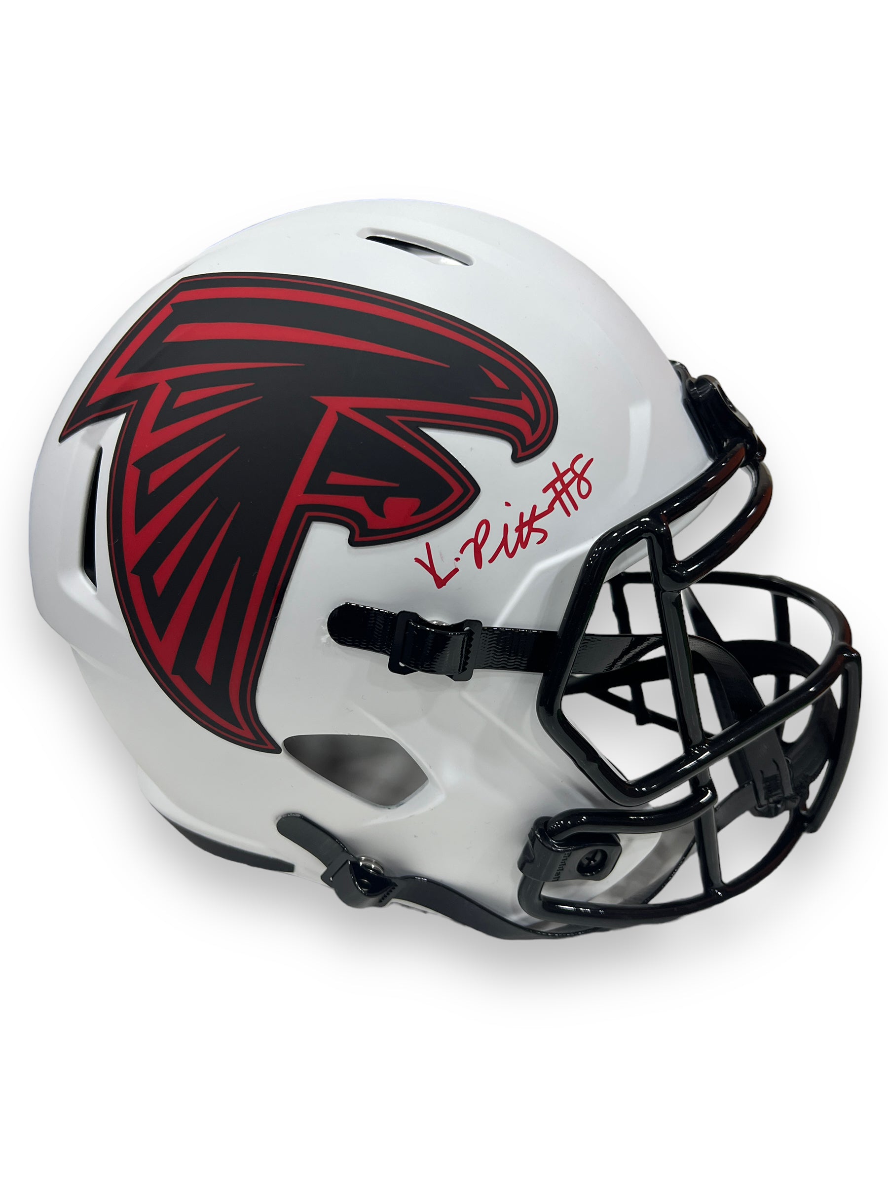 Casco Full size autografiado por el jugador de los Falcons, Kyle Pitts. Versión Lunar