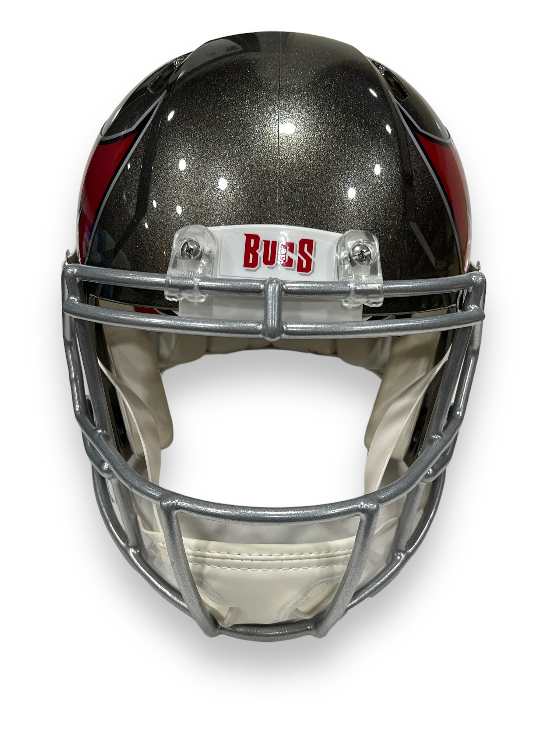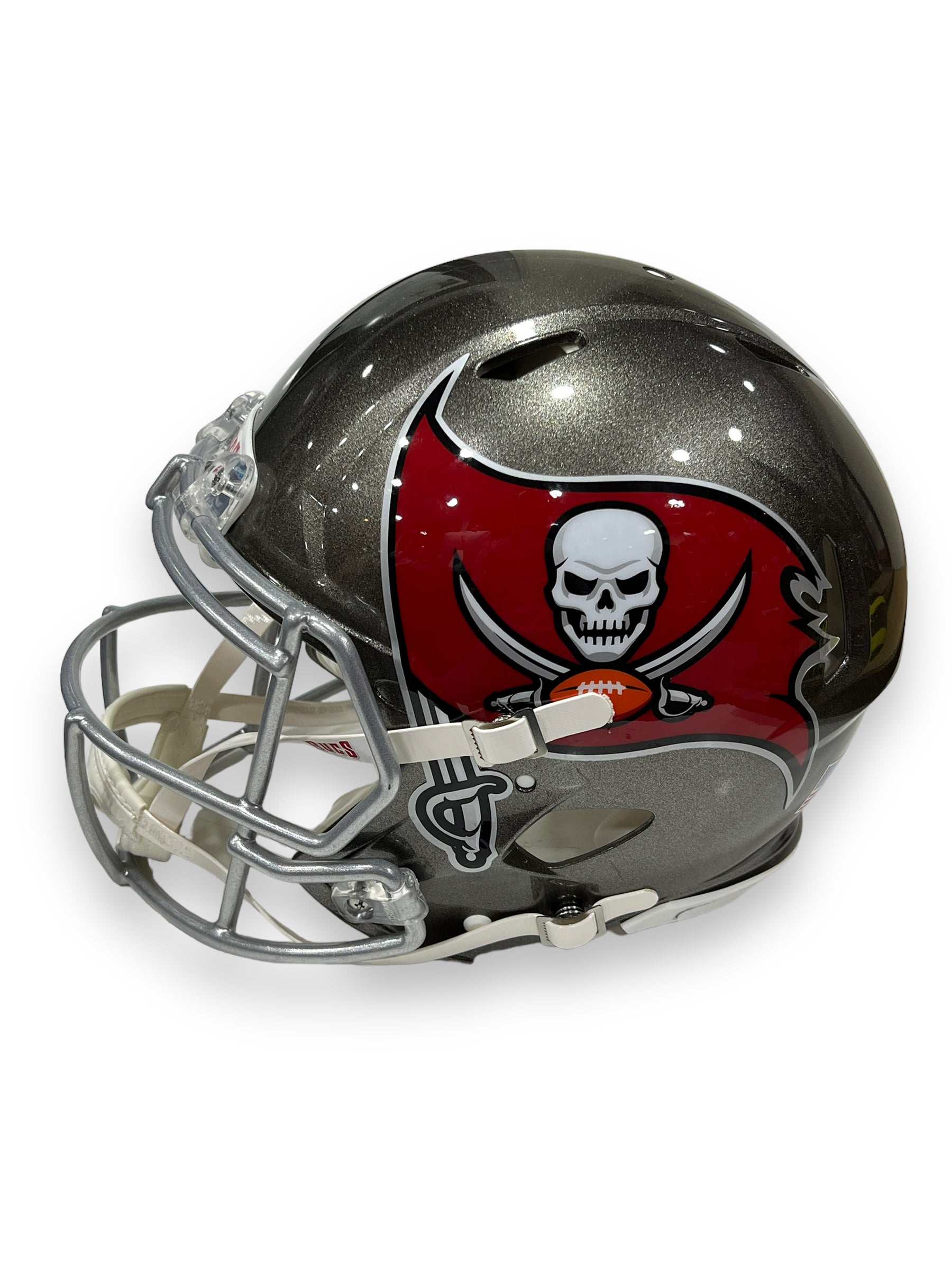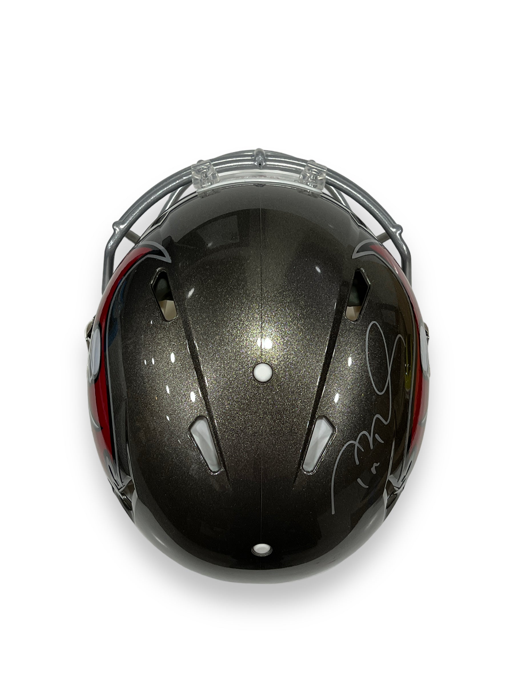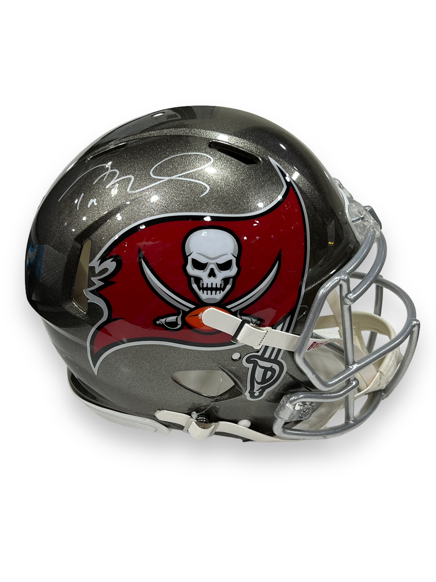 Casco profesional autografiado por el jugador Tom Brady, jugador de Tampa Bay Buccanneers.