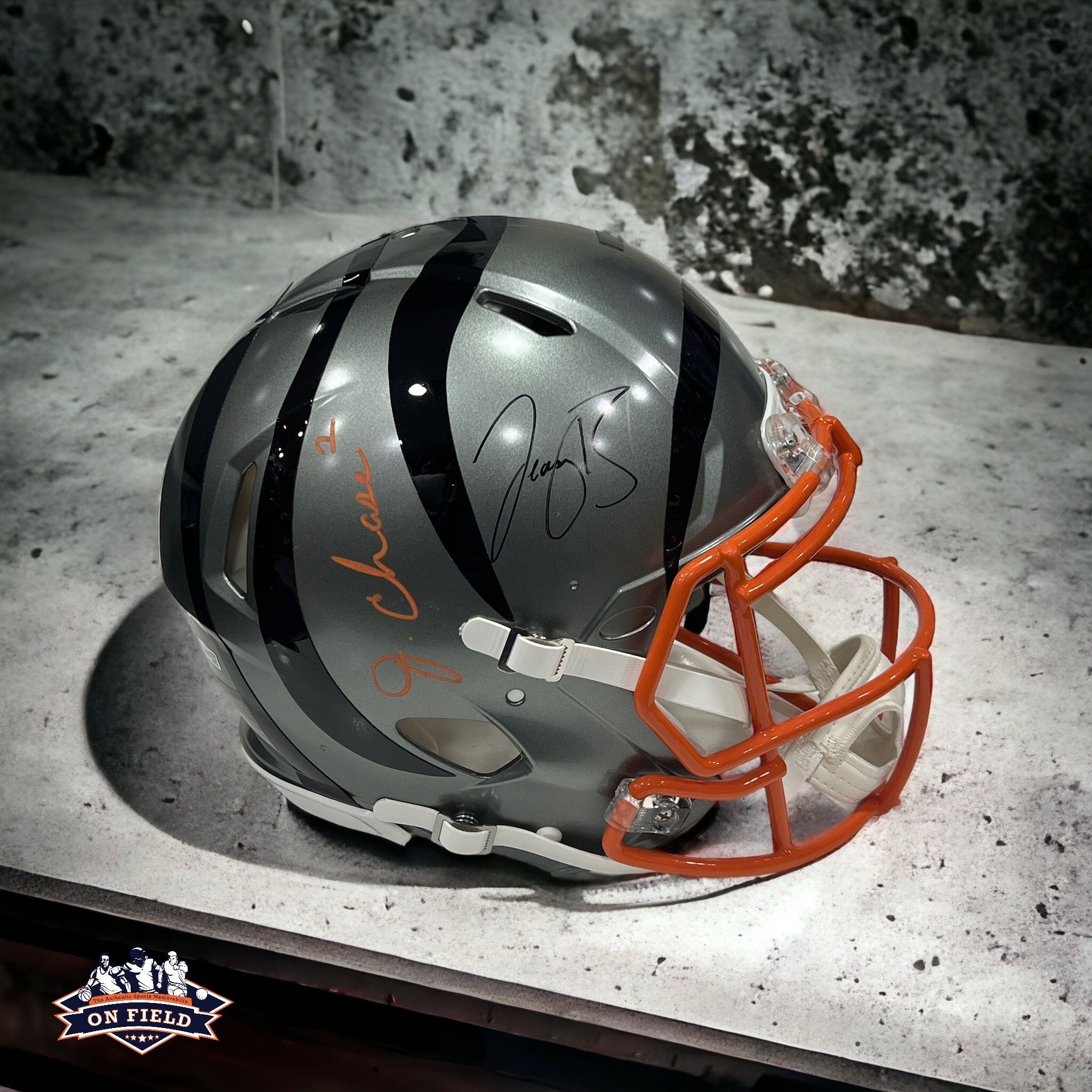 Caco proline autografiado por los jugadores de los Bengals Speed Flash Joe Burrow y Jamarr Chase.