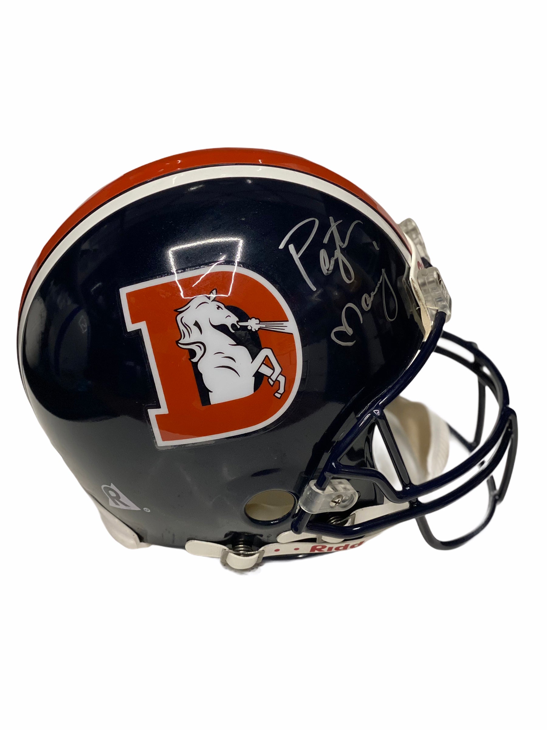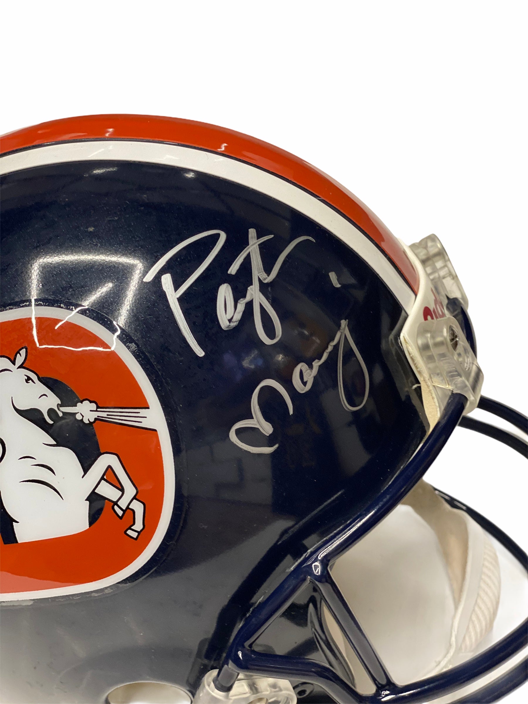 Casco Proline autografiado por Peyton Manning, de los Broncos de DenverJohn Elway es un exjugador profesional de fútbol americano. Jugaba en la posición de quarterback y fue uno de los más grandes de todos los tiempos.