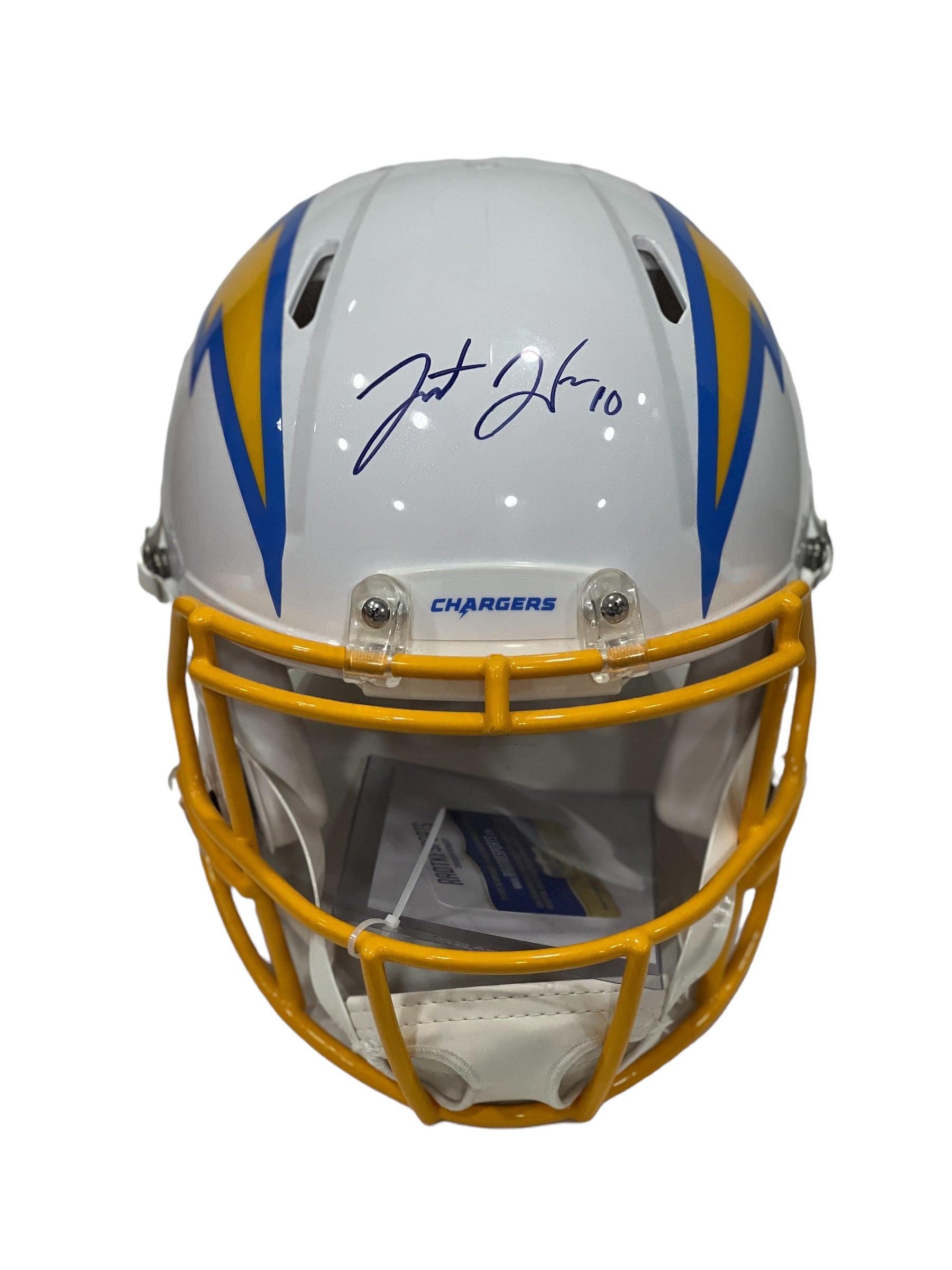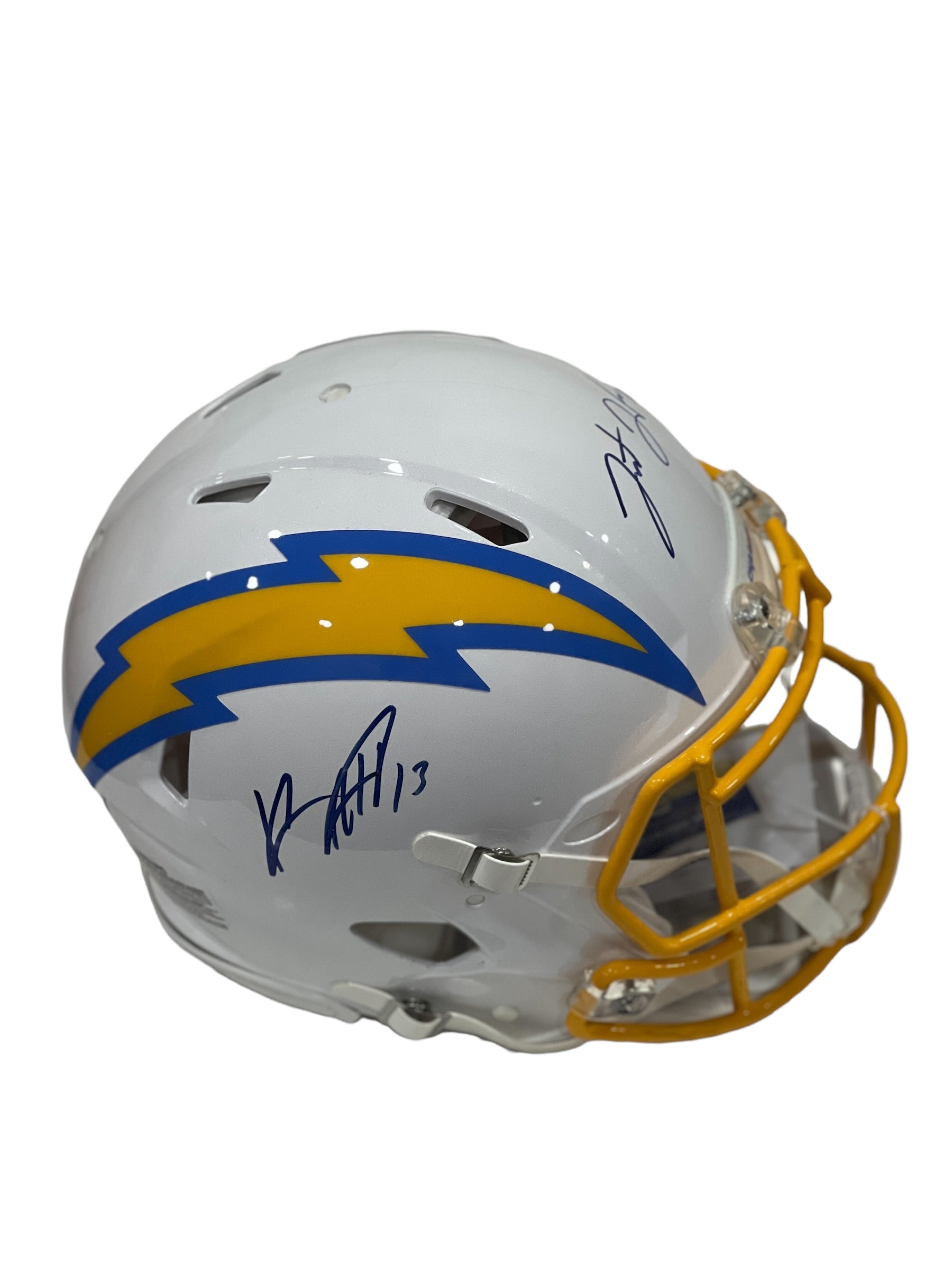 Casco profesional autografiado por los jugadores Keenan Allen, Justin Herbert