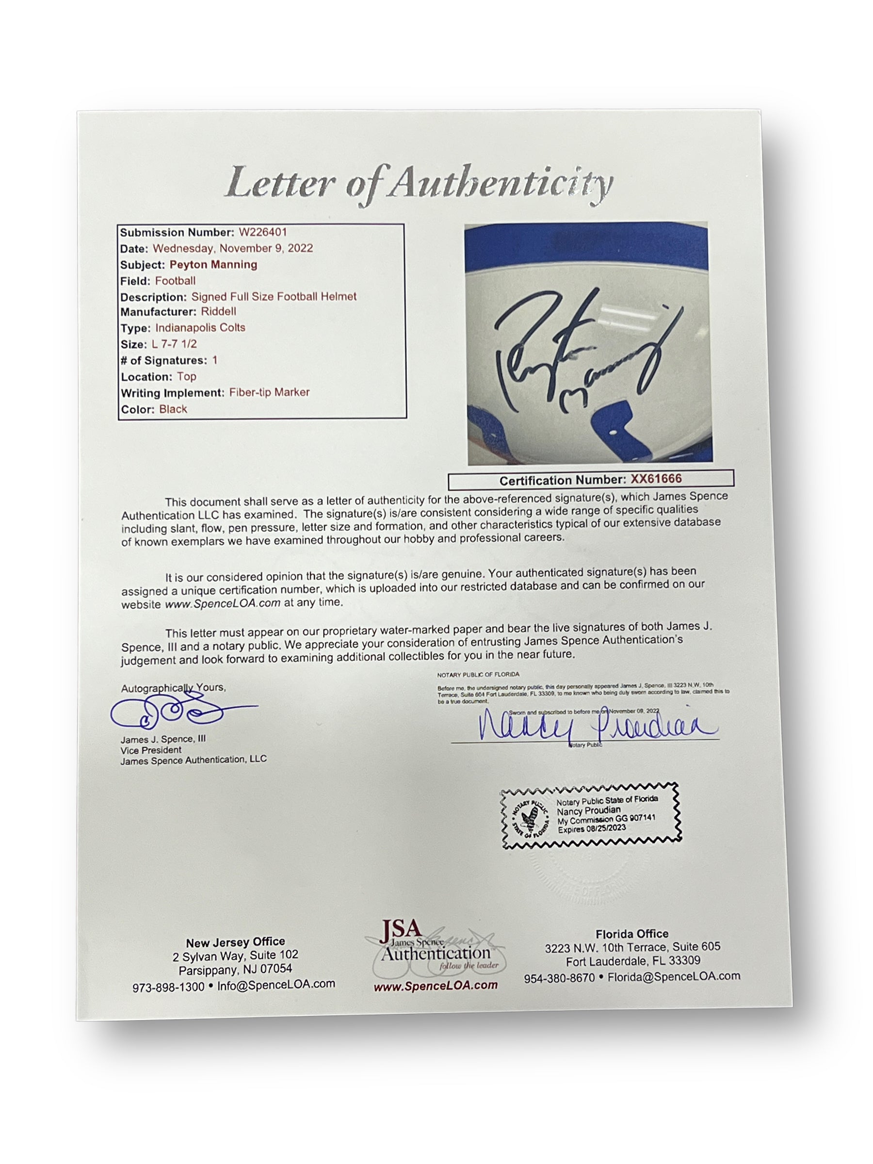 Casco PROFESIONAL autografiado por el jugador de los Colts Peyton Manning