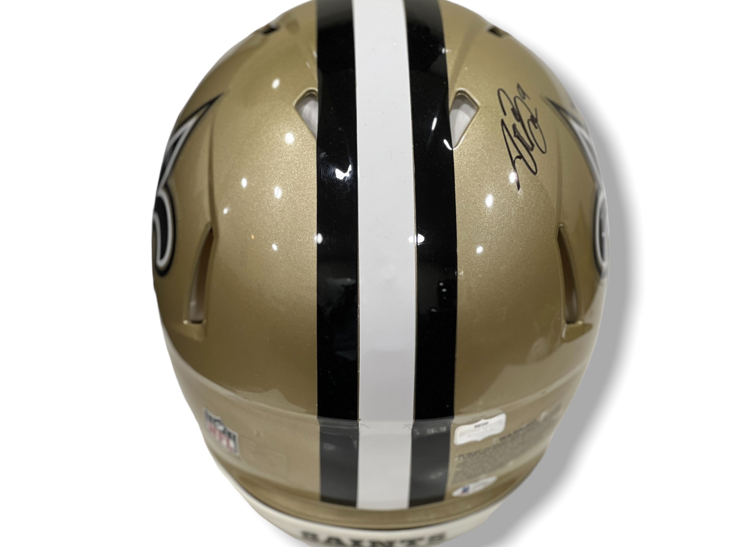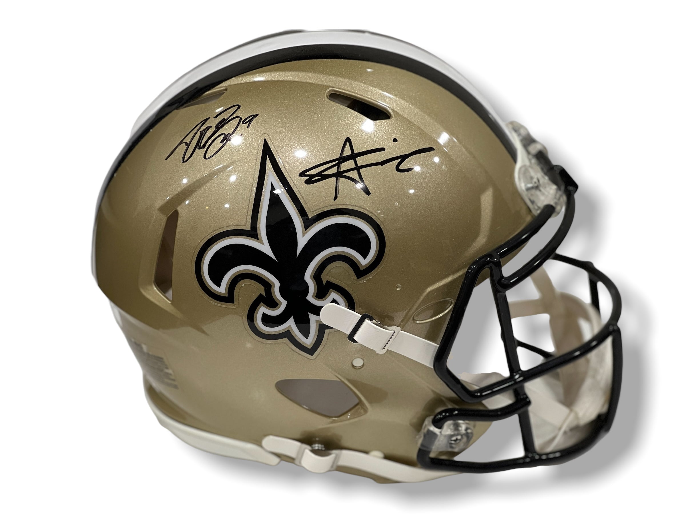 Casco Pro autografiado por los jugadores de los Santis Drew Brees y Alvin Kamara