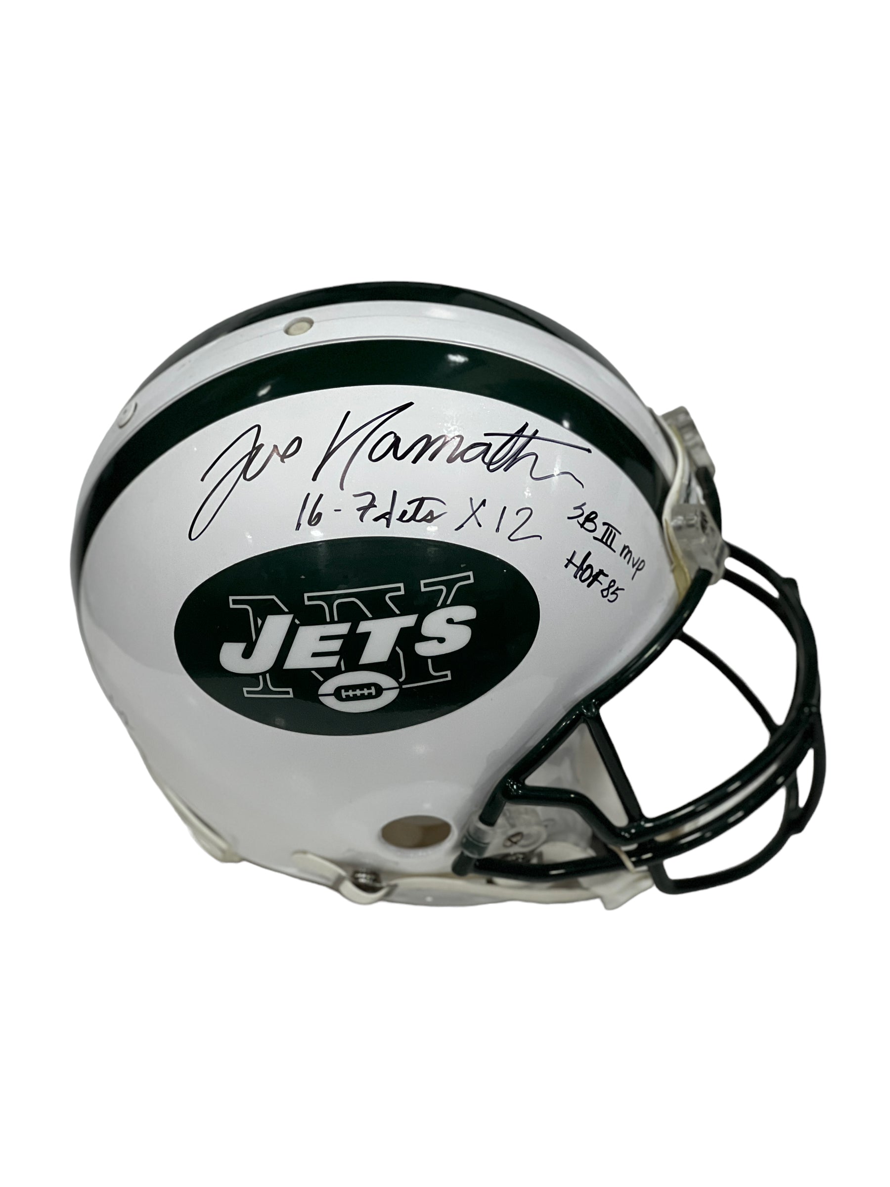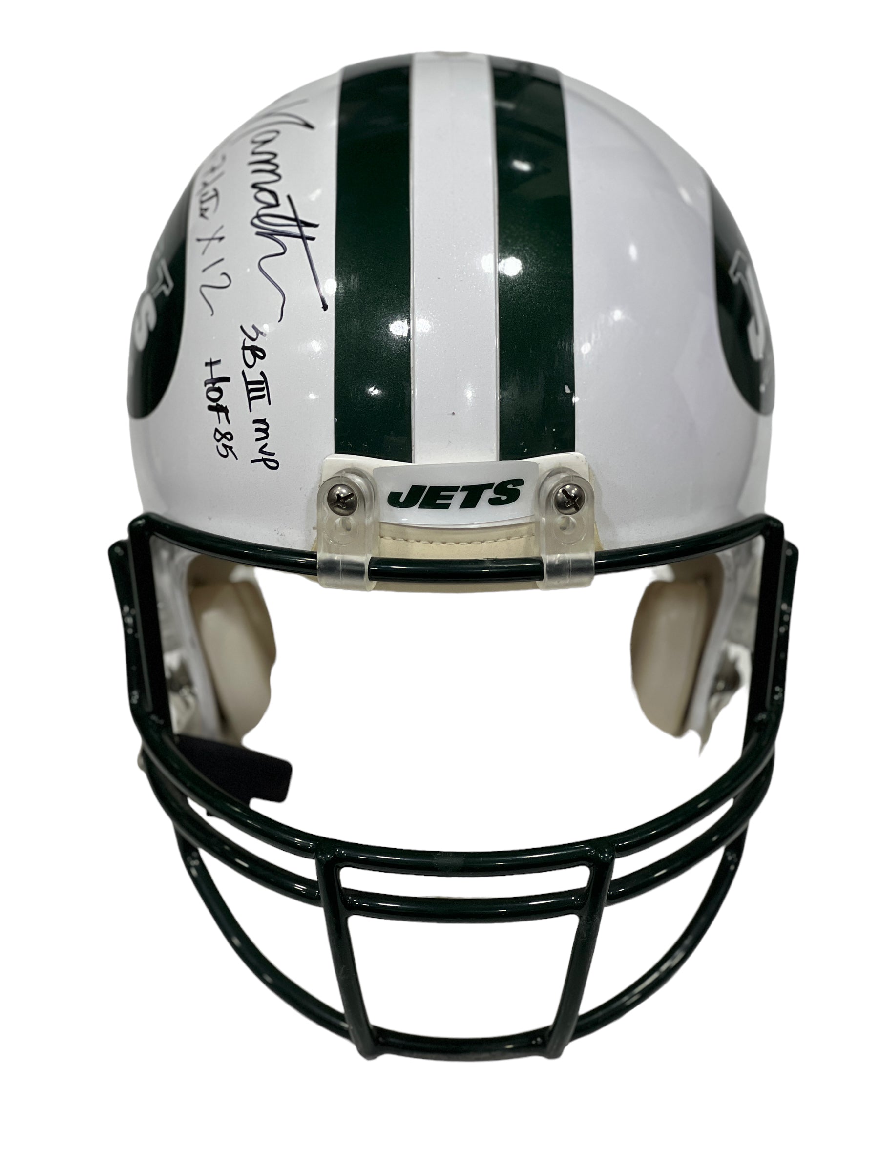 Casco Proline Throwback autografiado y usado por Joe Namath de los Jets.