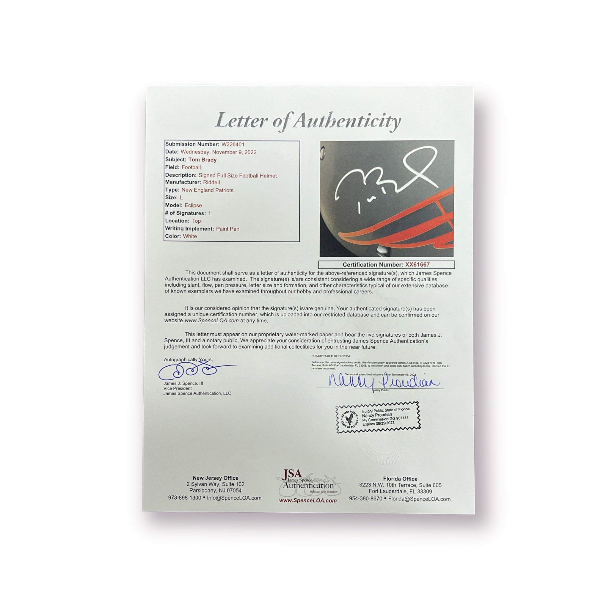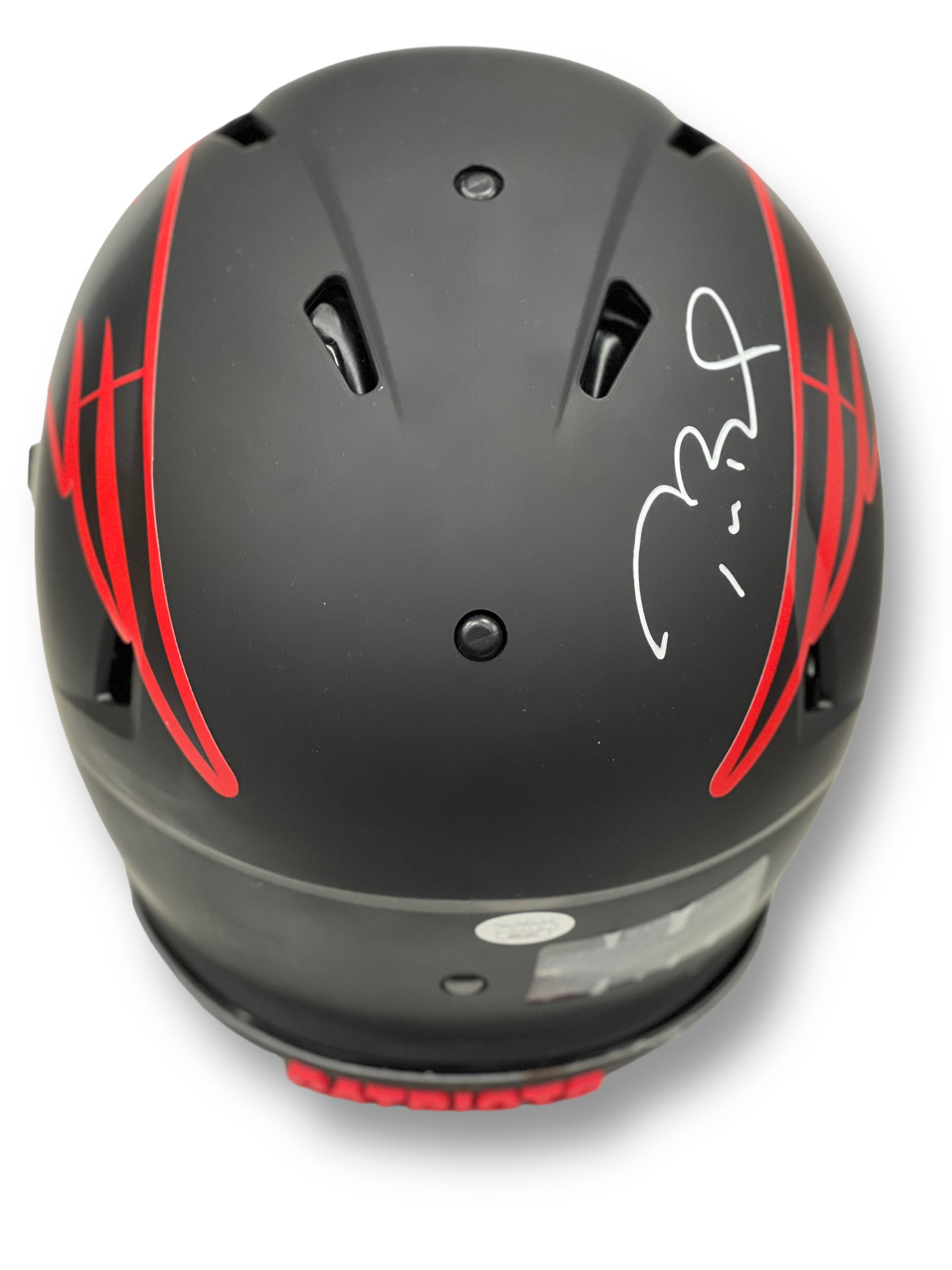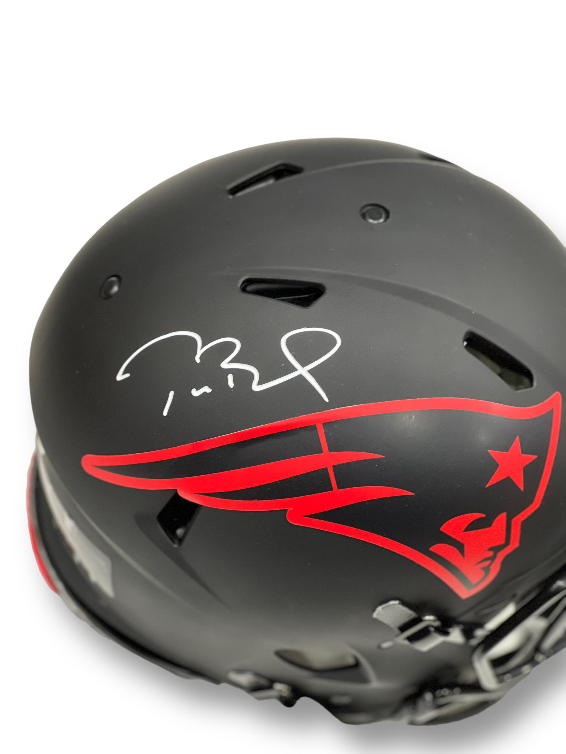 Casco autografiado por el jugador Tom Brady, leyenda de los Patriots.