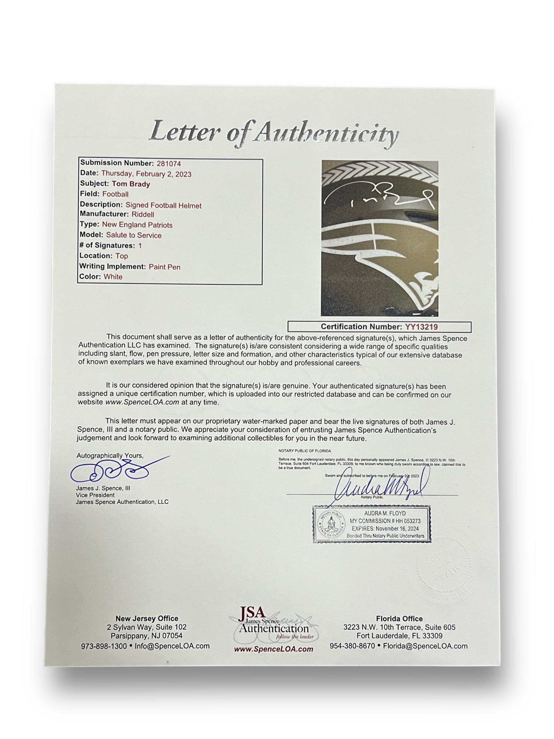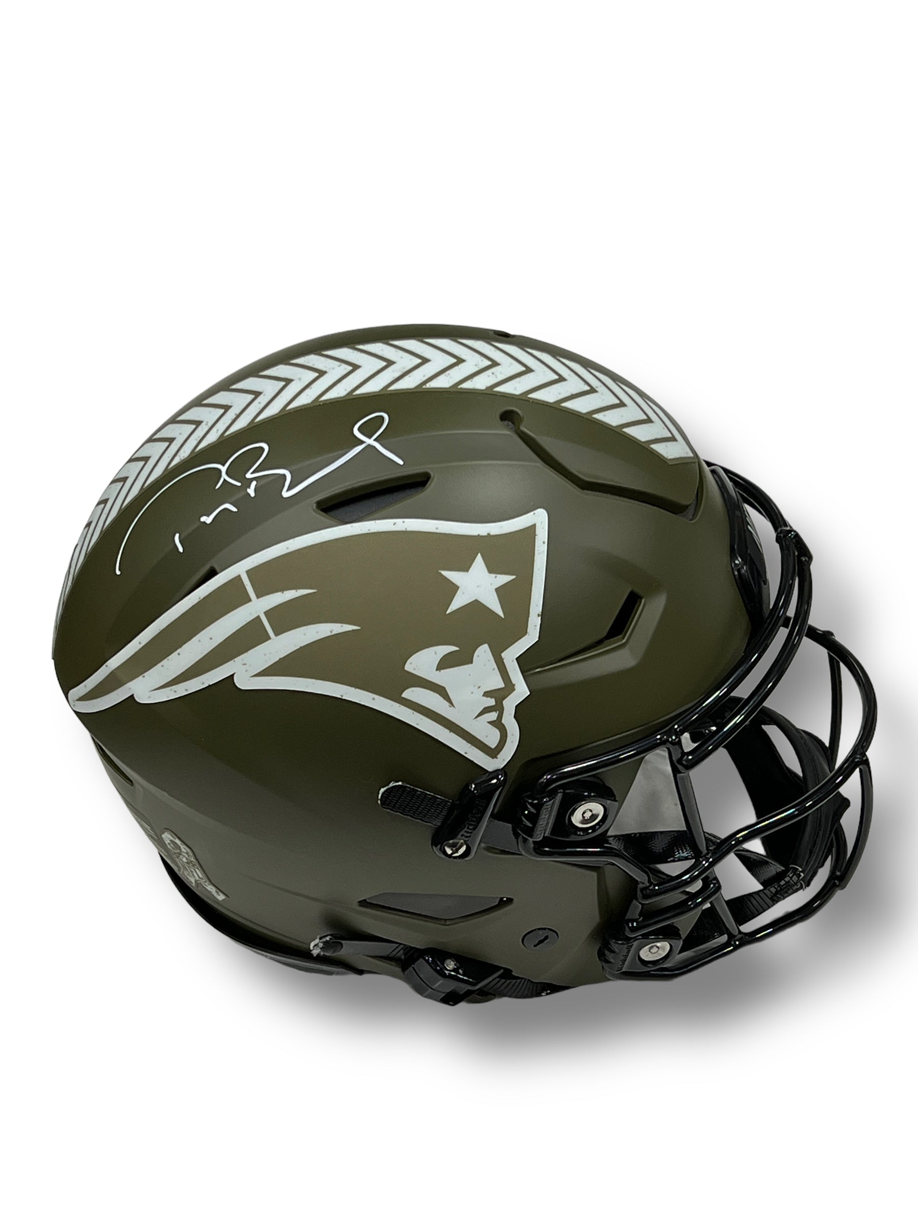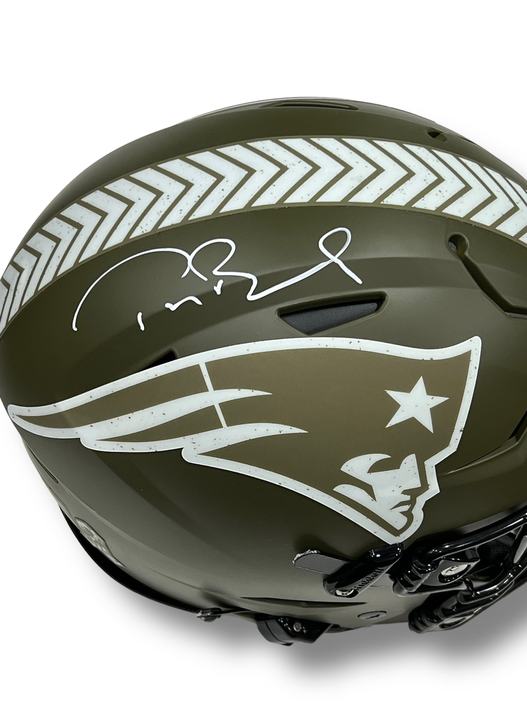 Casco Proline autografiado por el jugador de los patriots Tom Brady. Este casco es el edición Salute to Service.