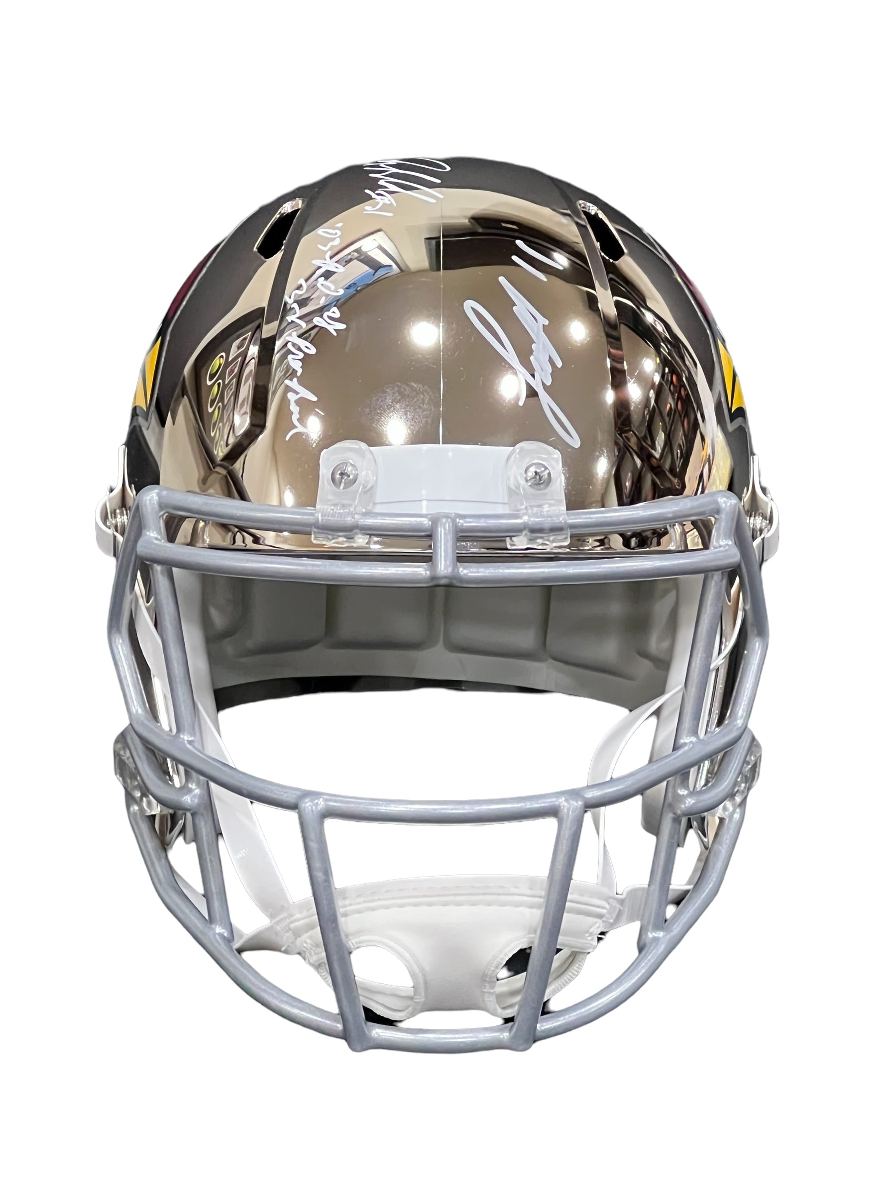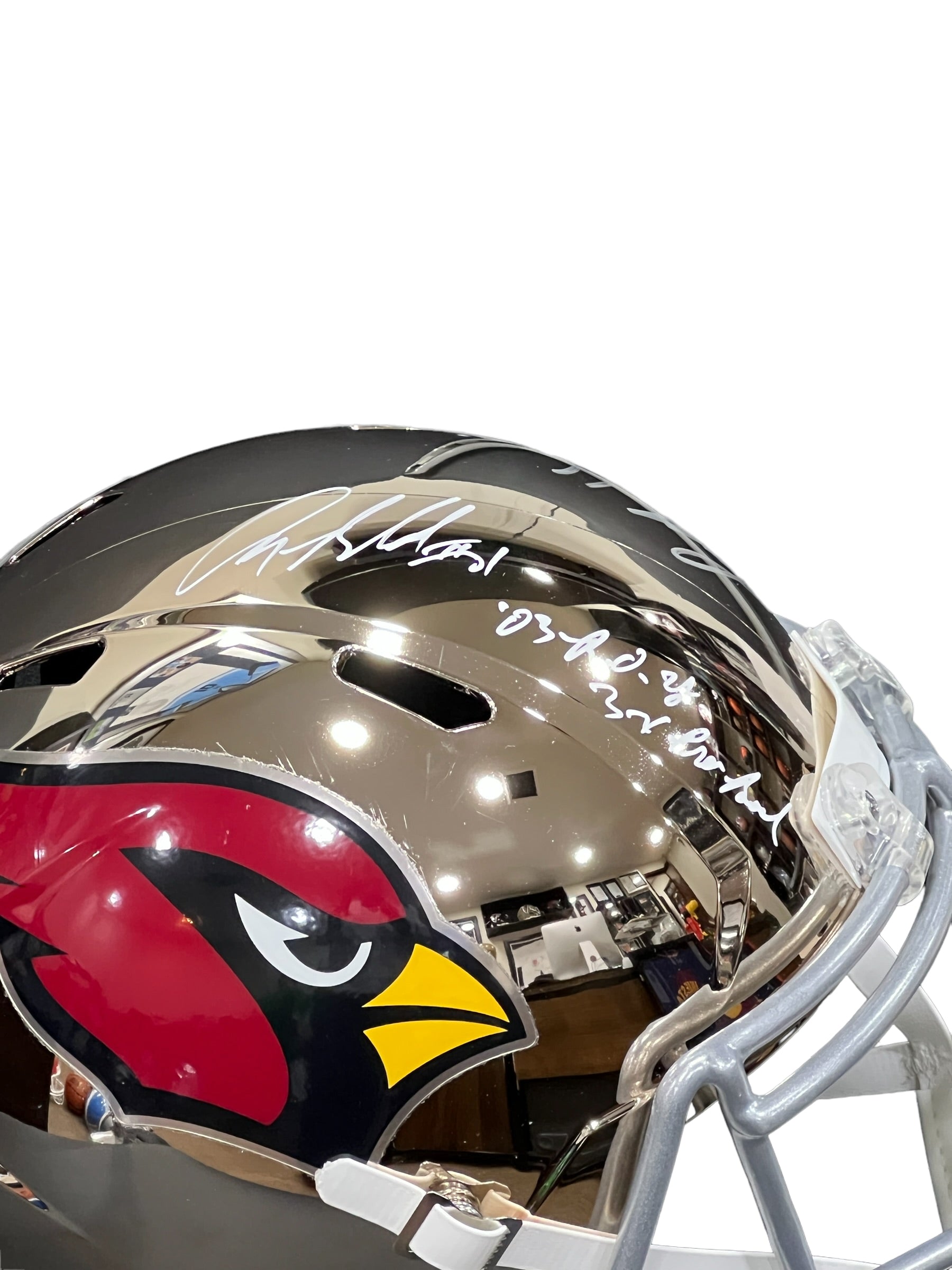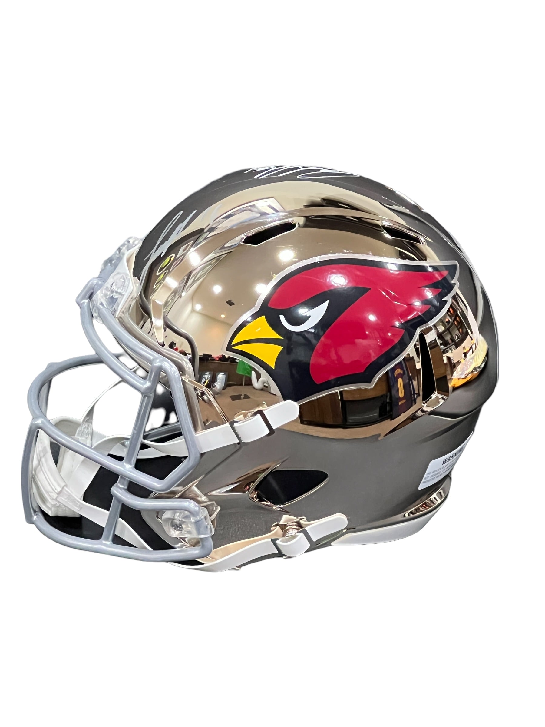 Casco full size chrome autografiado por los jugadores de los Cardinals, Anquan Boldin y Larry Fitzgerald.