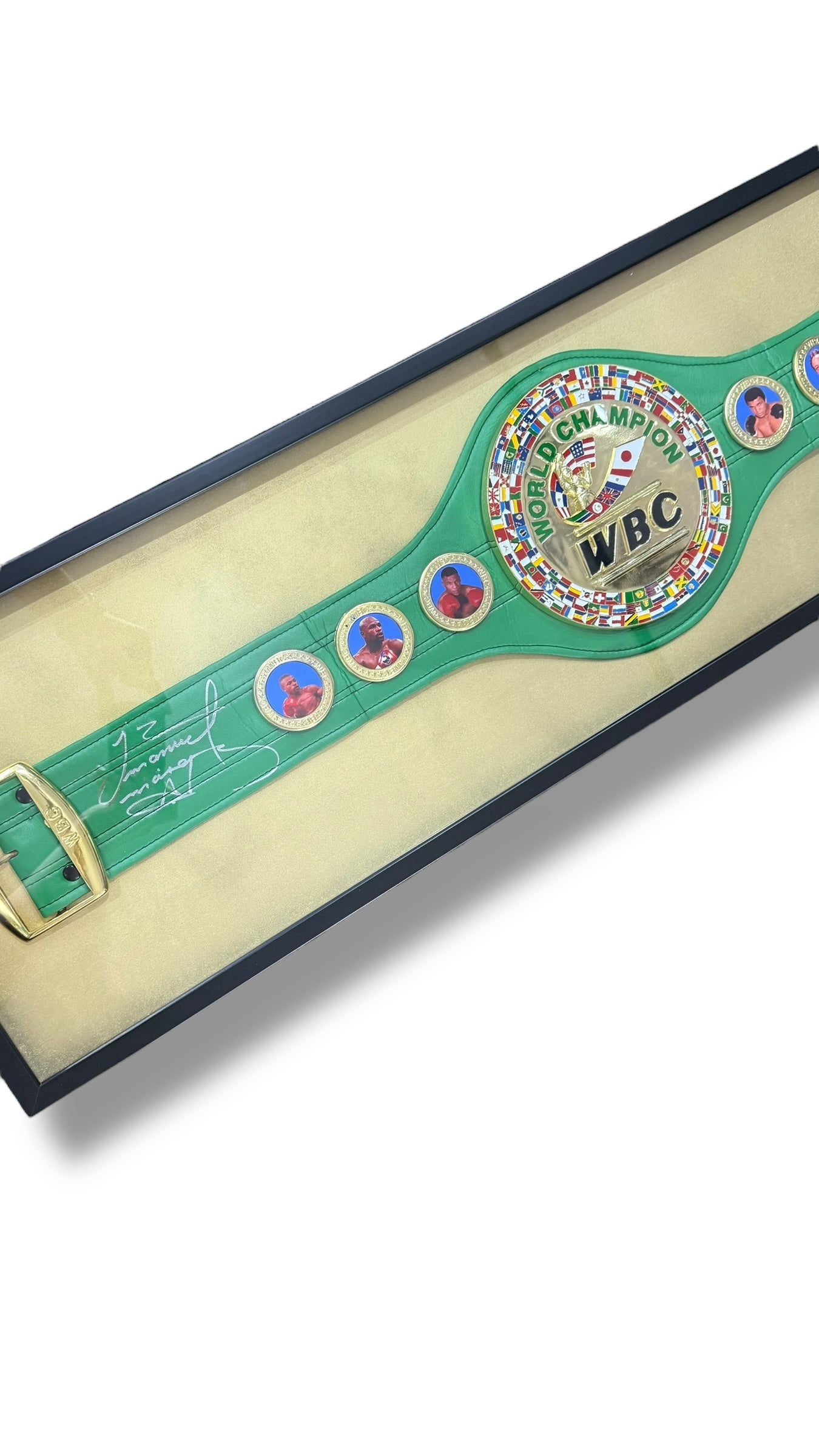 Cinturon de Box enmarcado tamaño real 1:1, autografiado por Juan Manuel Márquez.