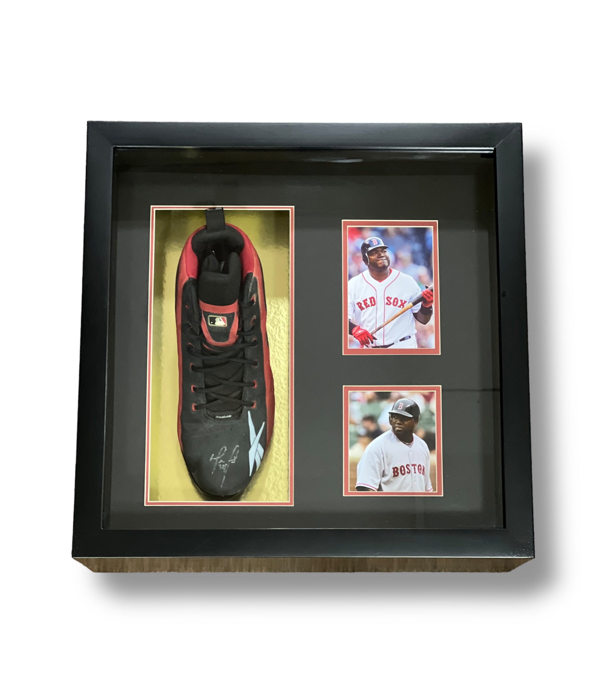 Cleat enmarcado autografiado (Usado en juego) por el jugador de los Red Sox, David Ortiz “Big Papi”