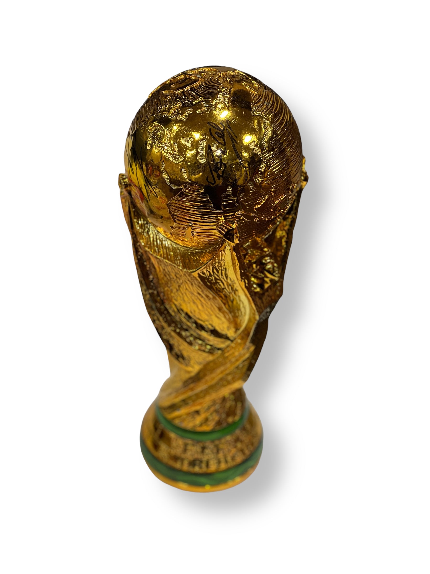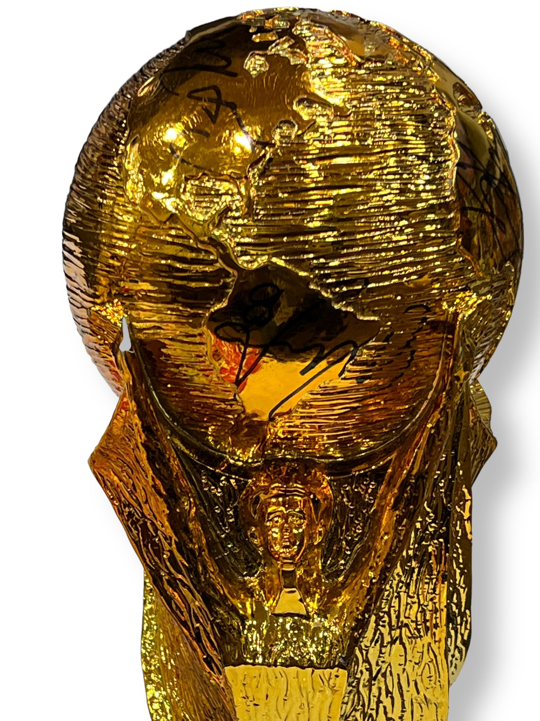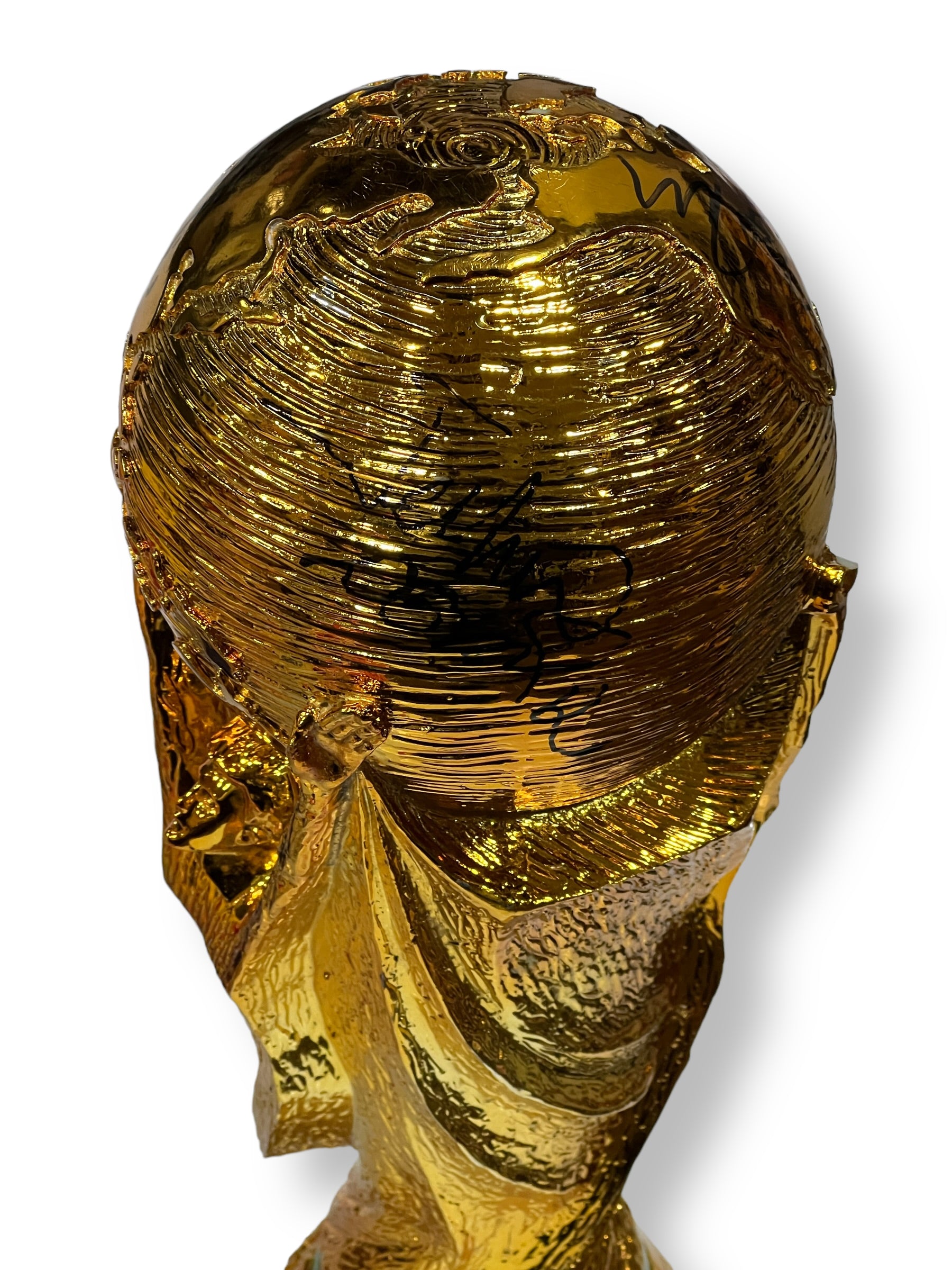 La copa fue firmada por las leyendas de la FIFA durante la justa mundialista en Qatar 2022.