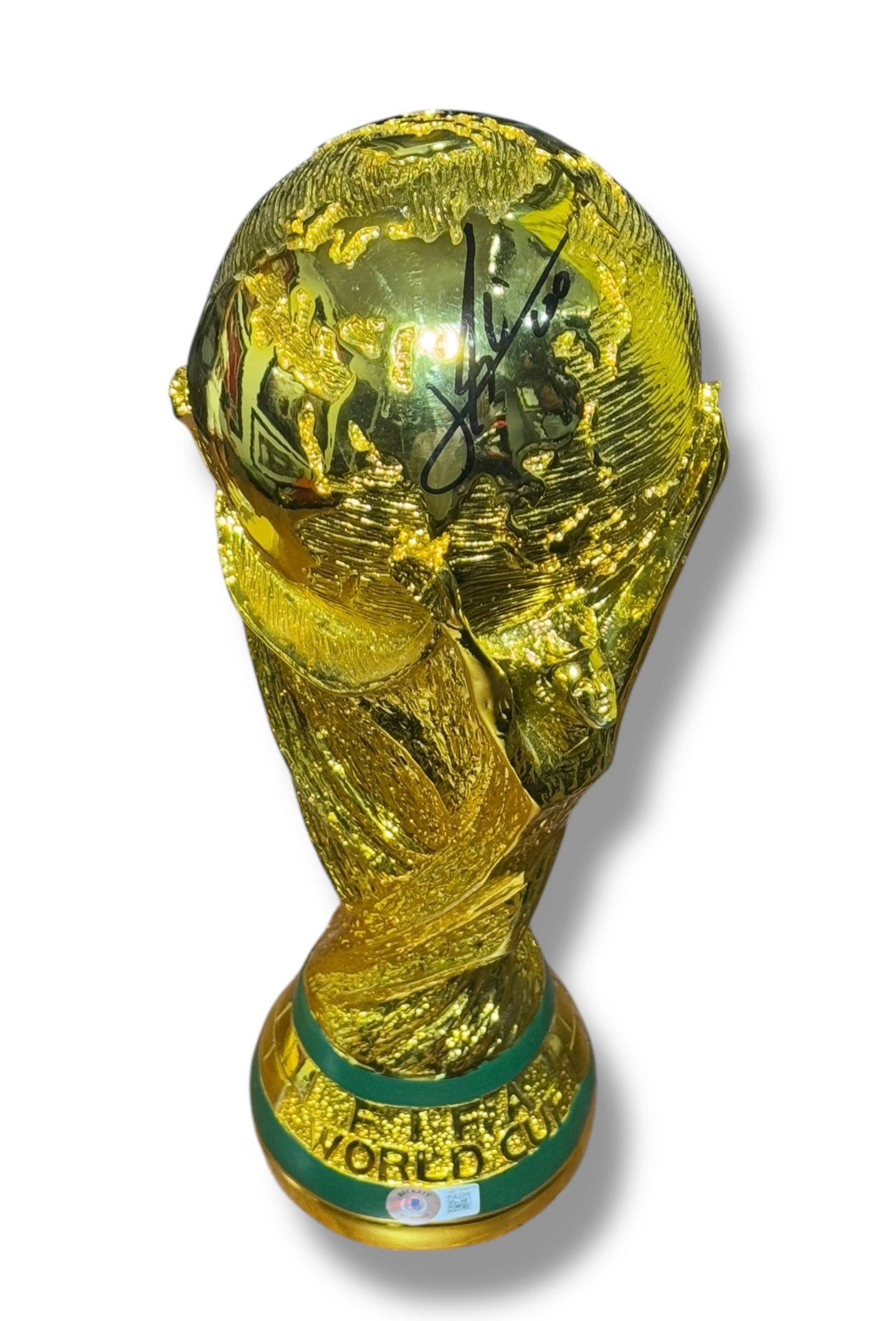 Copa del Mundo Autografiada por el jugador argentino, Lionel Messi