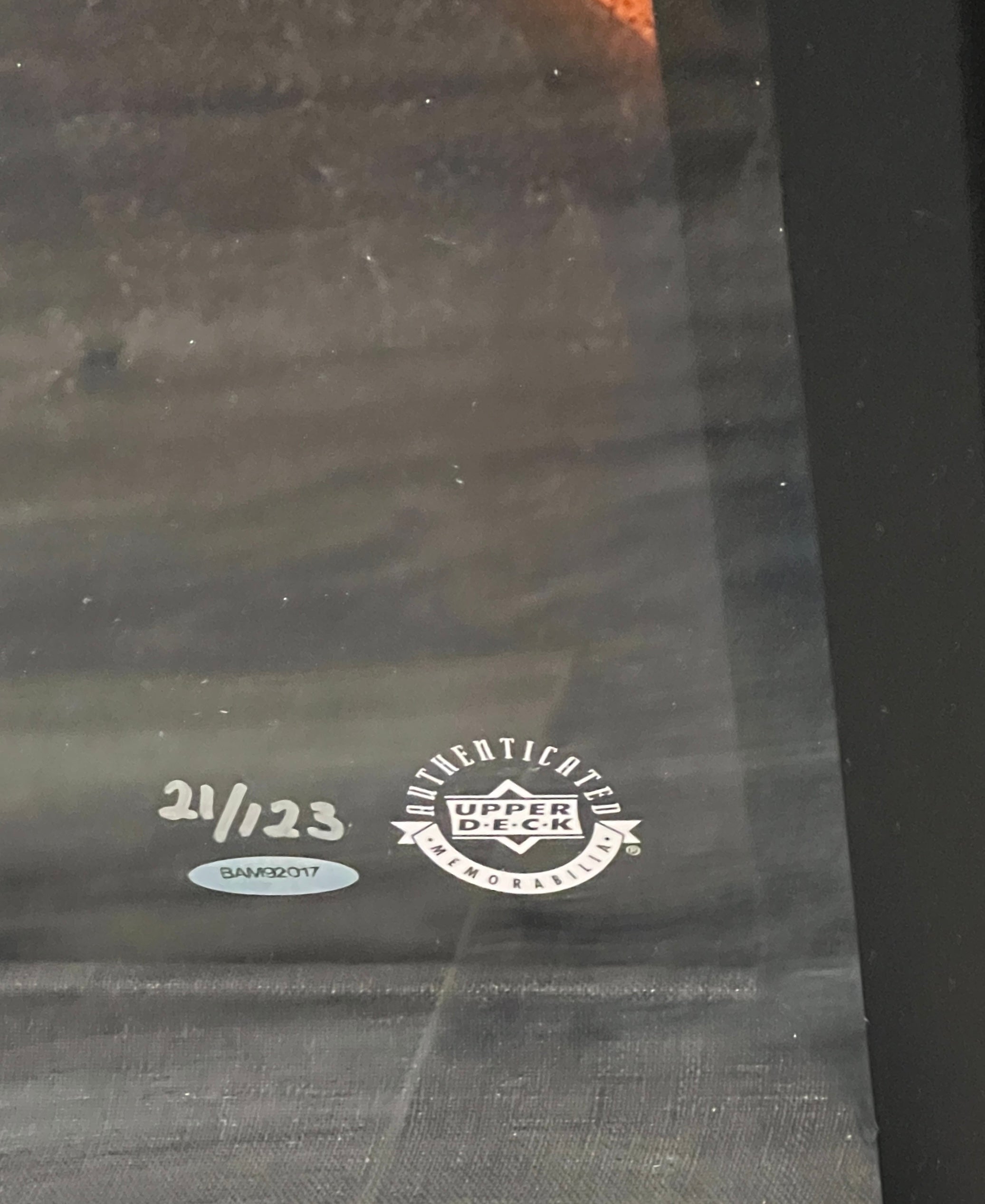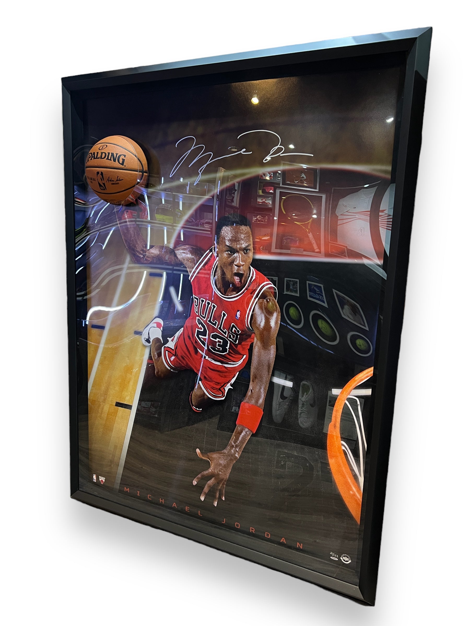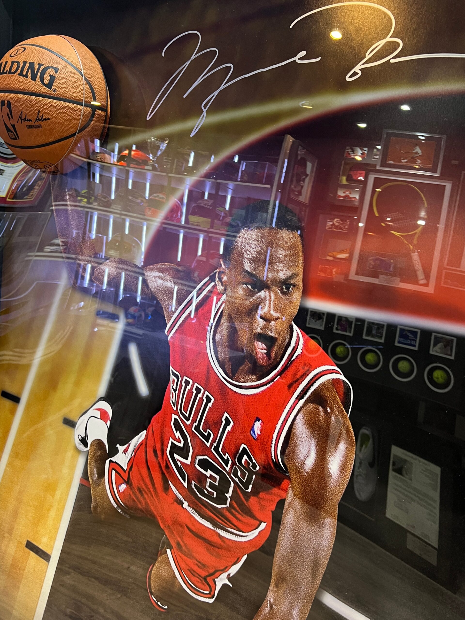 Cuadro autografiado de Michael Jordan. Este es una edición limitada a 123 piezas en el mundo. La firma en el es muy grande y clara. Estas piezas son sin duda un artículo muy especial en el mundo de la memorabilia.
