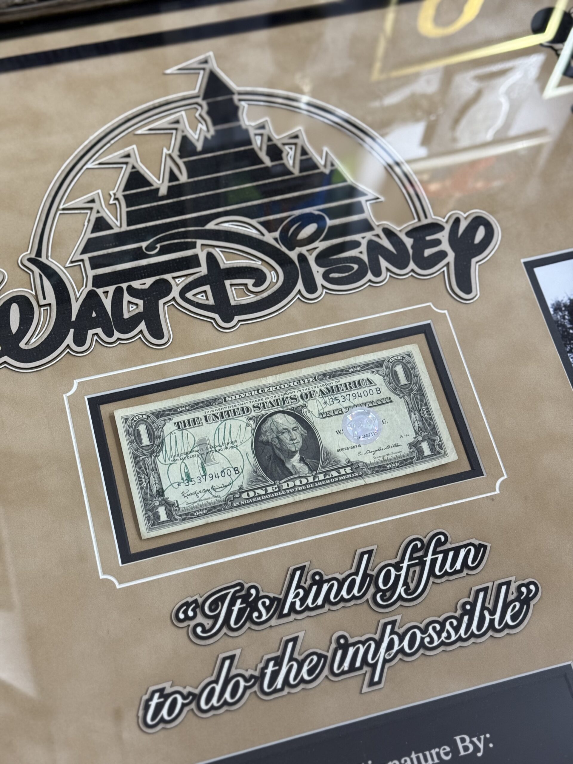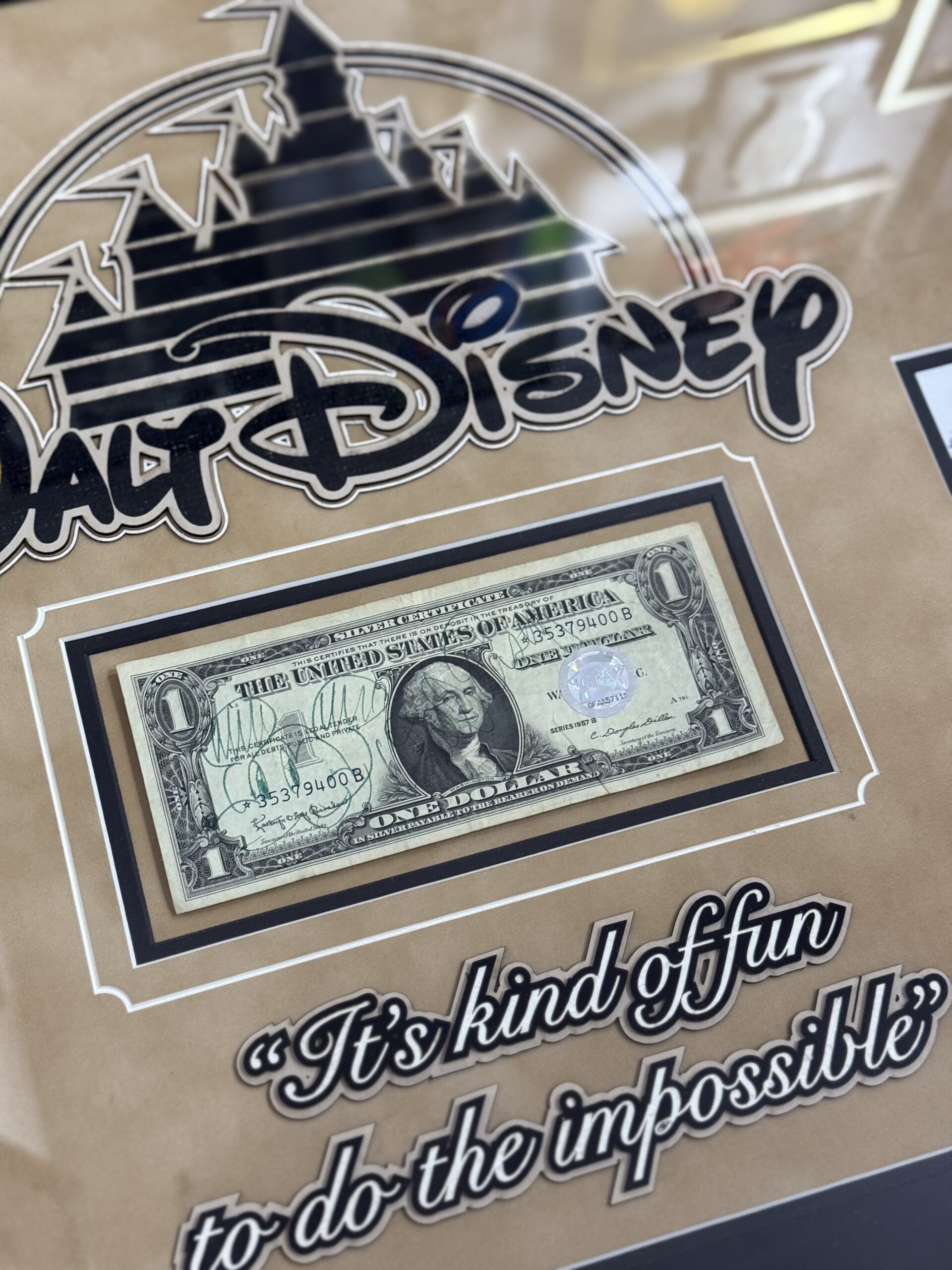 Cuadro con autografo de una gran celebridad en el mundo del Cine y la Televisión infantil, Walt Disney.