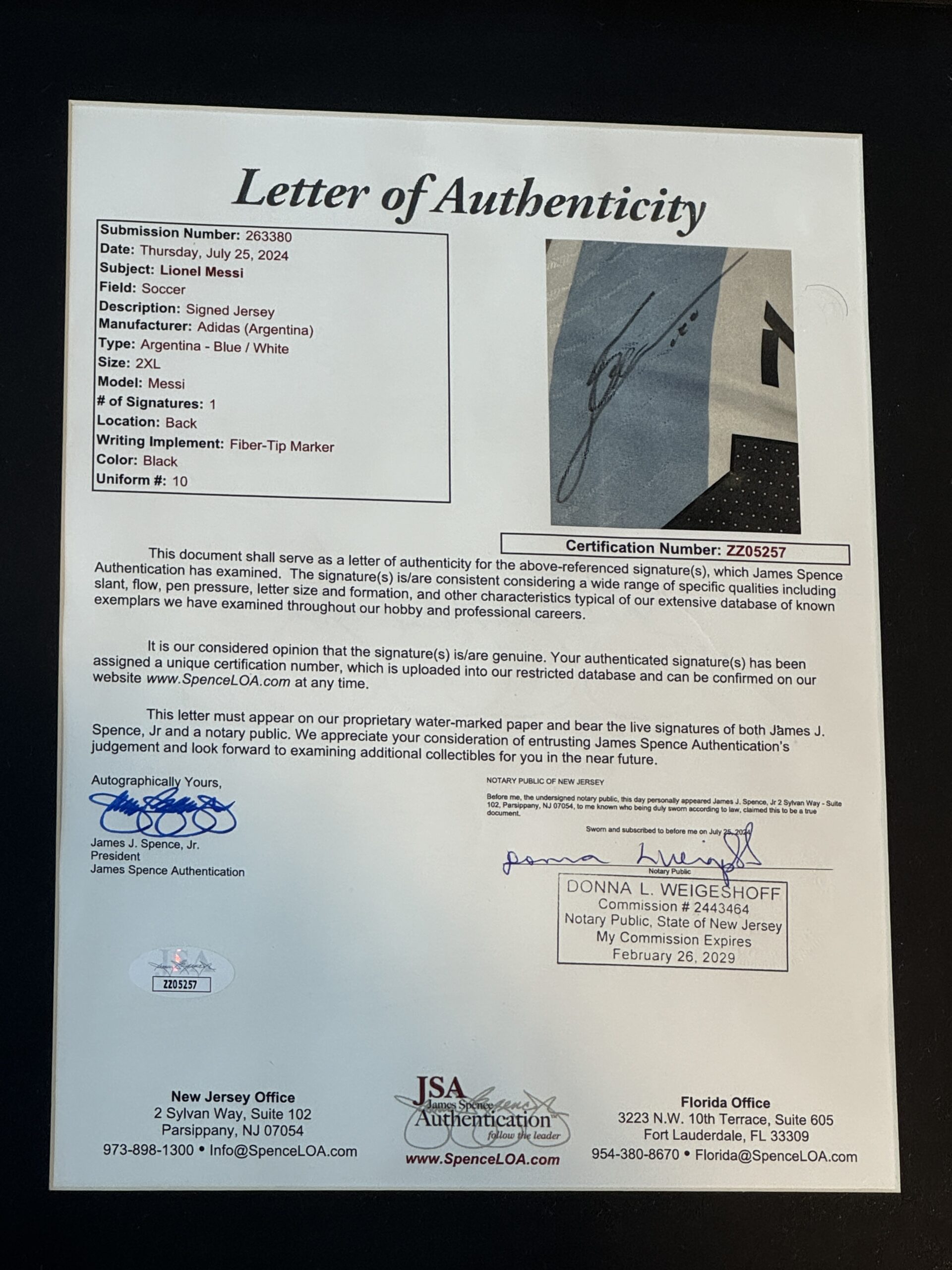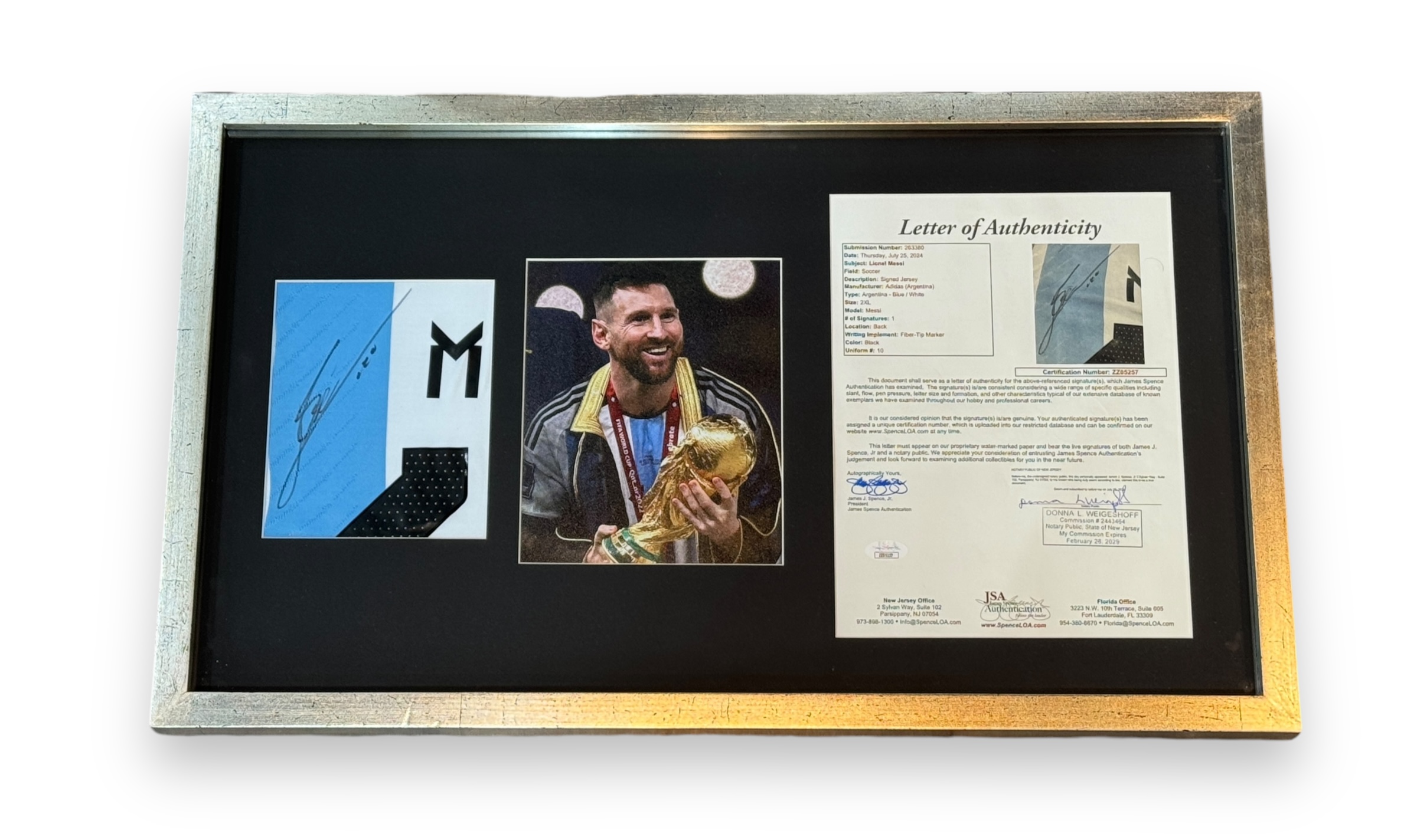 Cuadro con pedazo de Jersey usado en juego y firmado por Lionel Messi