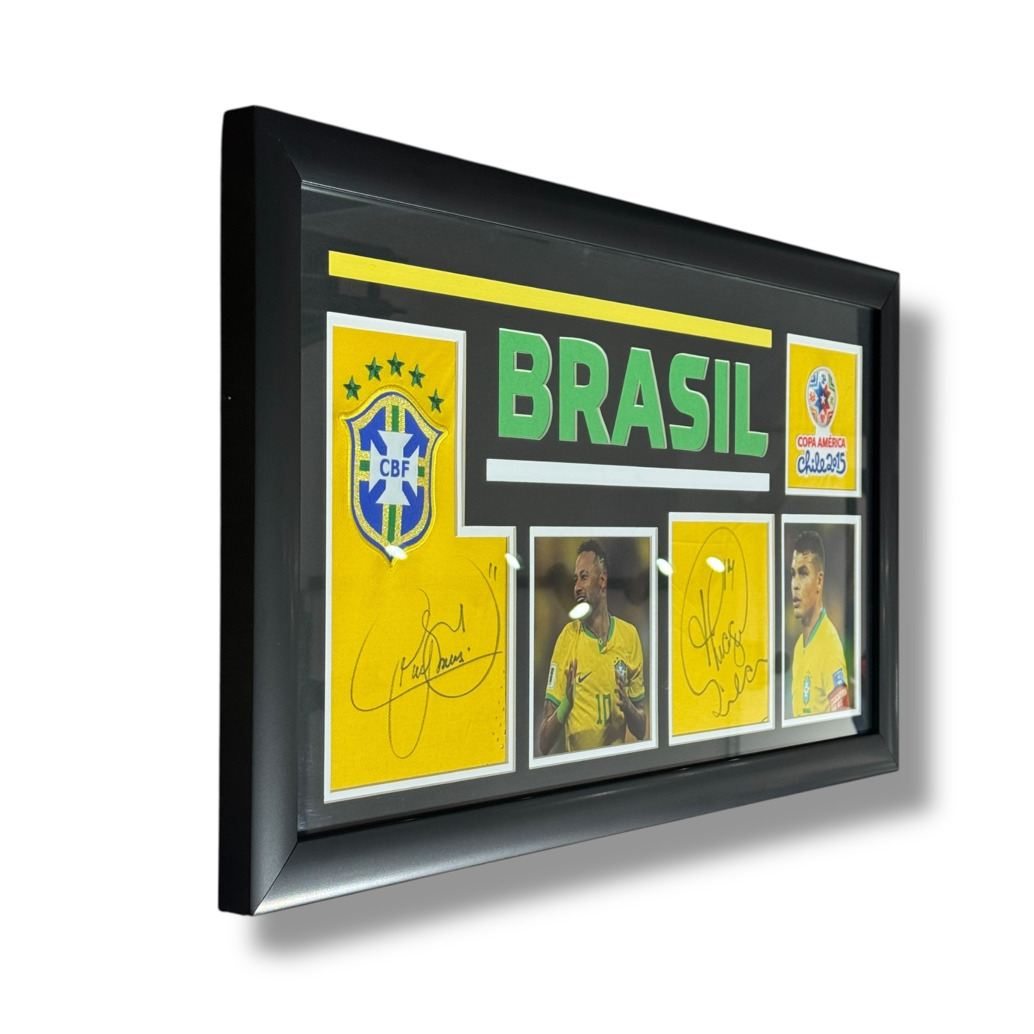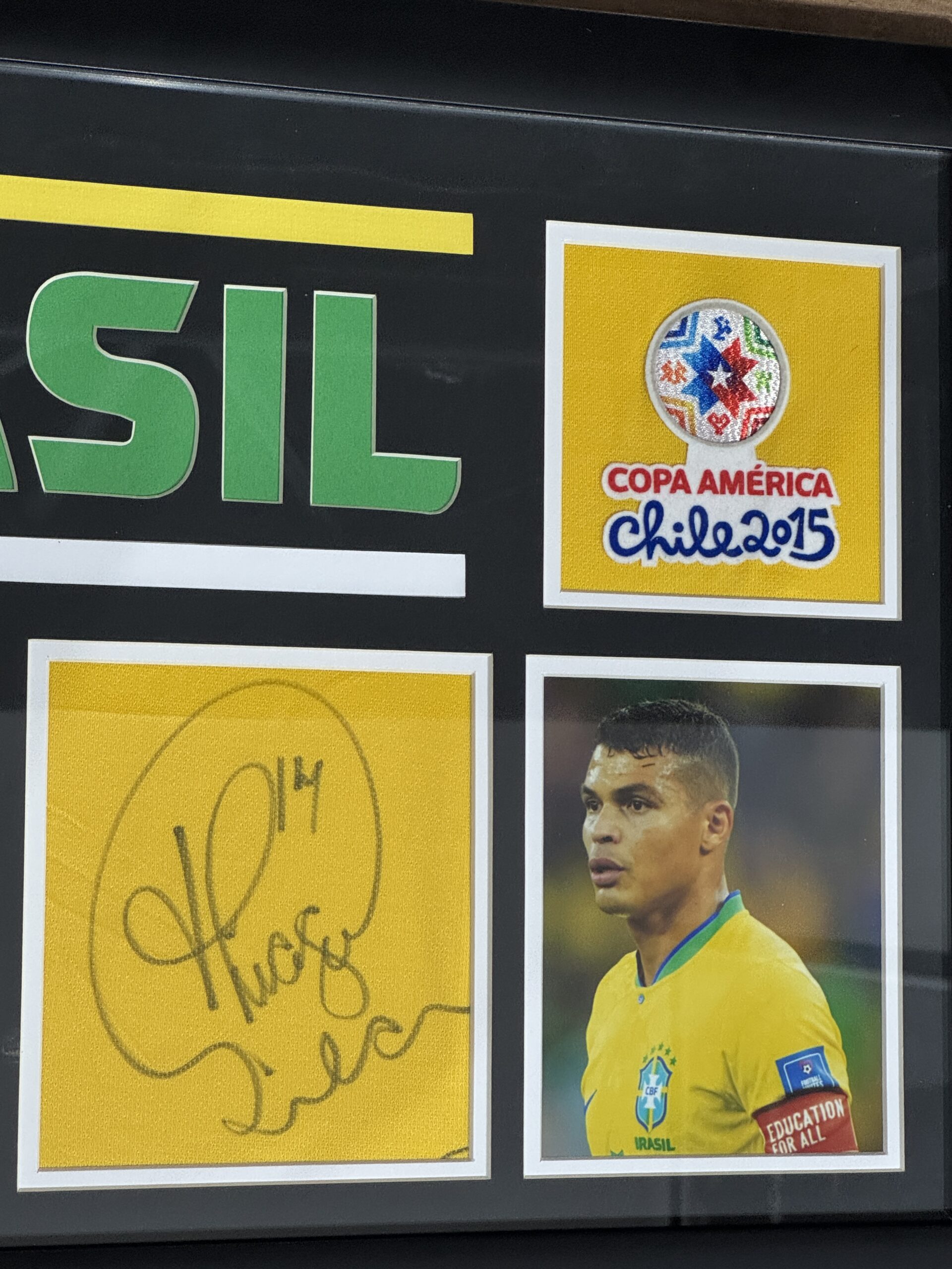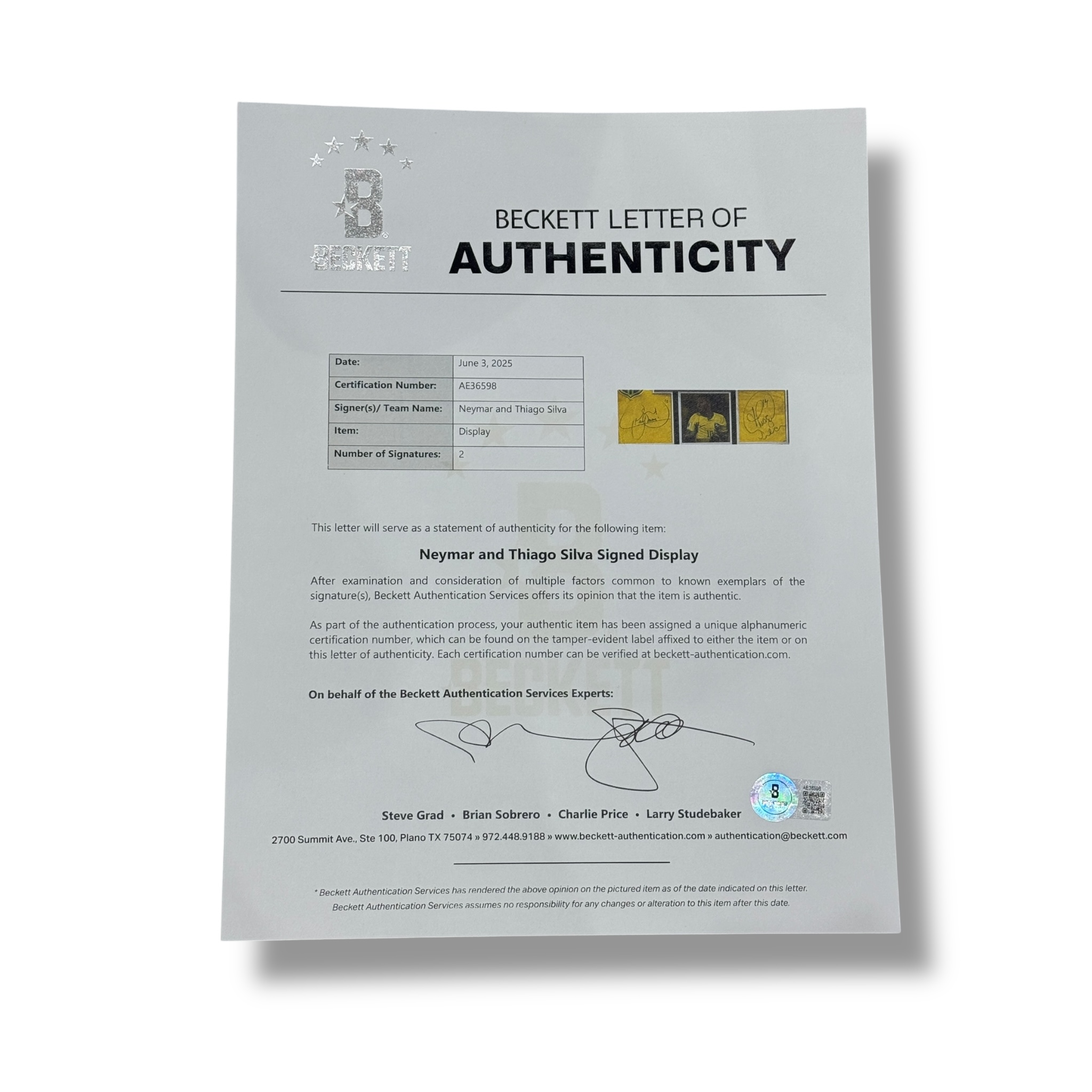 Cuadro de Jersey usado en juego y firmado por Neymar y Thiago Silva
