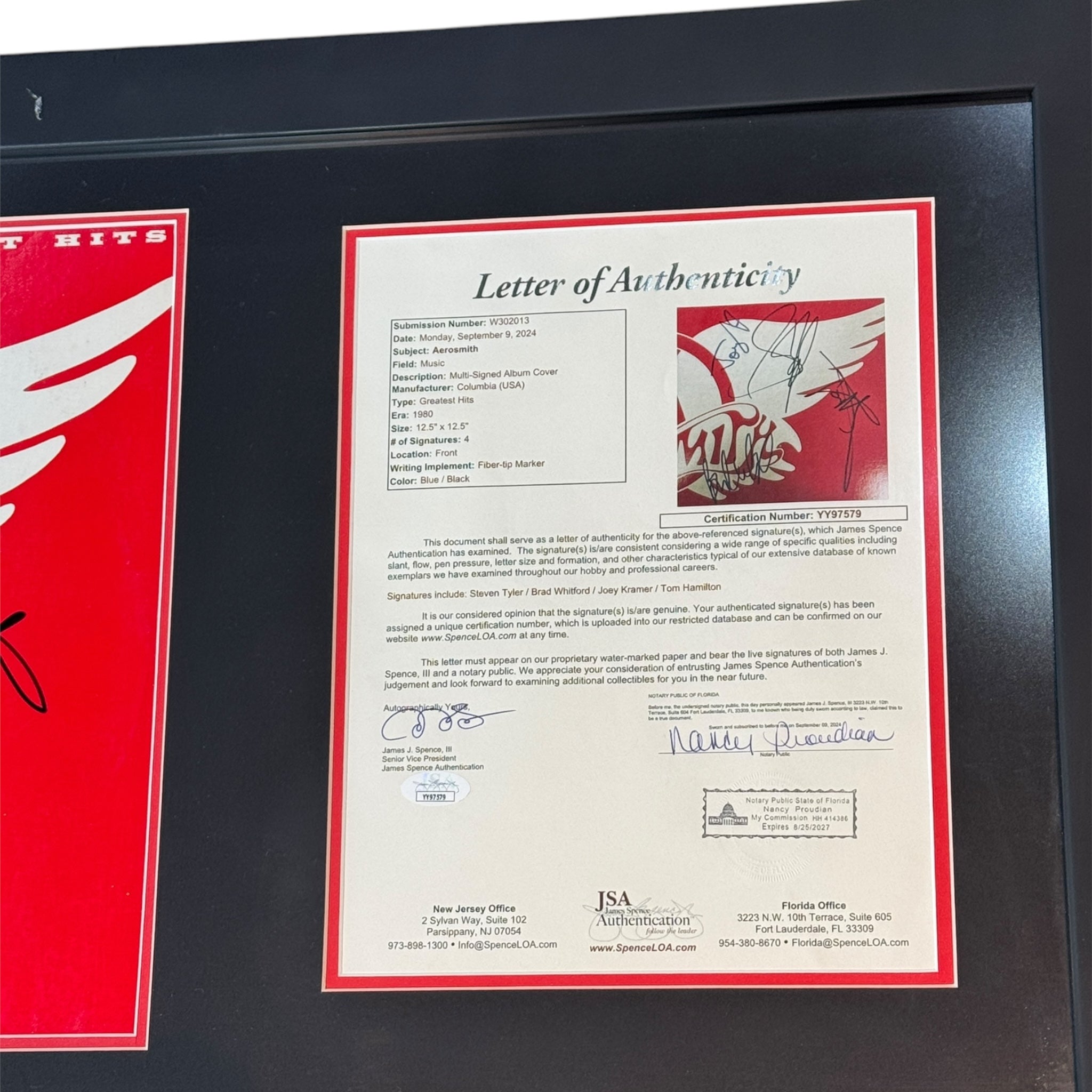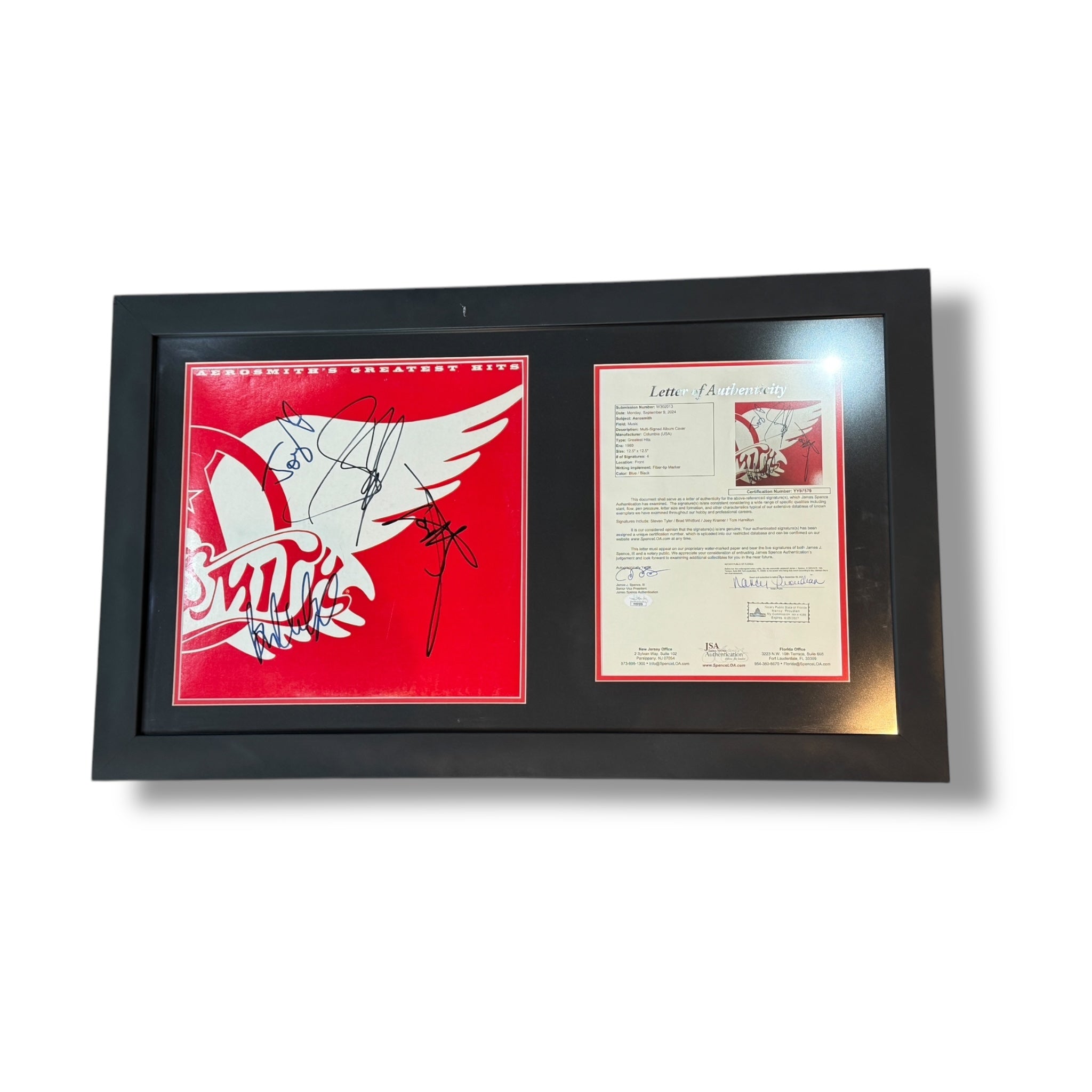 Disco LP autografiado por los integrante del grupo Aerosmith.
