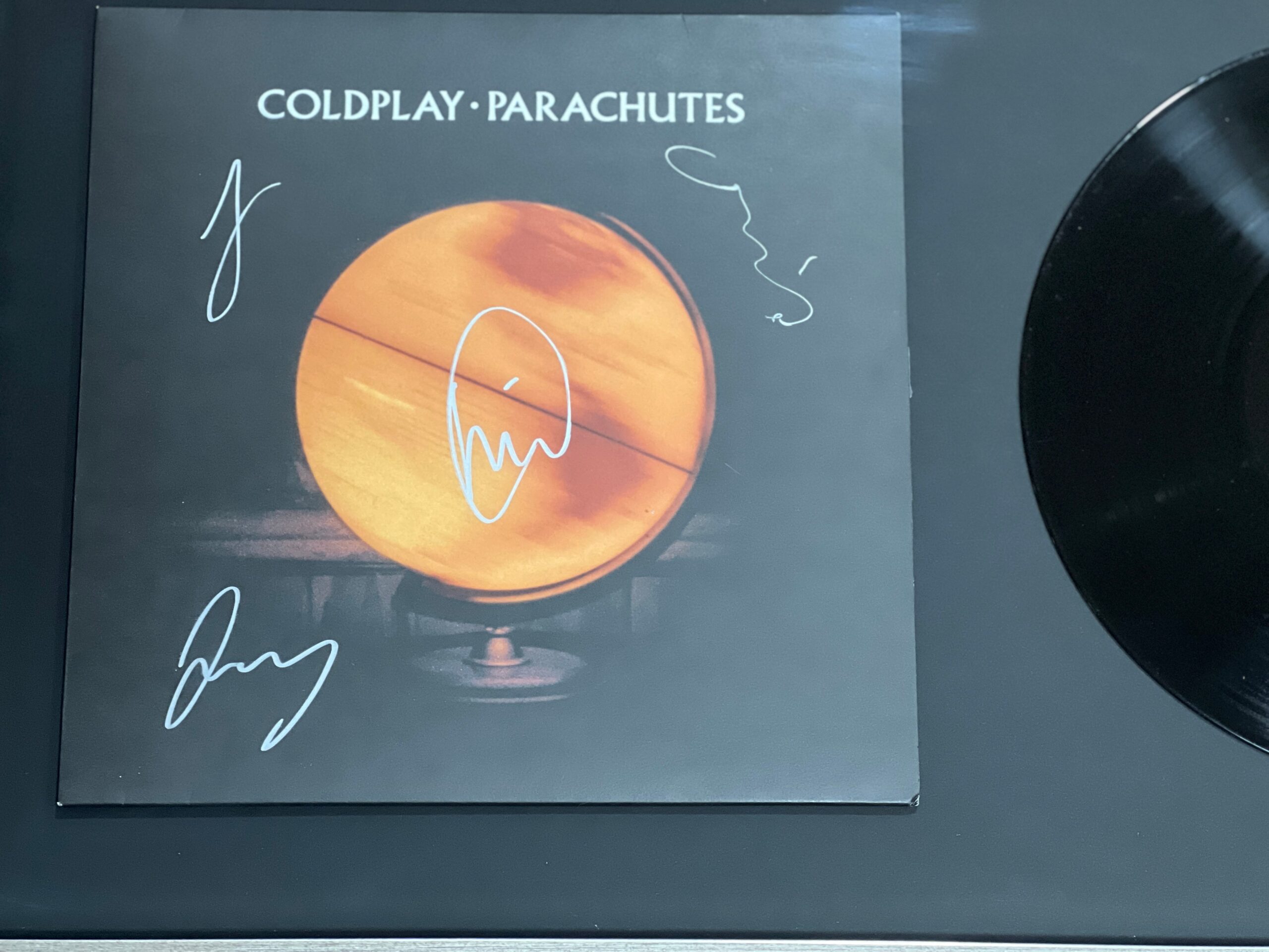 Disco LP autografiado por los integrantes del grupo Coldplay CHRIS MARTIN, GUY BERRYMAN, WILL CHAMPION, JON BUCKLAND