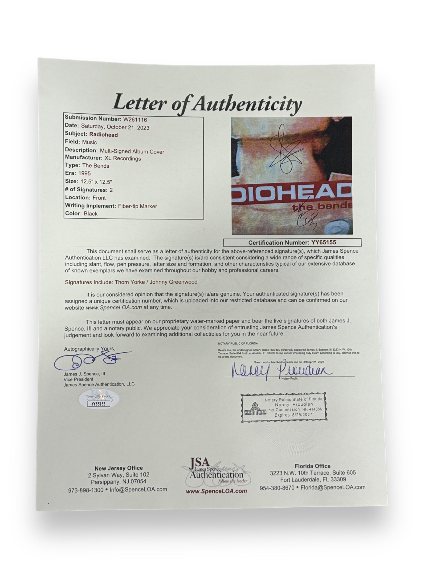 Disco Lp autografiado por los integrantes del grupo radiohead, Thom Yorke