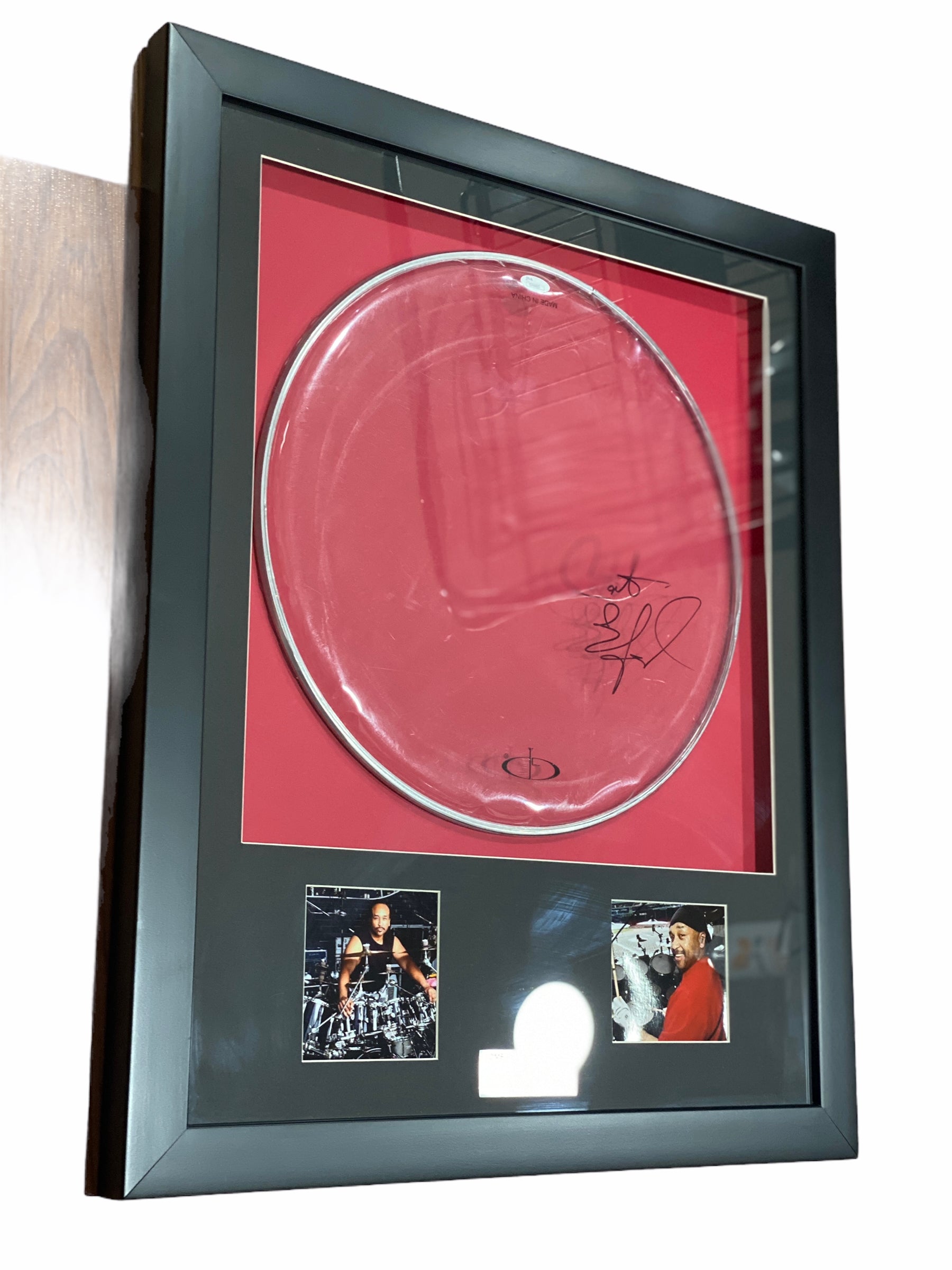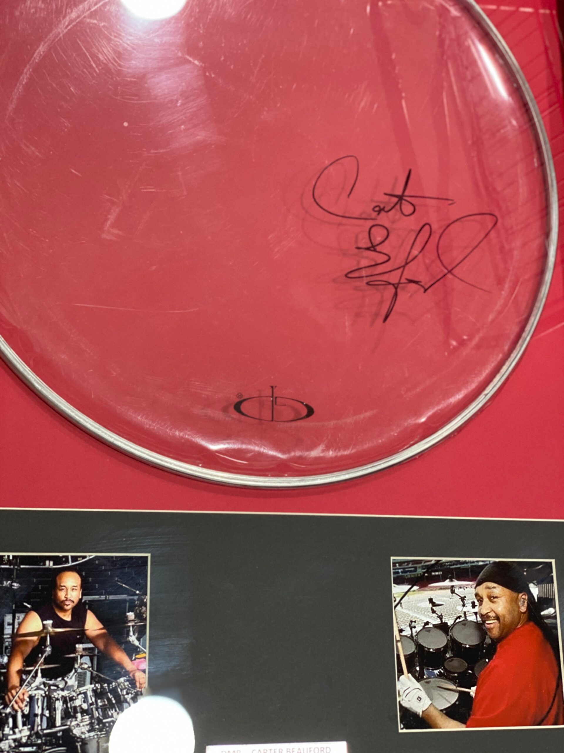Drumhead 15 ´´firmado por Carter Beauford, de Dave Matthews Band.