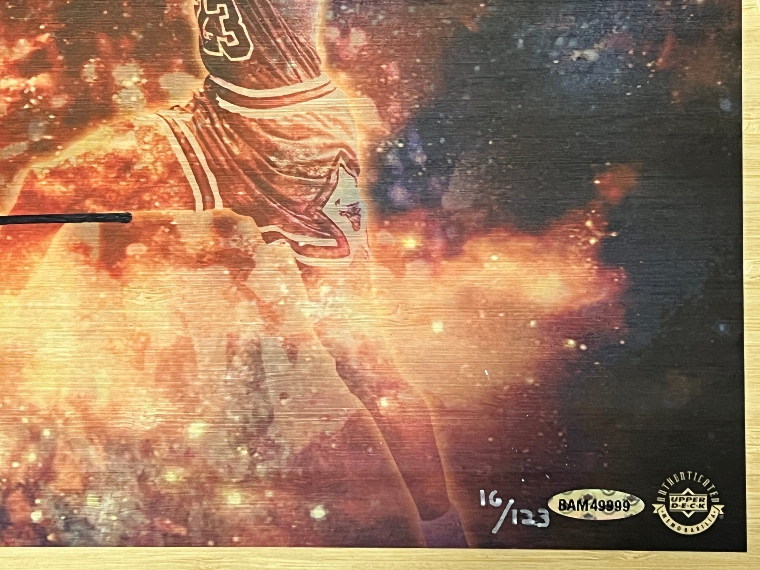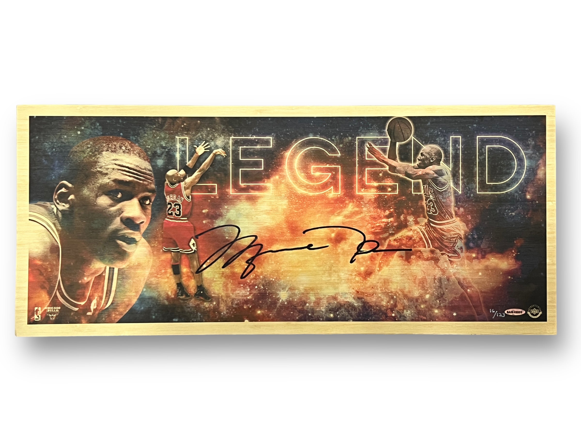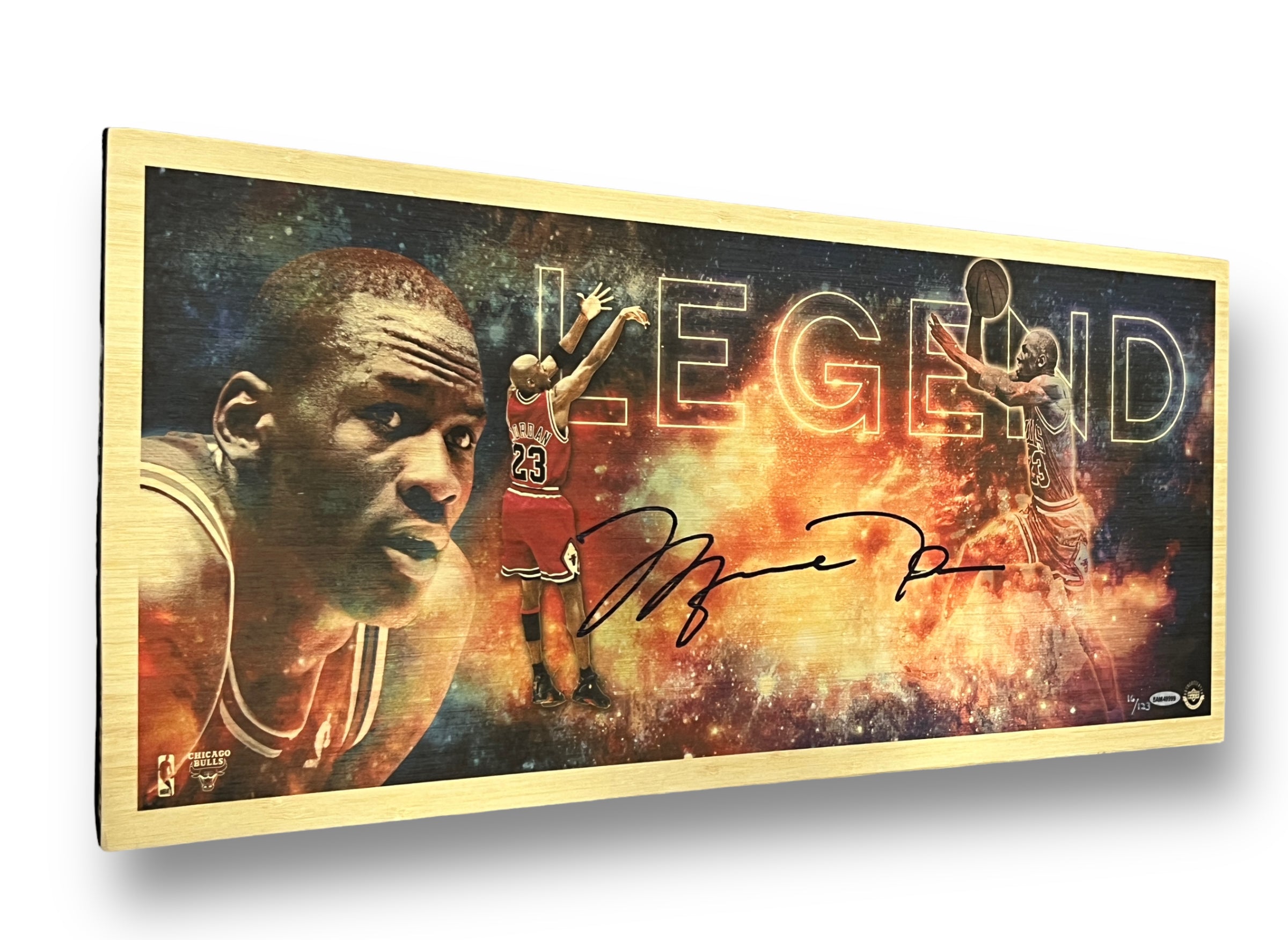 Fotografia en bamboo autografiada por el jugador, Michael Jordan. La maxima leyenda del Basketball.