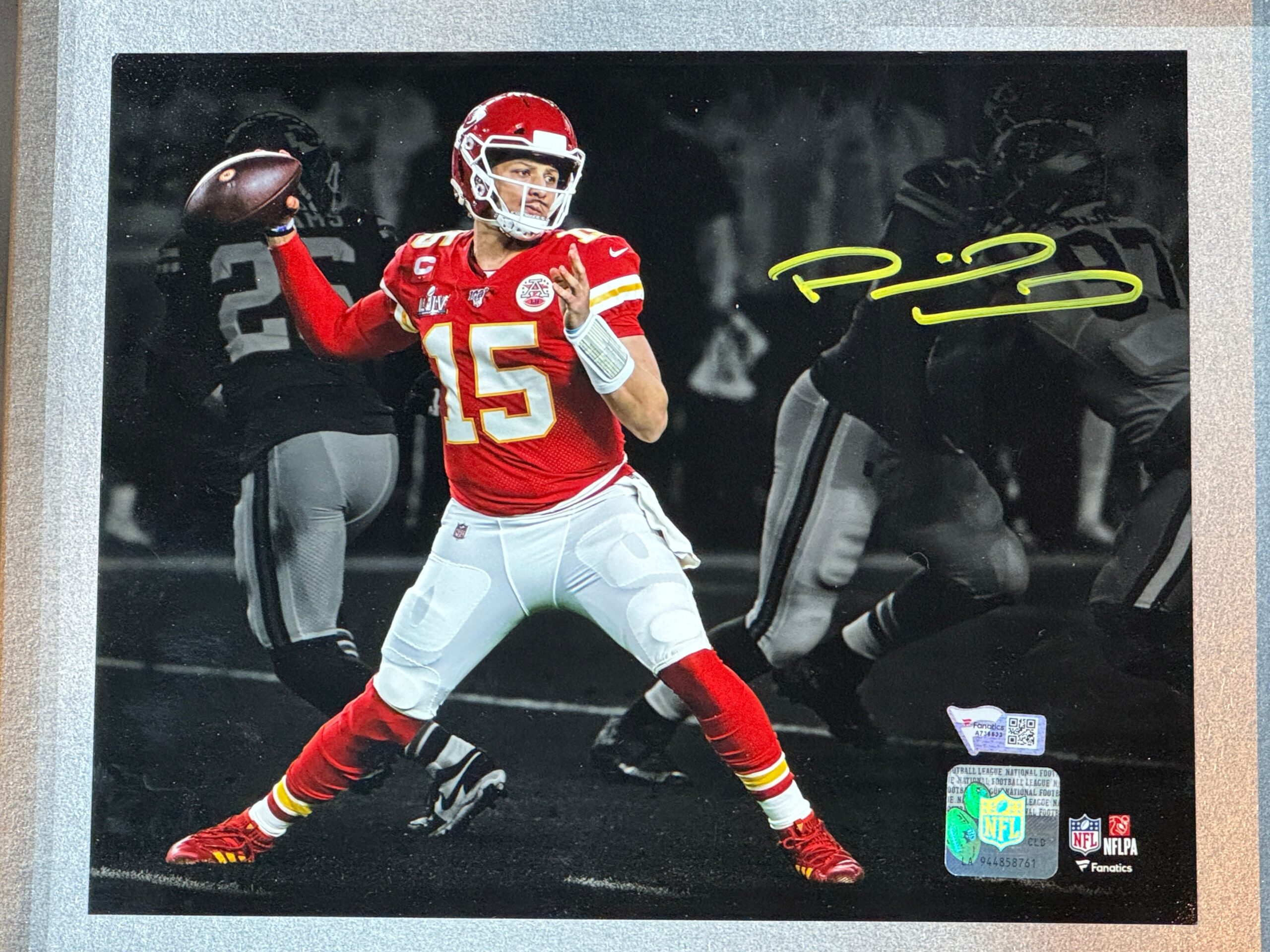 Fotografía enmarcada por el jugador de los Chiefs Patrick Mahomes