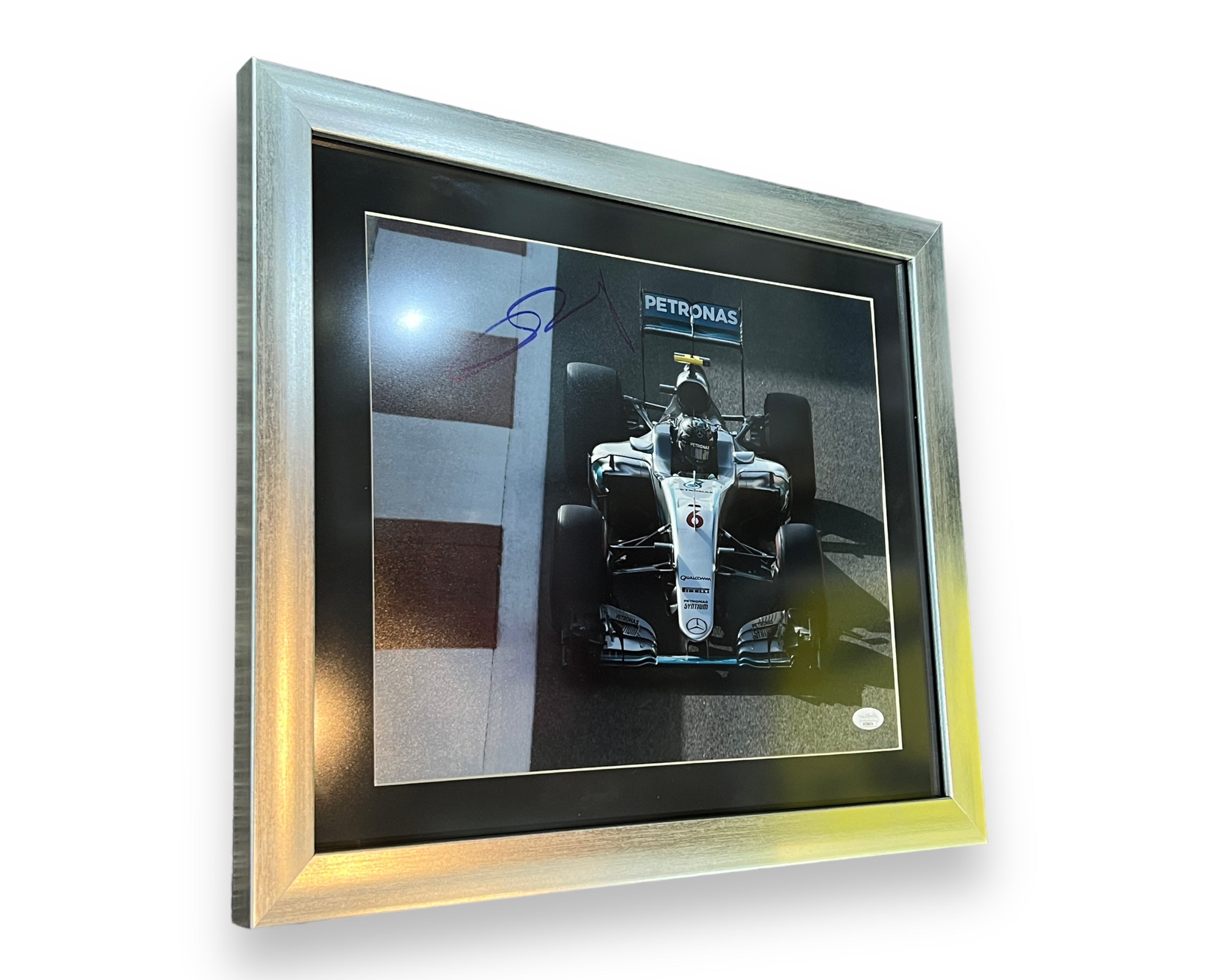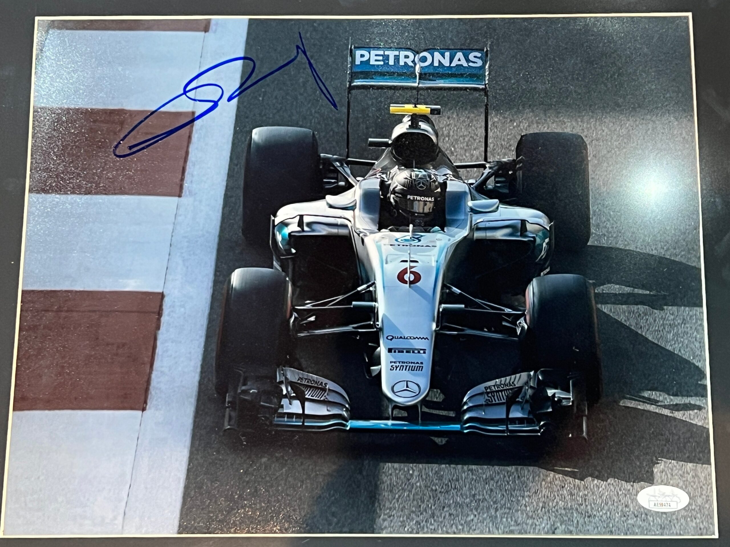 Foto 8X10 pulgadas enmarcada y autografiada por el piloto de F1, Nico Rosberg (Campeón del Mundo)