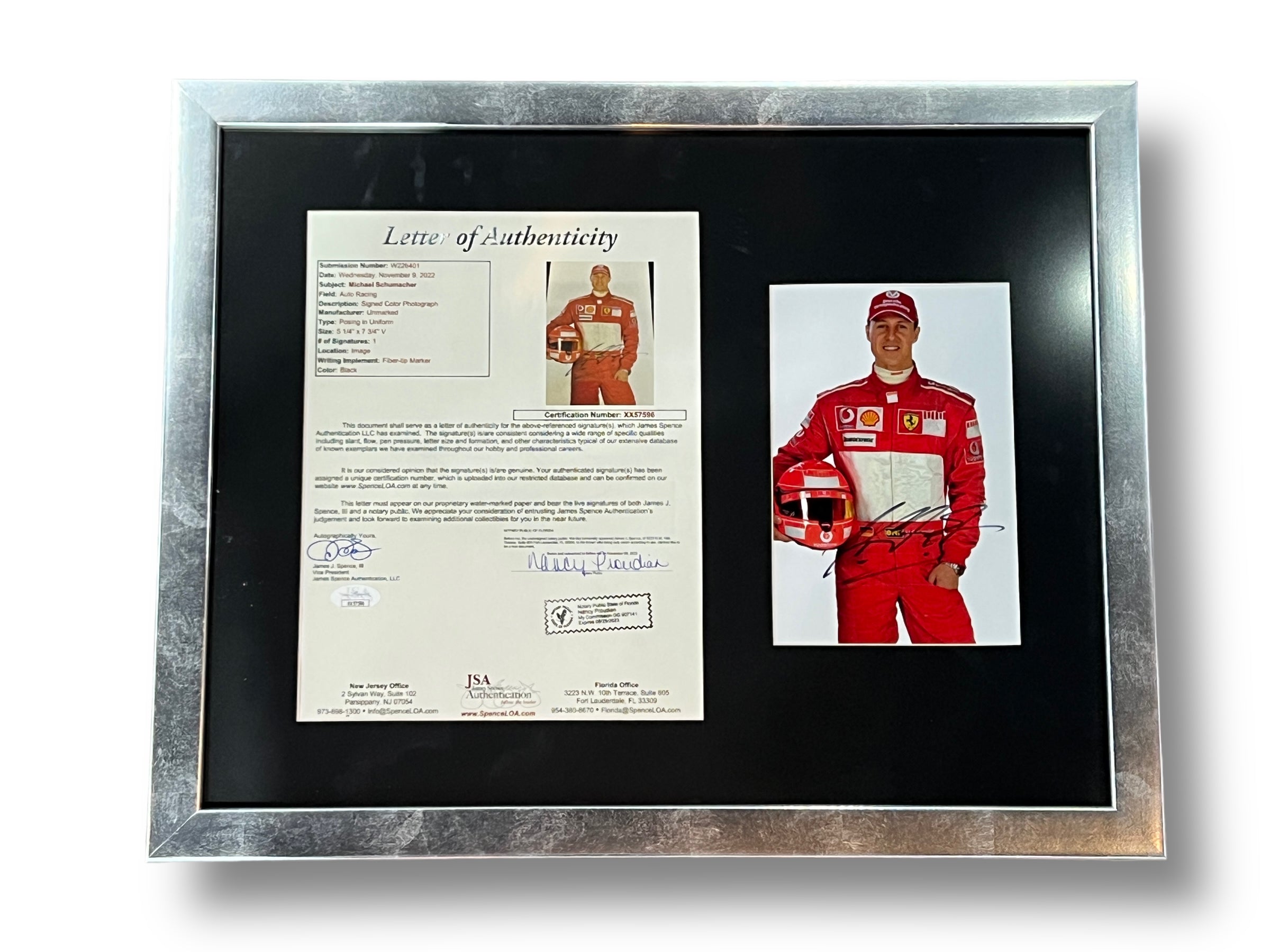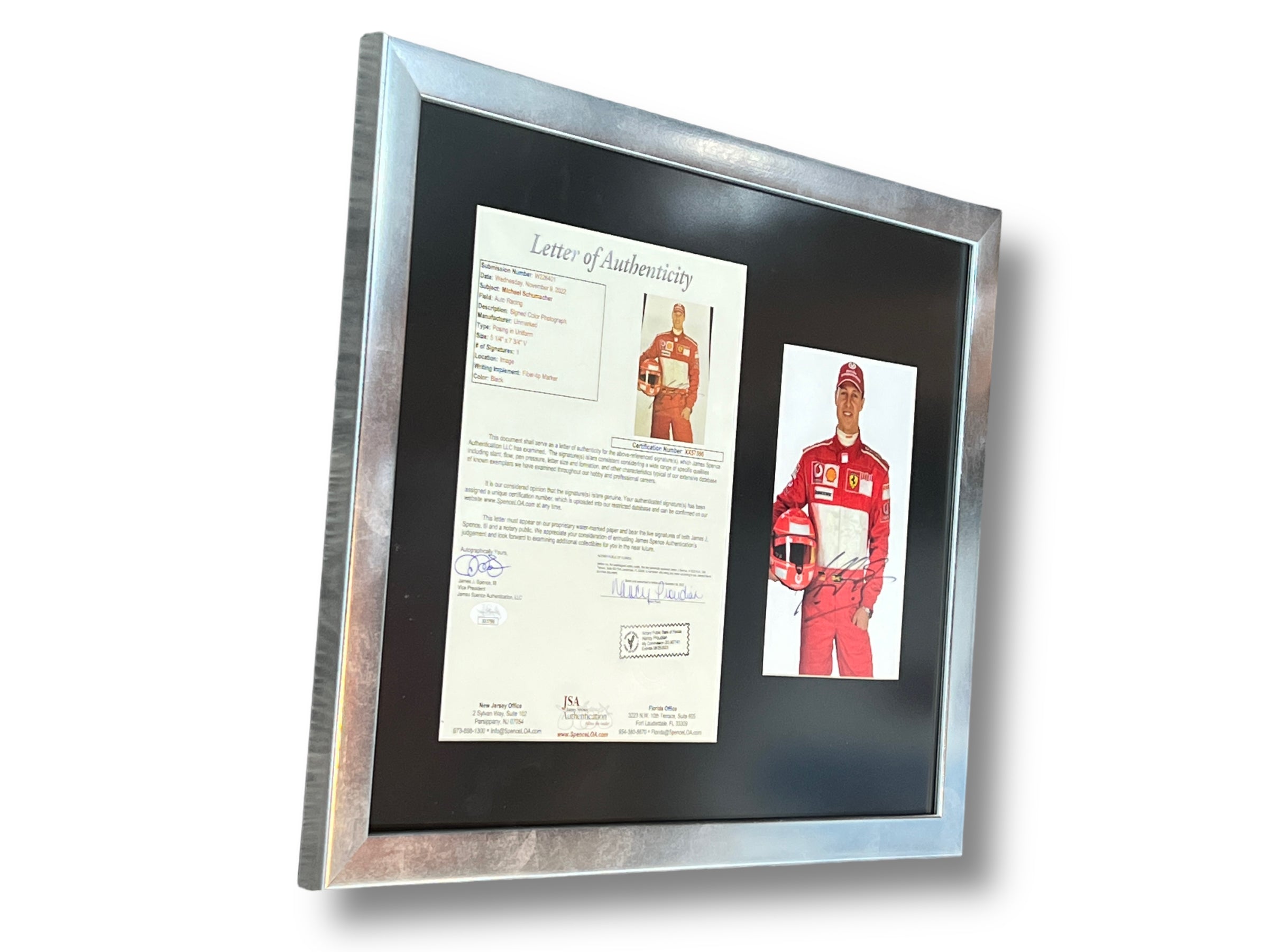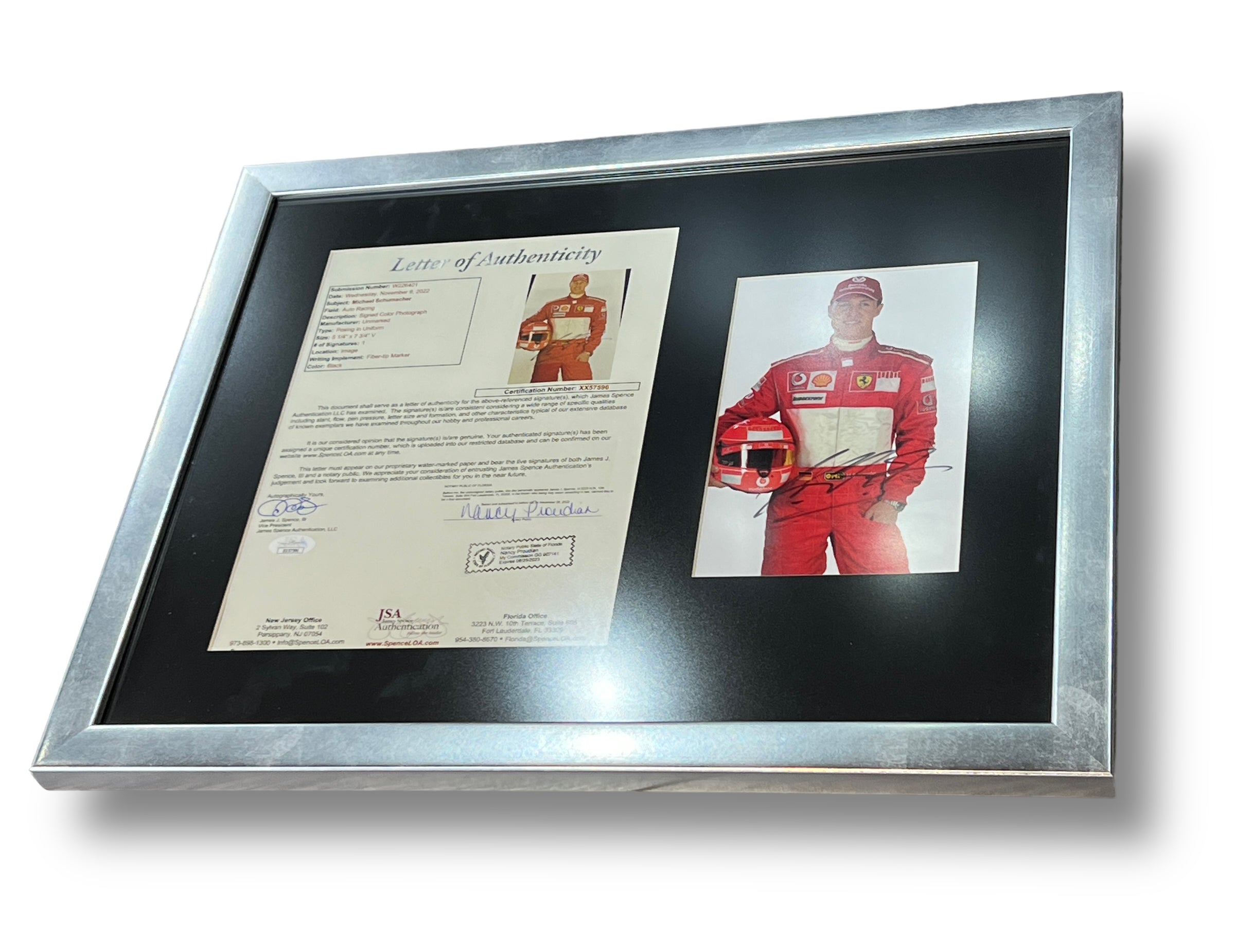 Foto enmarcada por el piloto de Ferrari Michael Schumacher