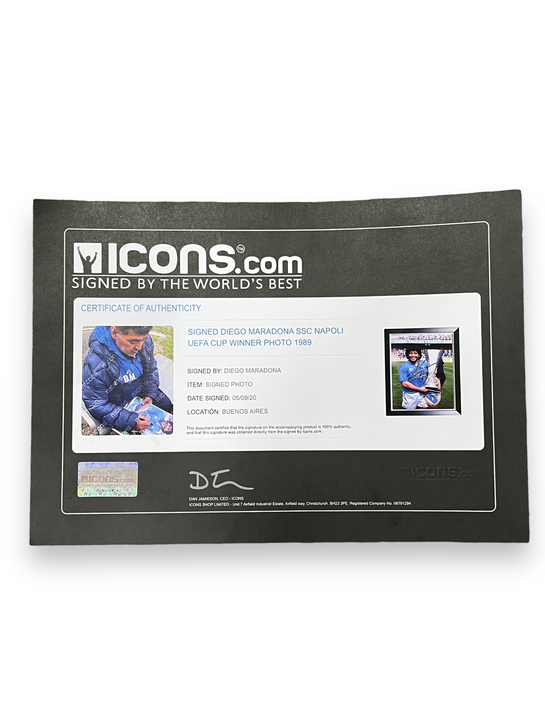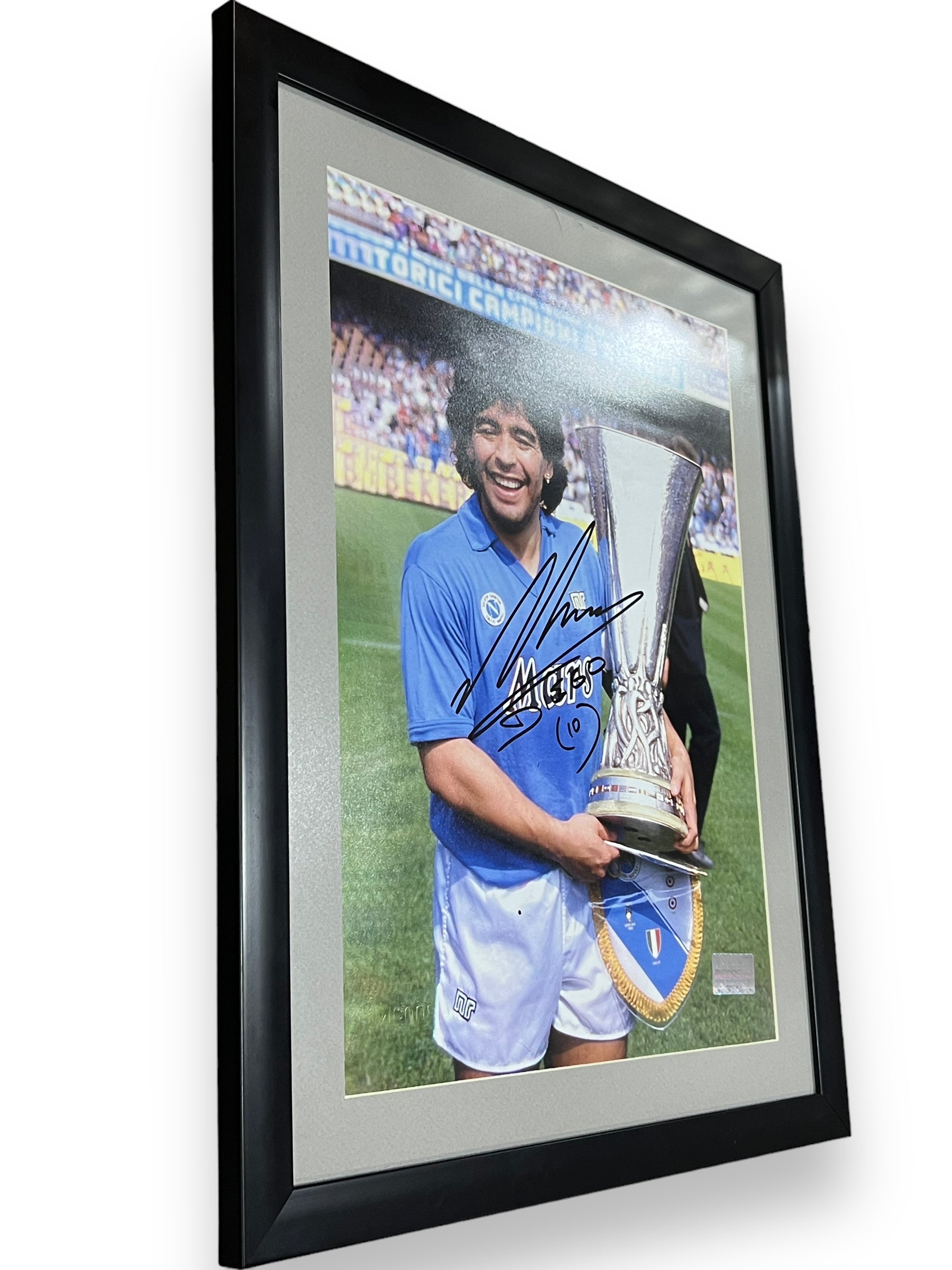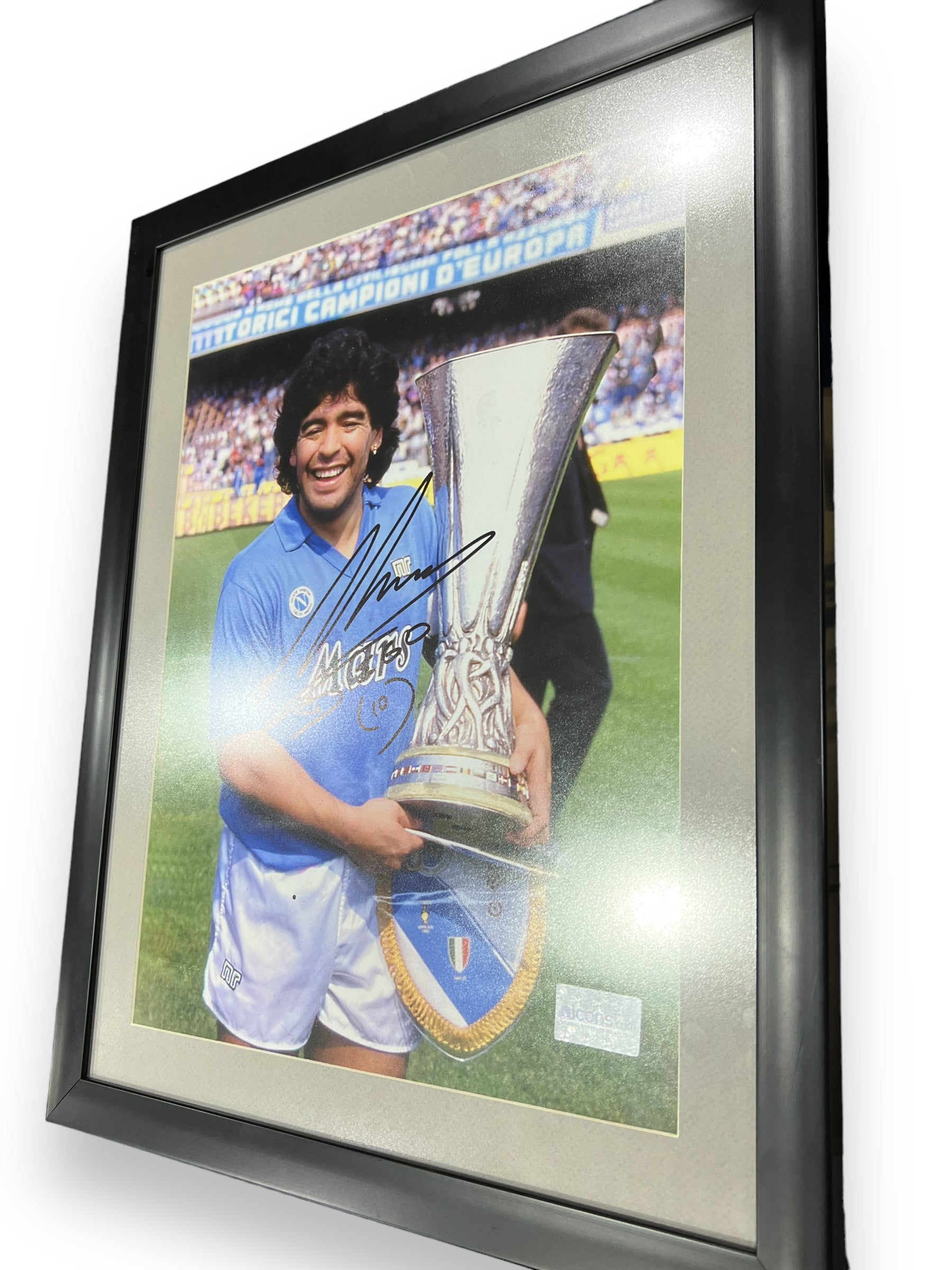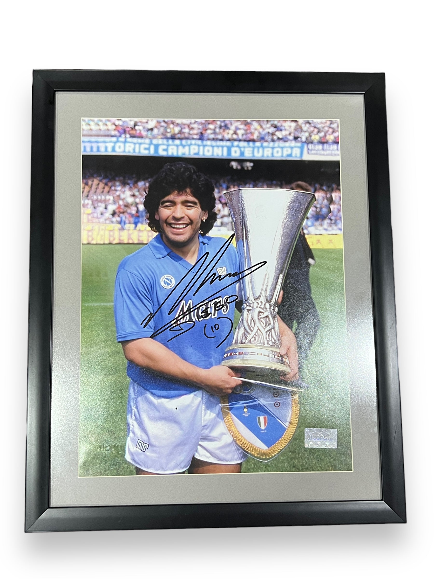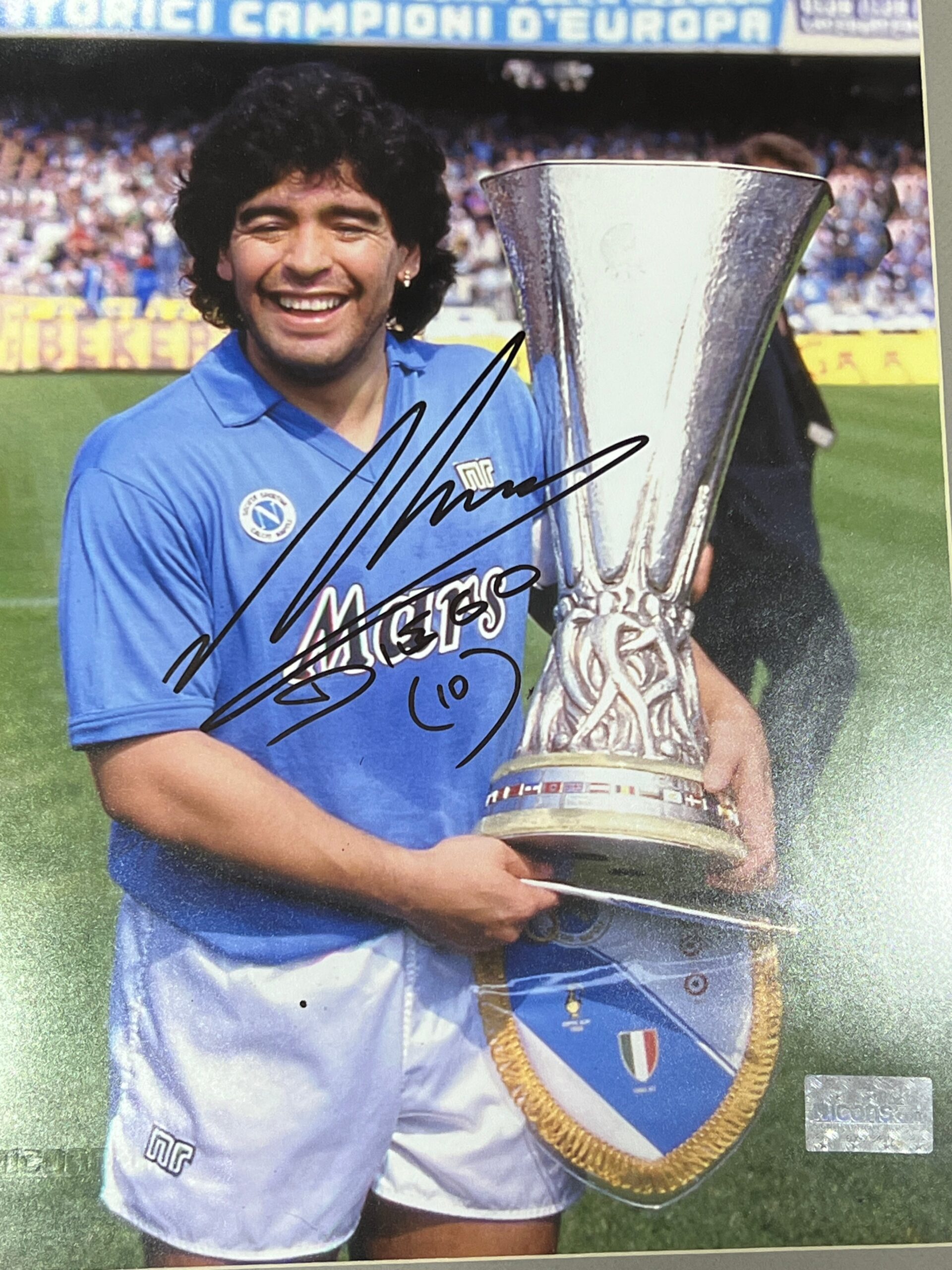 Foto enmarcada por el jugador del Napoli Diego Armando Maradona