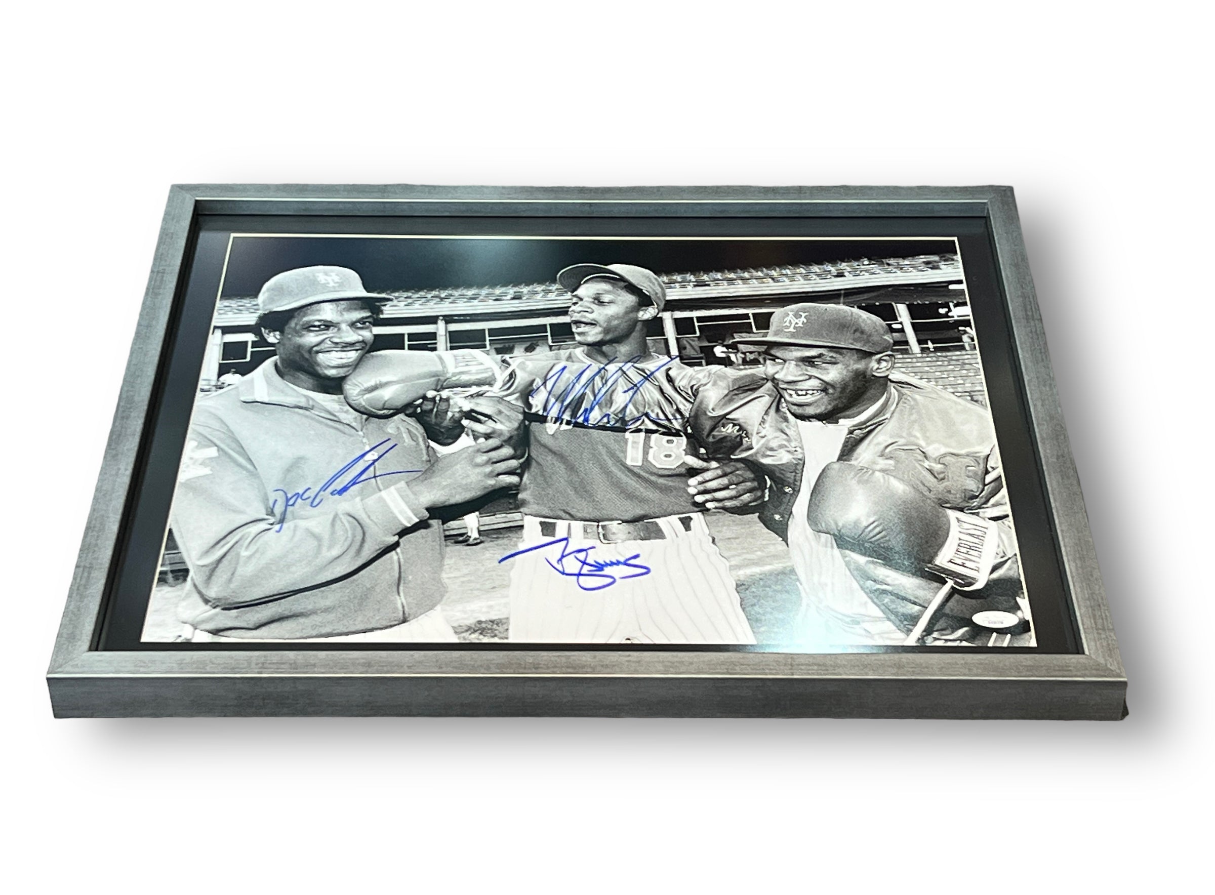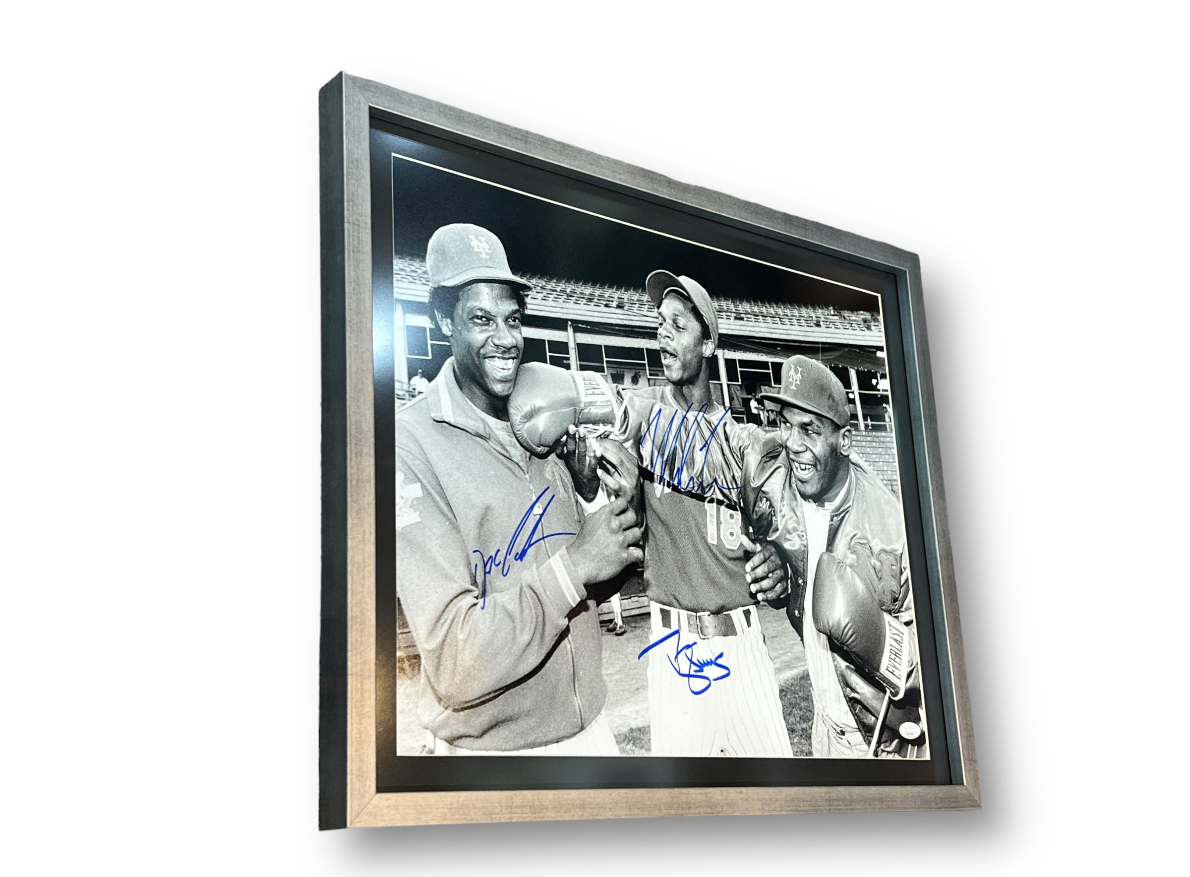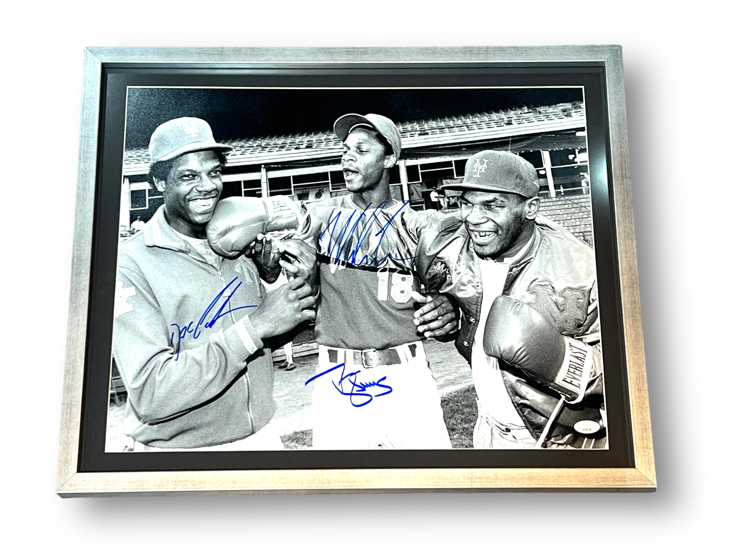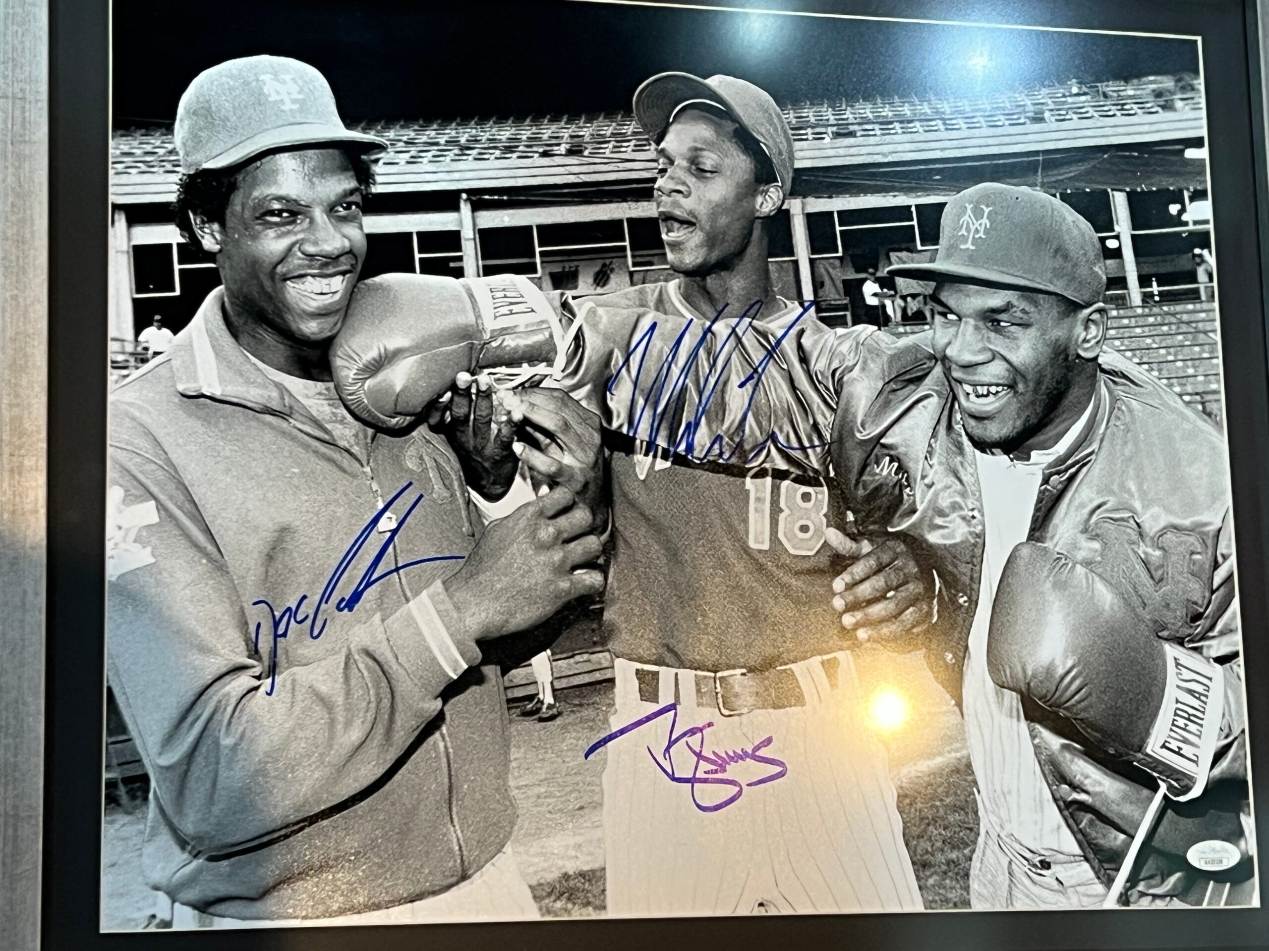 Fotografía autografiada por el polémico ex boxeador Mike Tyson – Darryl Strawberry – Doc Gooden. Estos dos últimos jugadores de Baseball y leyendas de la MLB.