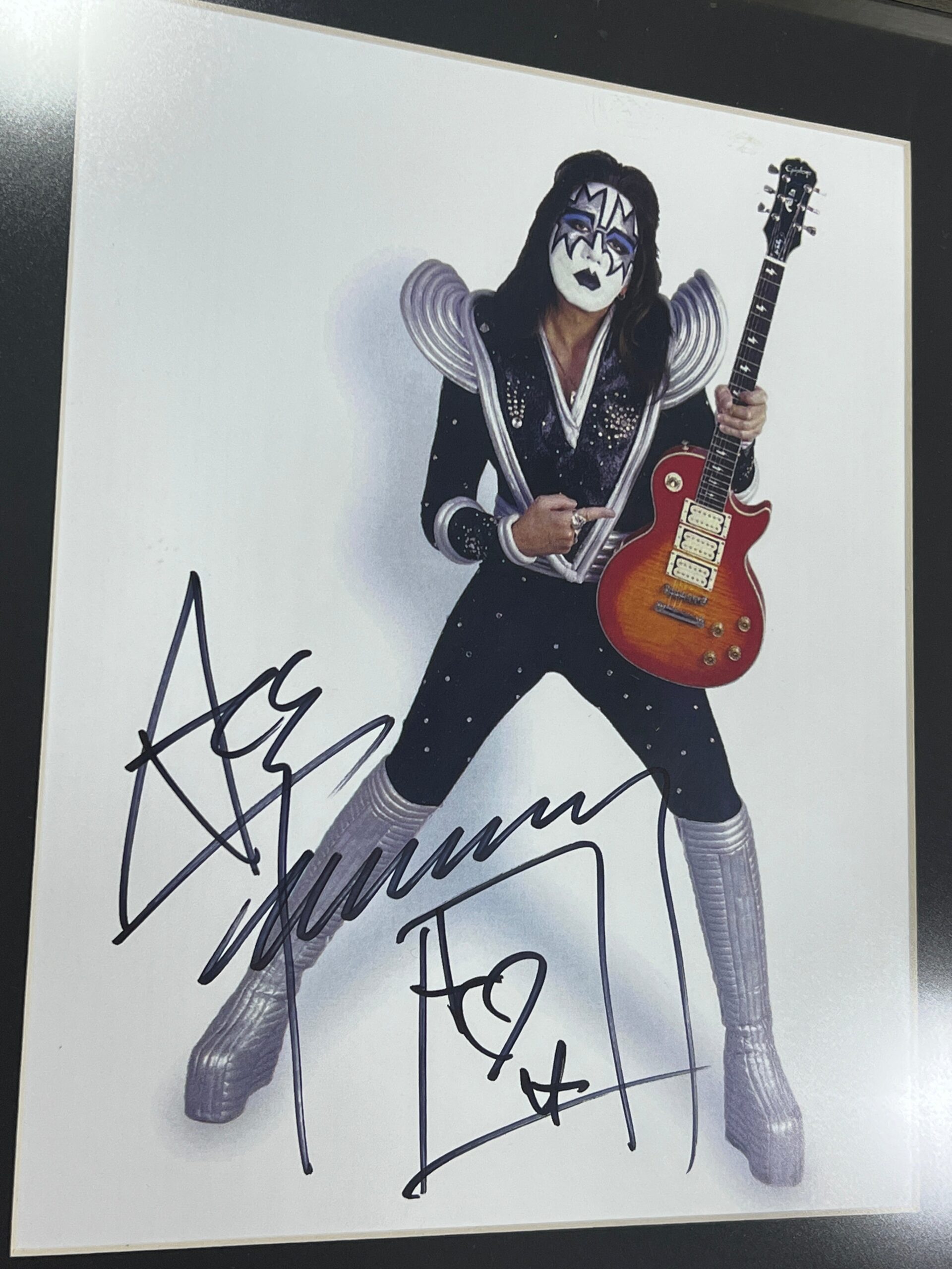 Foto 8X10 enmarcada por el cantante de kiss, Ace Frehley.