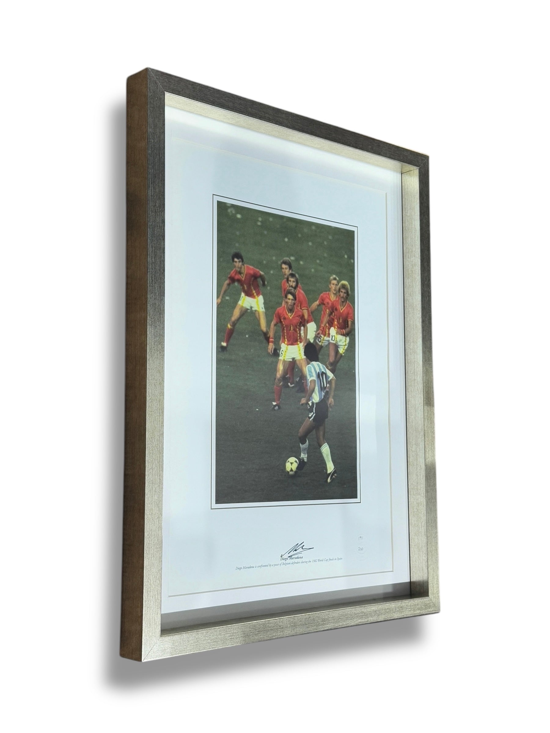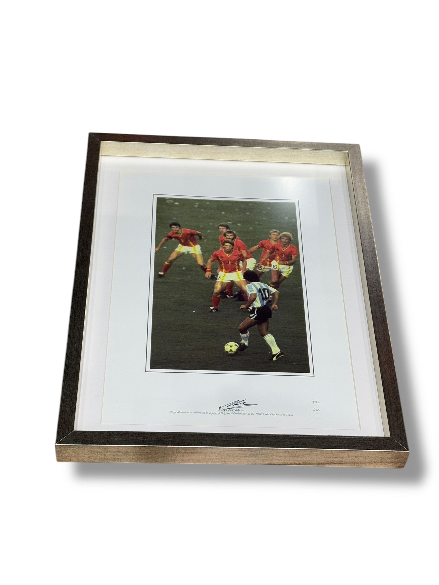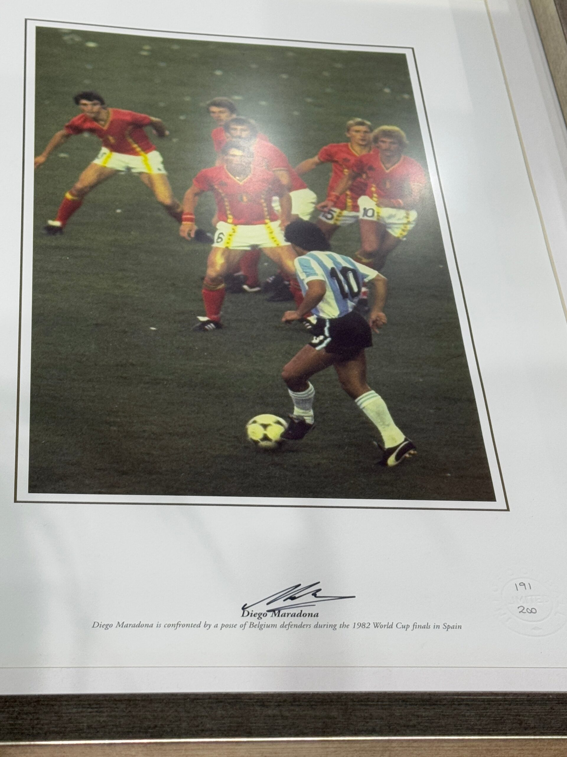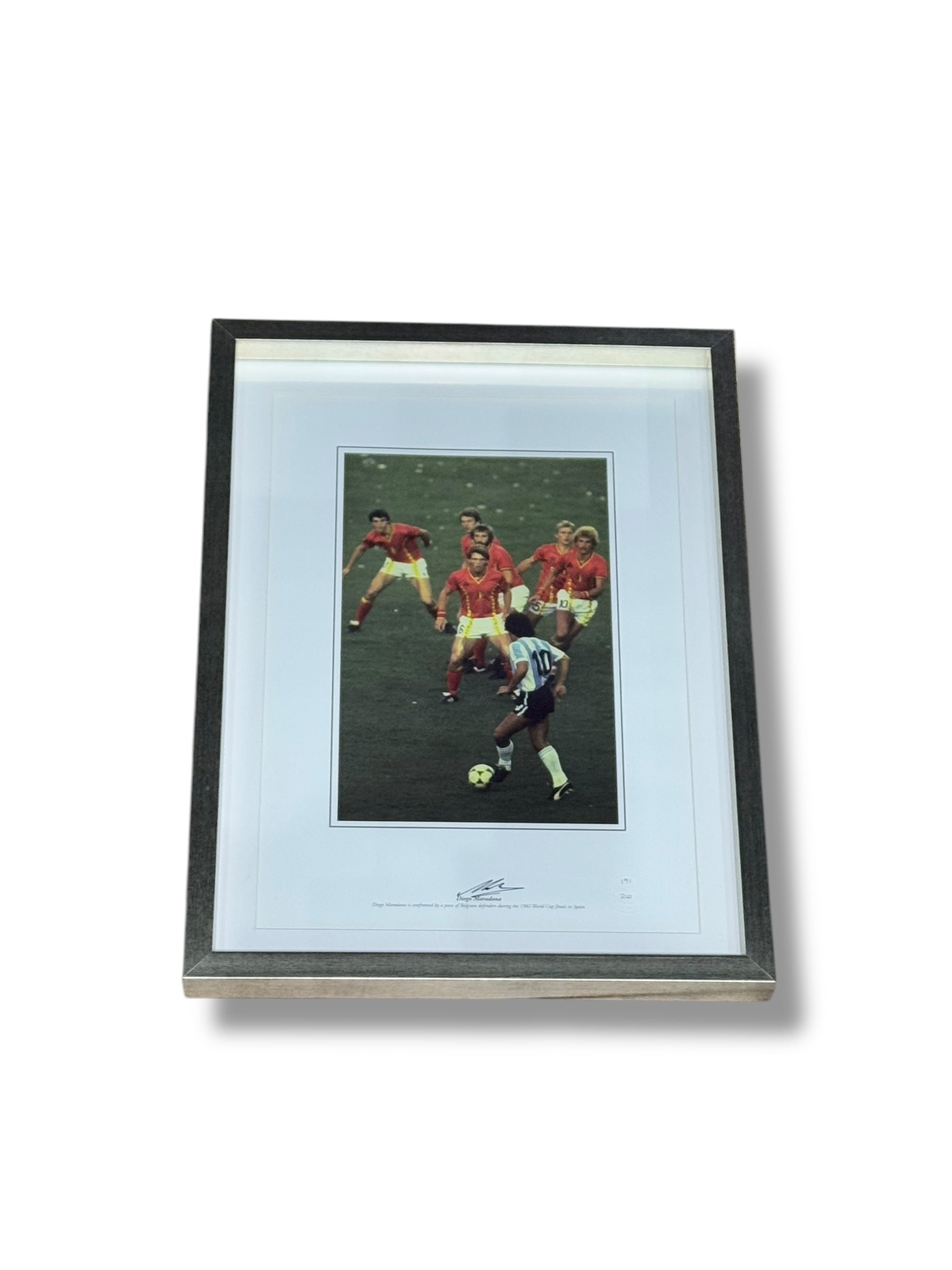 Foto enmarcada por el jugador leyenda de Argentina, Diego Armando Maradona.