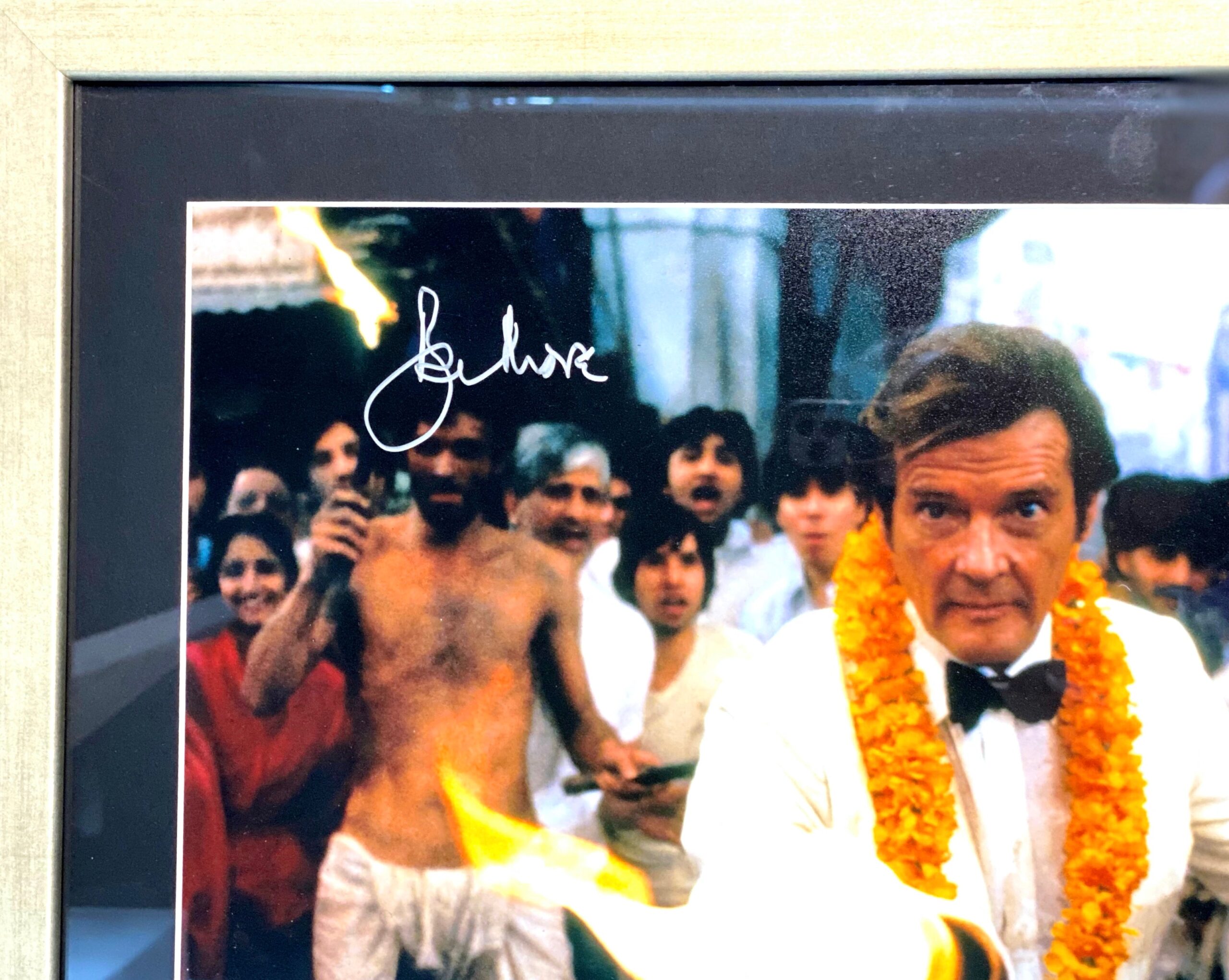 Fotografía de Roger Moore interpretando a “James Bond, Agente 007“, autografiada por Roger Moore.