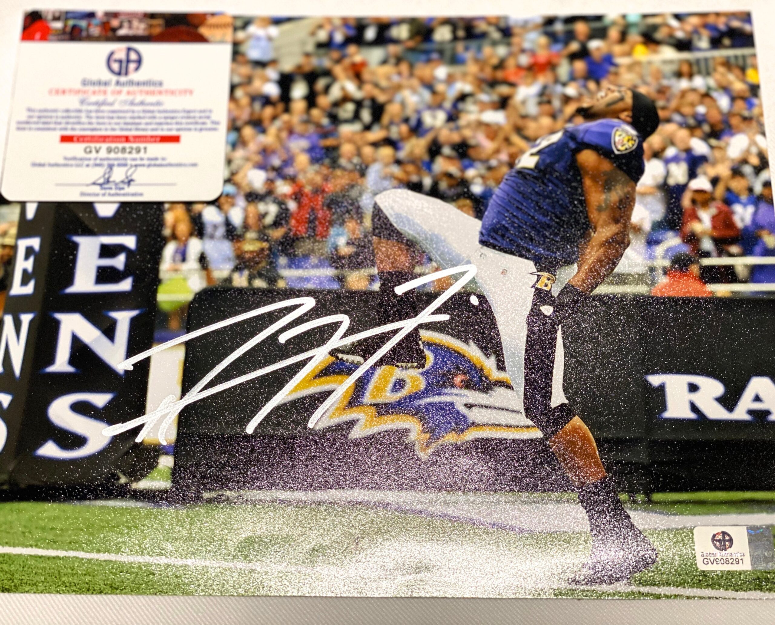 Fotografía autografiada por Ray Lewis de los Ravens.  “Ray” Lewis, Jr. es un exjugador de fútbol americano estadounidense que ocupó la posición de linebacker y que militó en las filas de los Baltimore Ravens de la National Football League.
