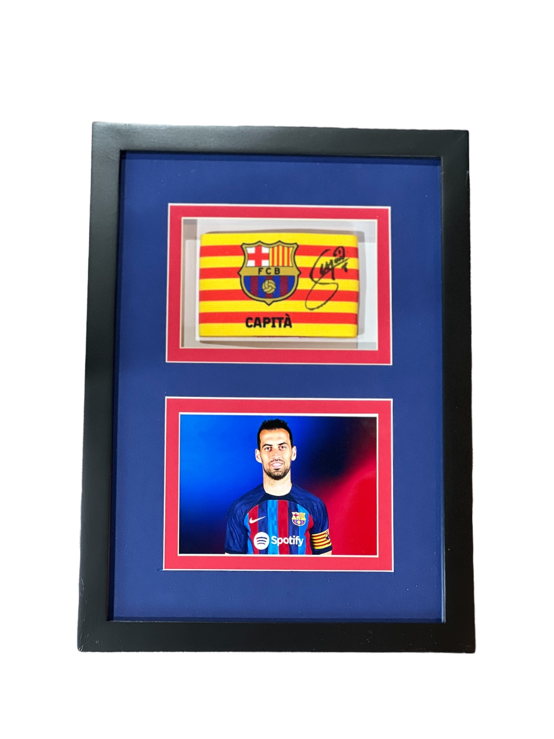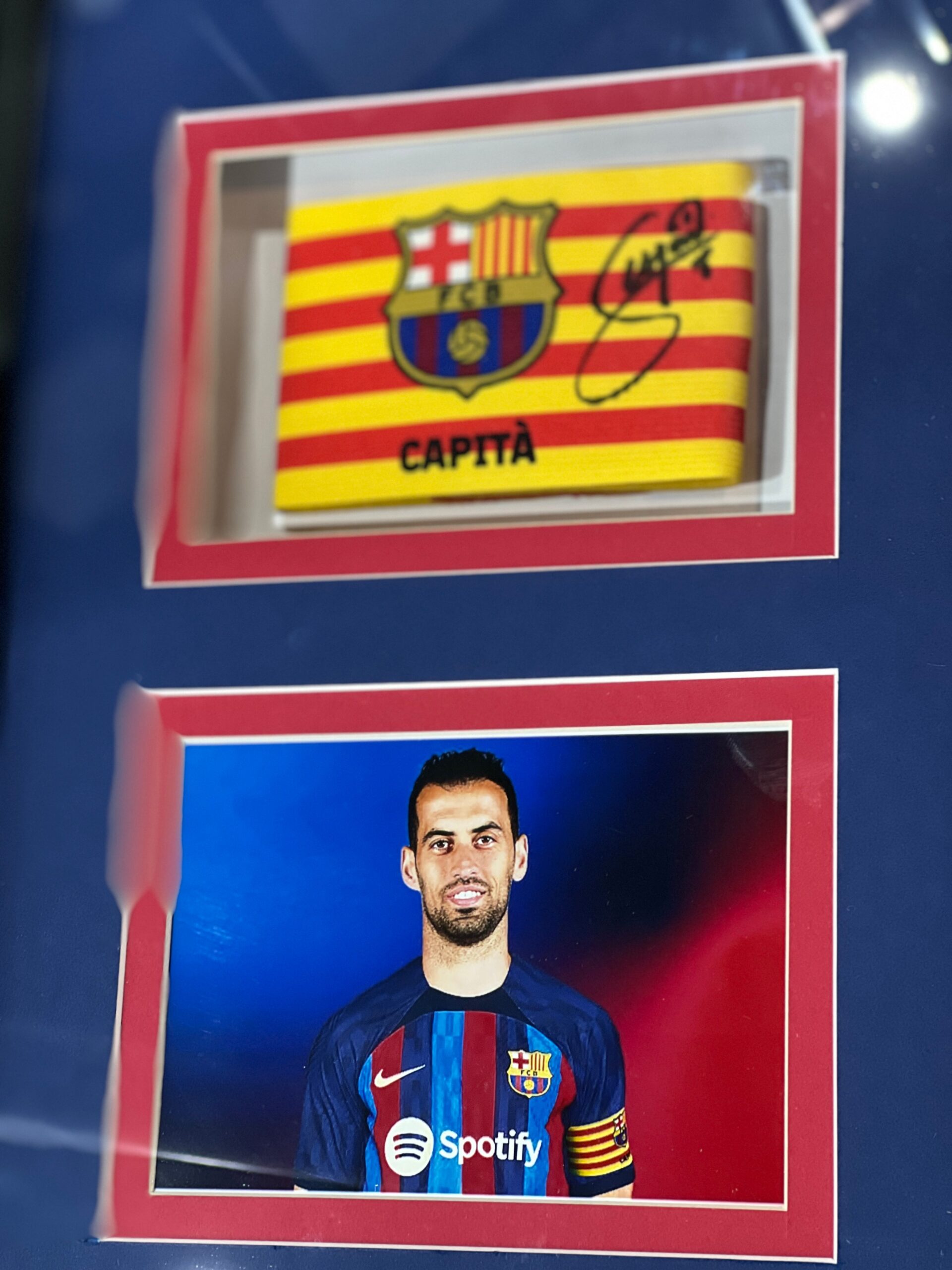 Gafete autografiado por el futbolista del Barcelona Sergio Busquets