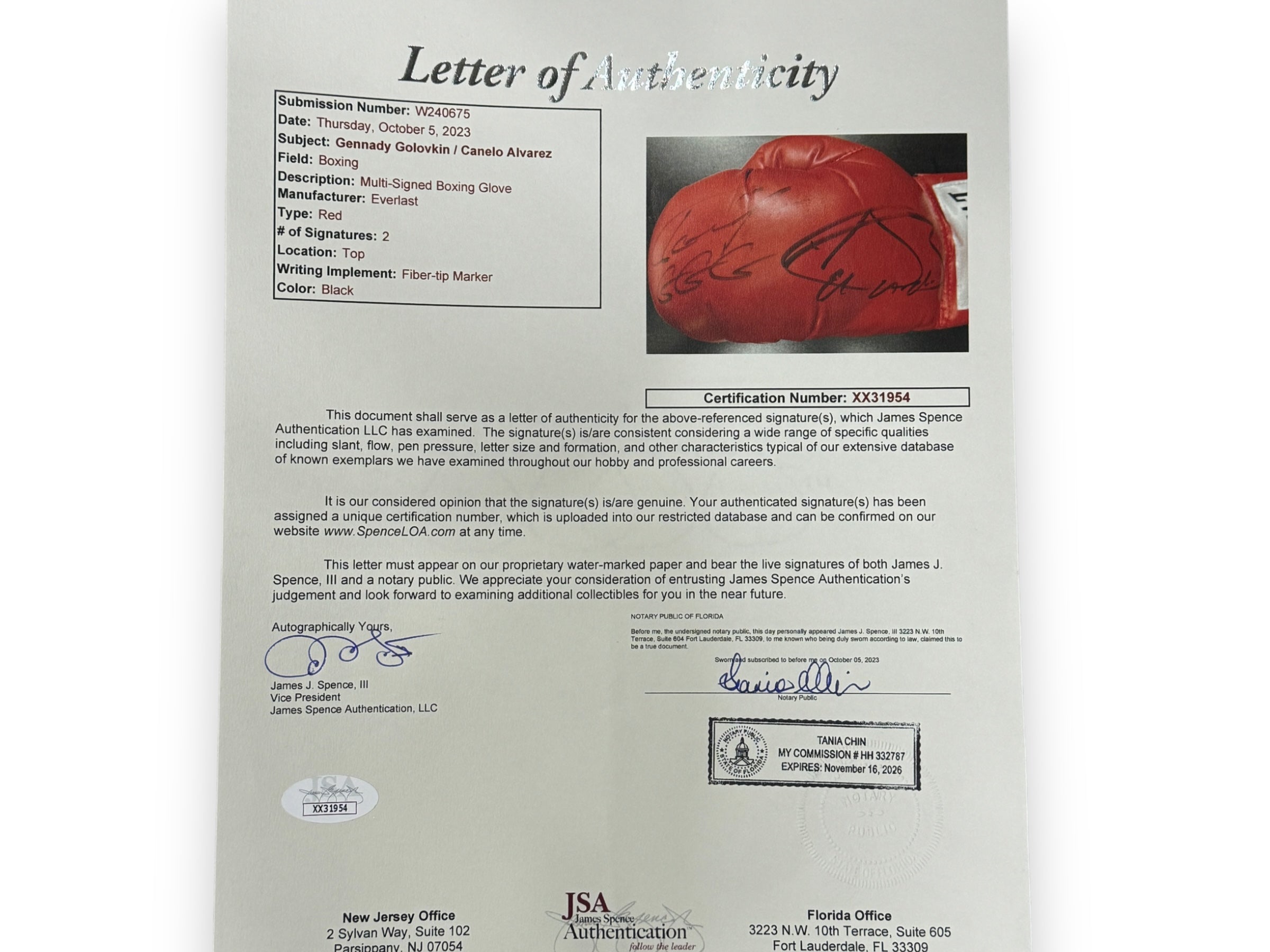 Guante de box autografiado por los boxeadores Saúl Canelo y Gennady Golovkin