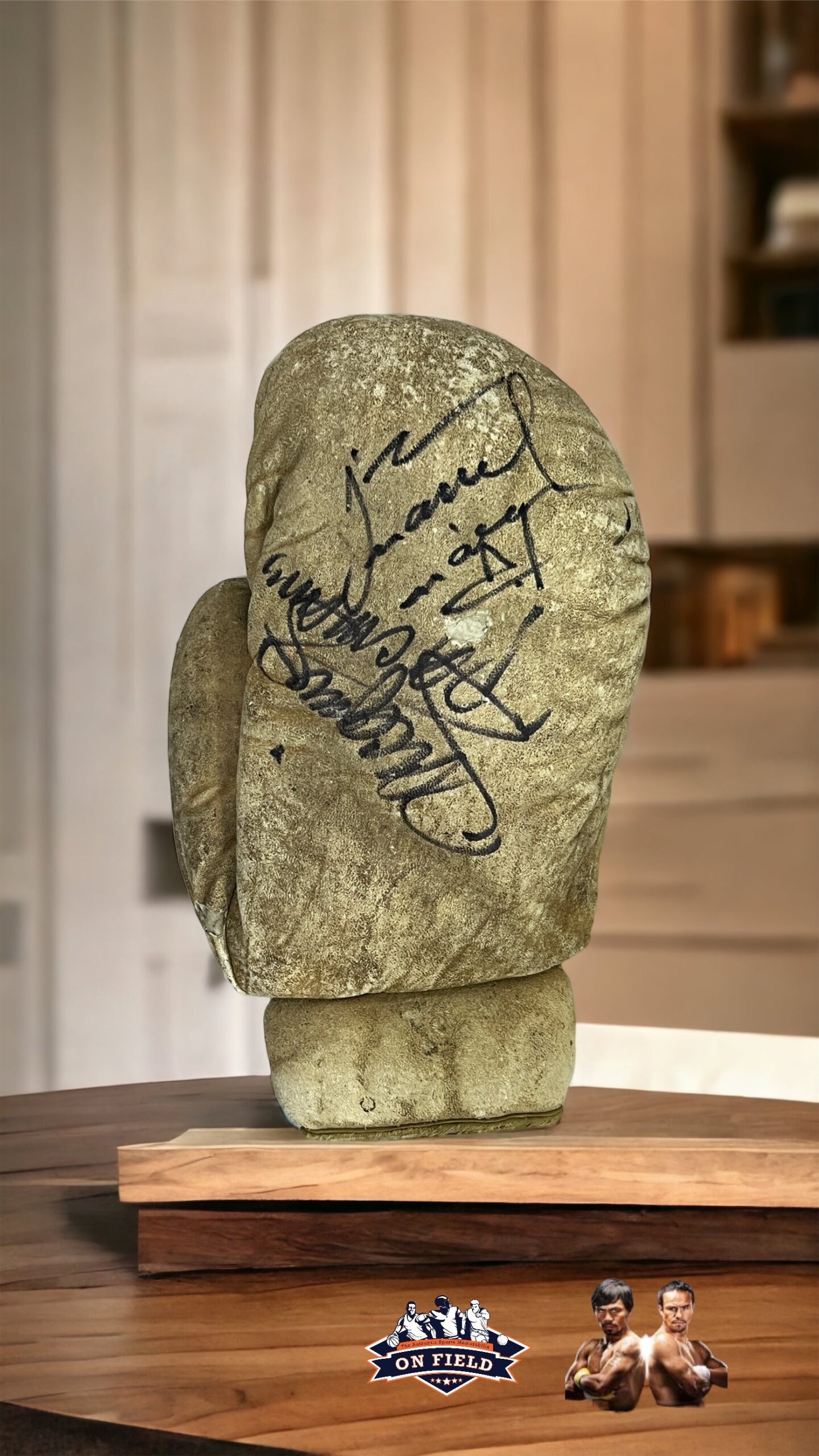 Guante de Box autografiados por Juan Manuel Márquez y Manny Pacquiao.