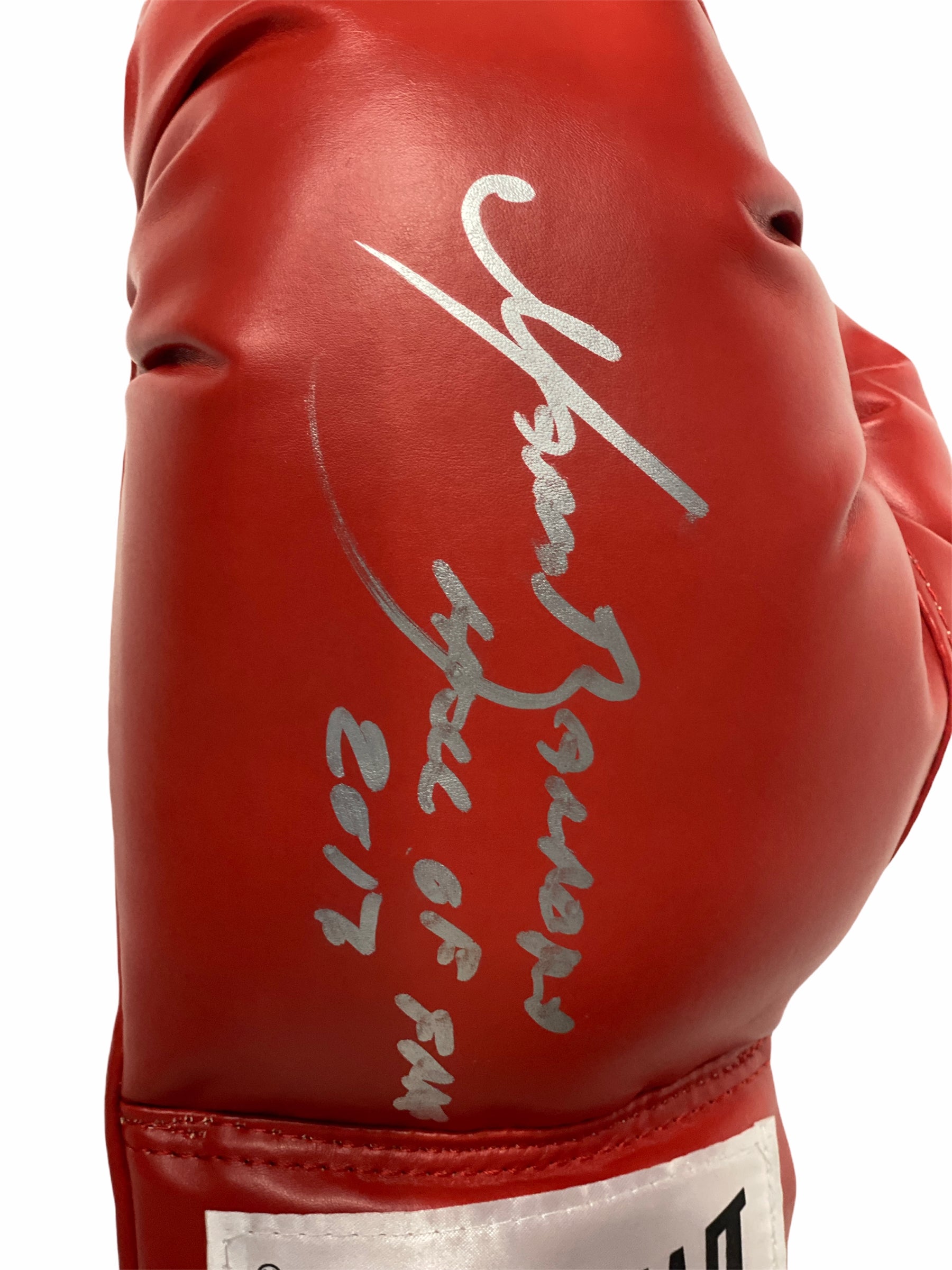 Guante de Box autografiado por Marco Antonio Barrera en color rojo y certificado de autenticidad.