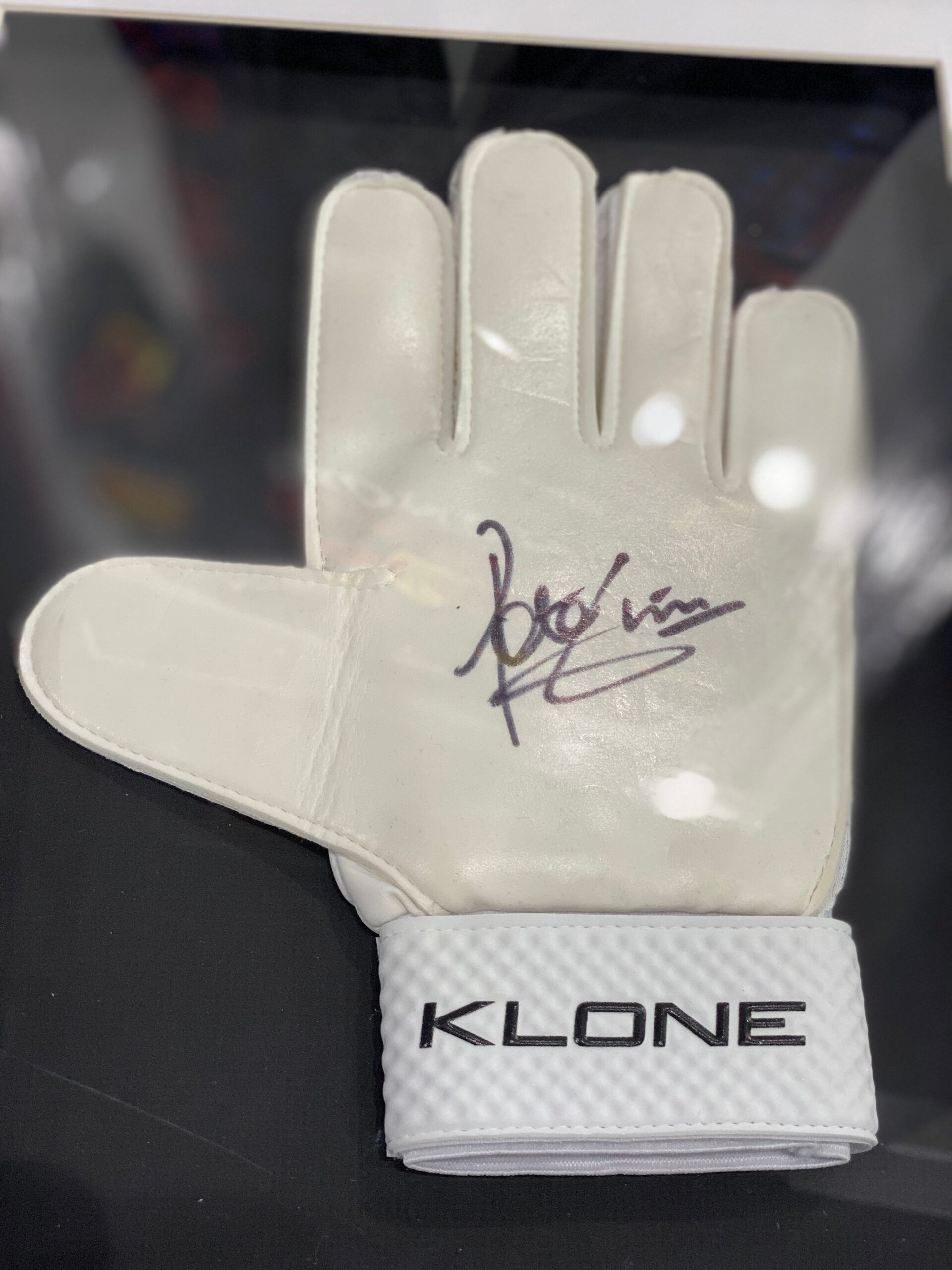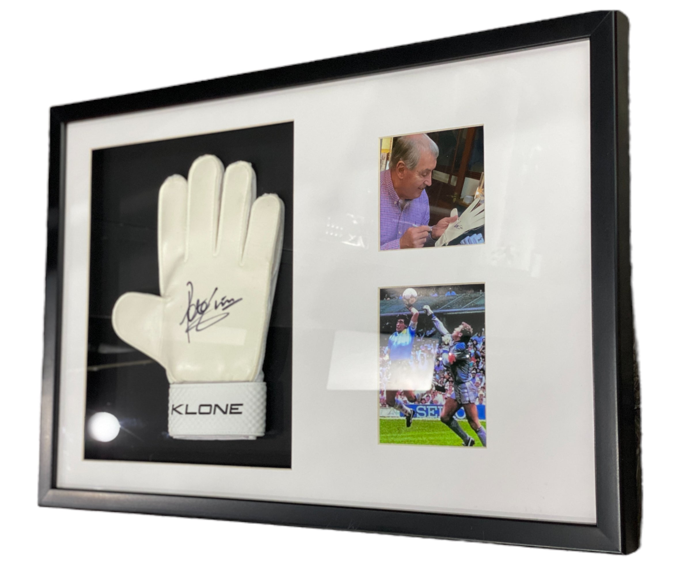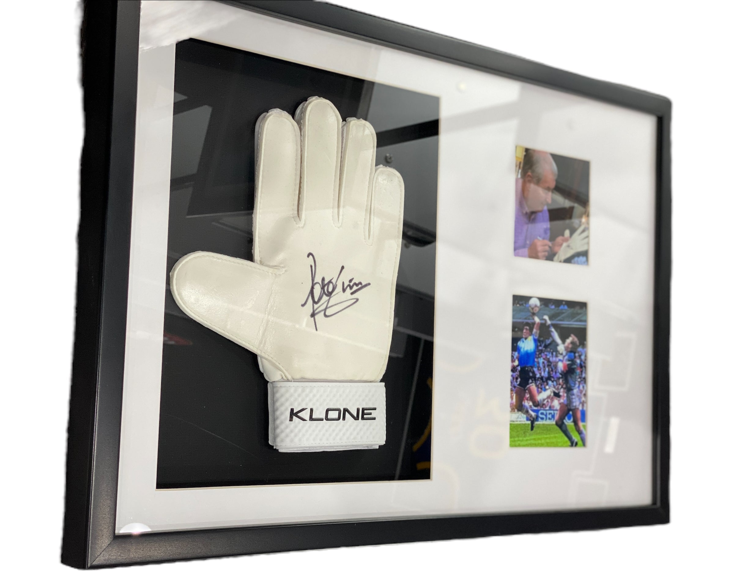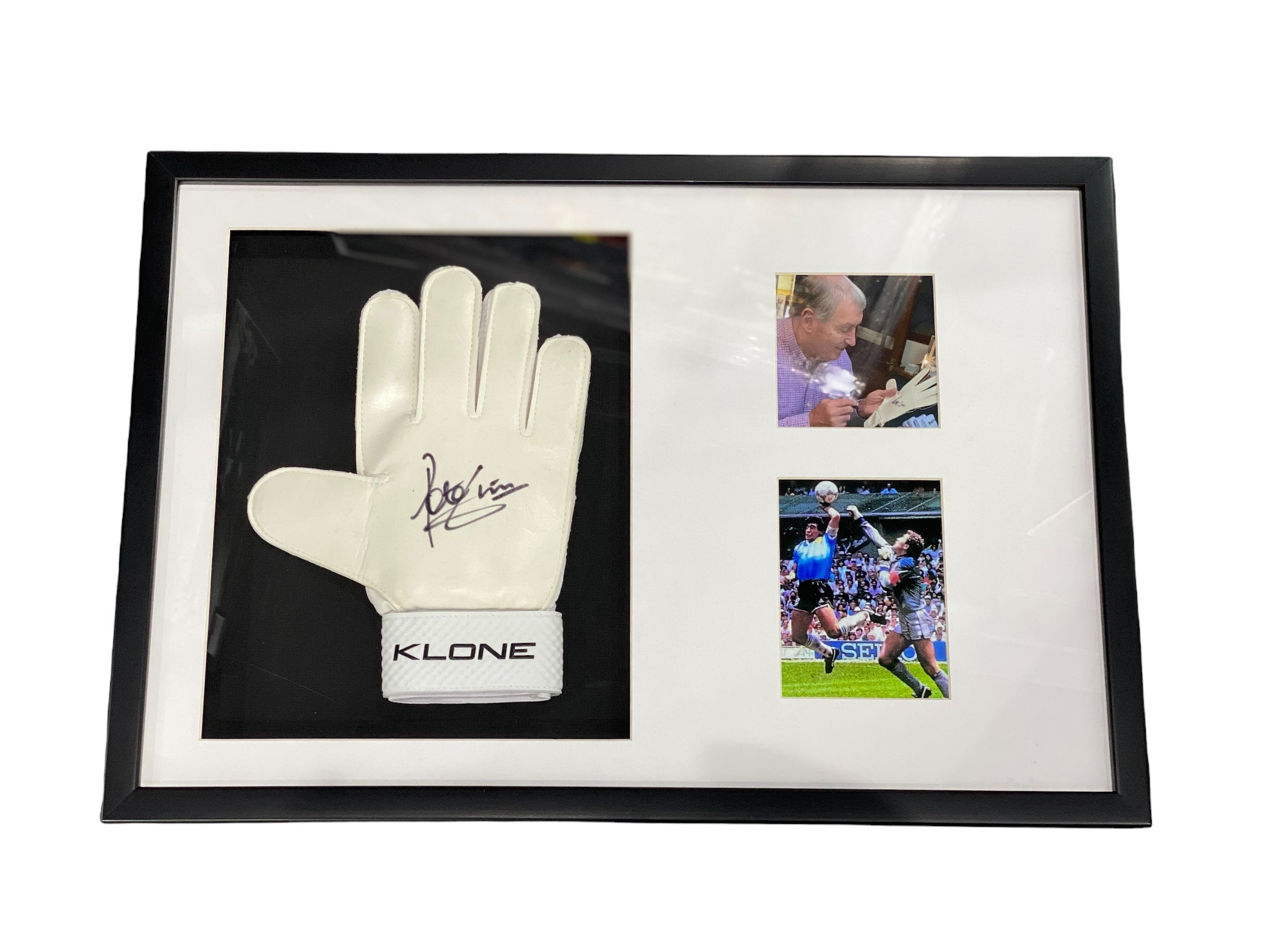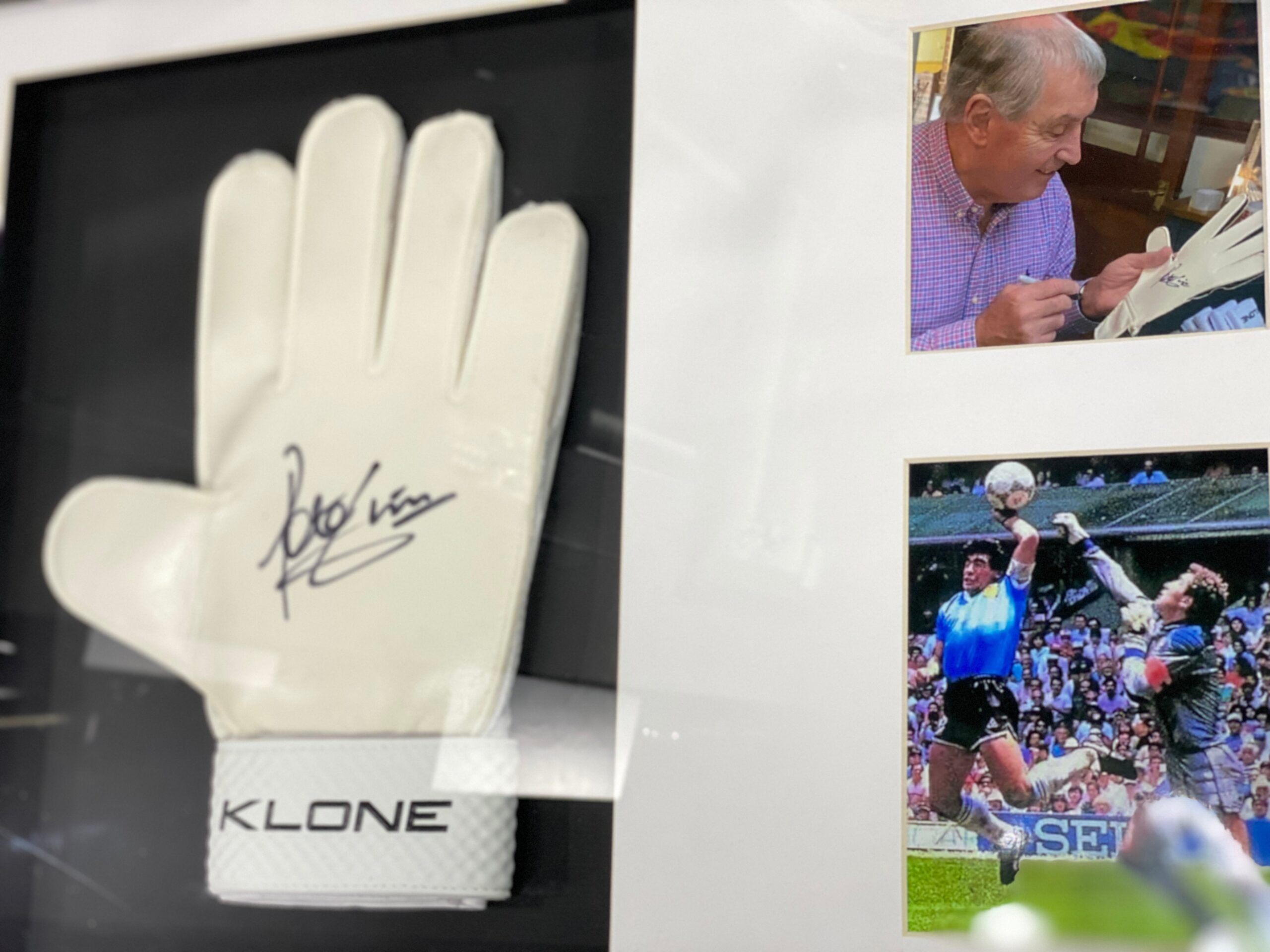 Guantes enmarcados por el jugador de inglaterra Peter Shilton